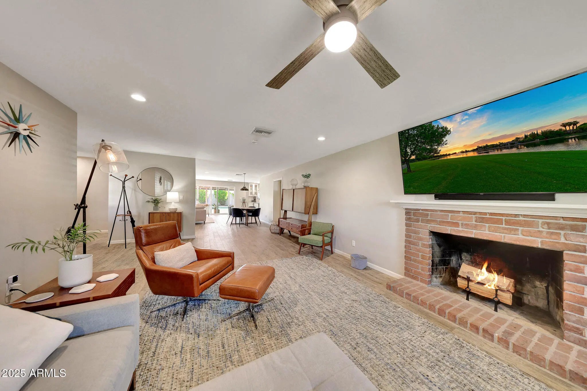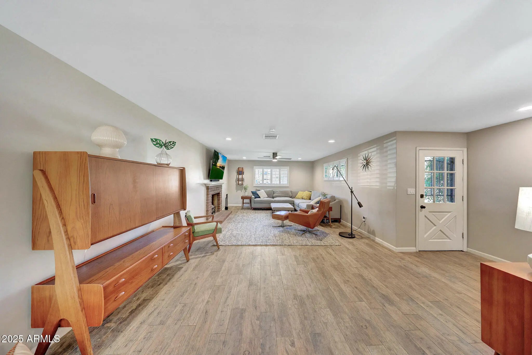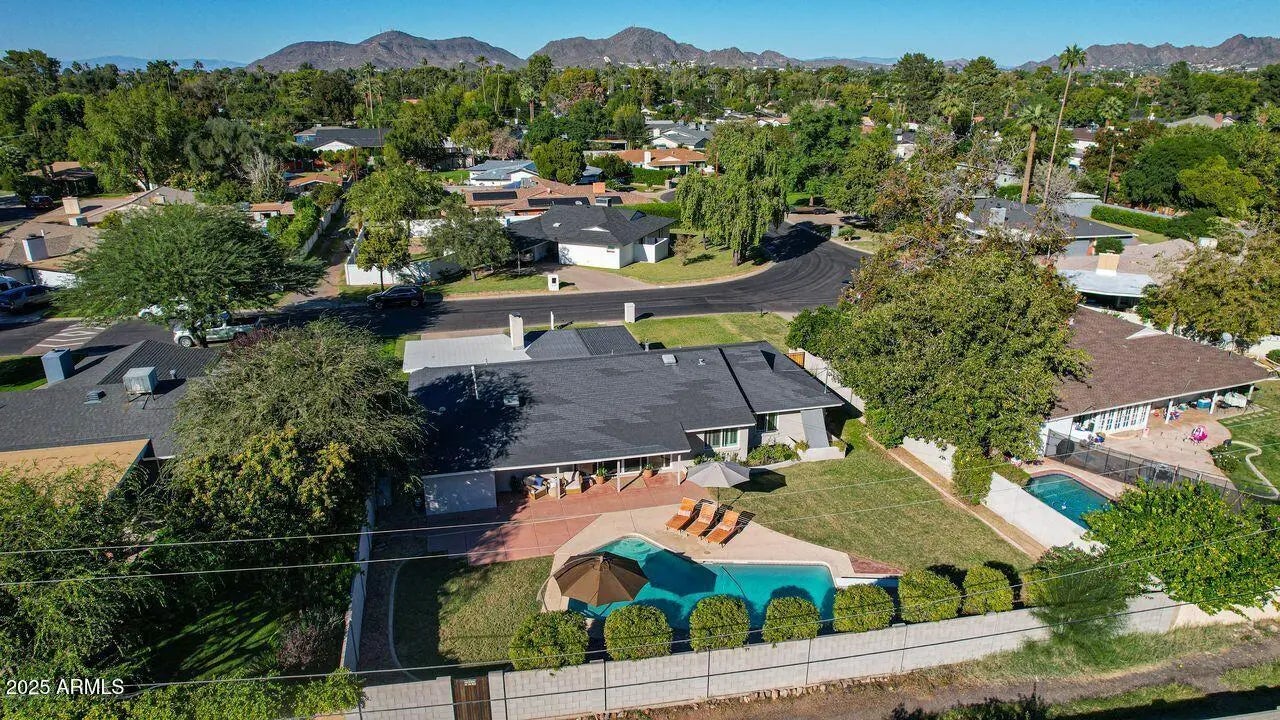 Beautifully remodeled 4 bed, 3 bath home in the heart of Central Phoenix. Thoughtfully designed with 2 primary suites, including one with a private entrance—perfect for guests or multi-generational living. The open great room with wood-burning fireplace connects to a spacious dining area and sitting room with custom built-in cabinetry. Plantation shutters, wood-look tile floors, and designer finishes throughout. The kitchen features quartz countertops, stainless appliances, tile backsplash, and breakfast island. A new 16-ft sliding door opens to a lush backyard with pool, grass, and covered patio. Large irrigated lot. House has great flow—comfortable and move-in ready.