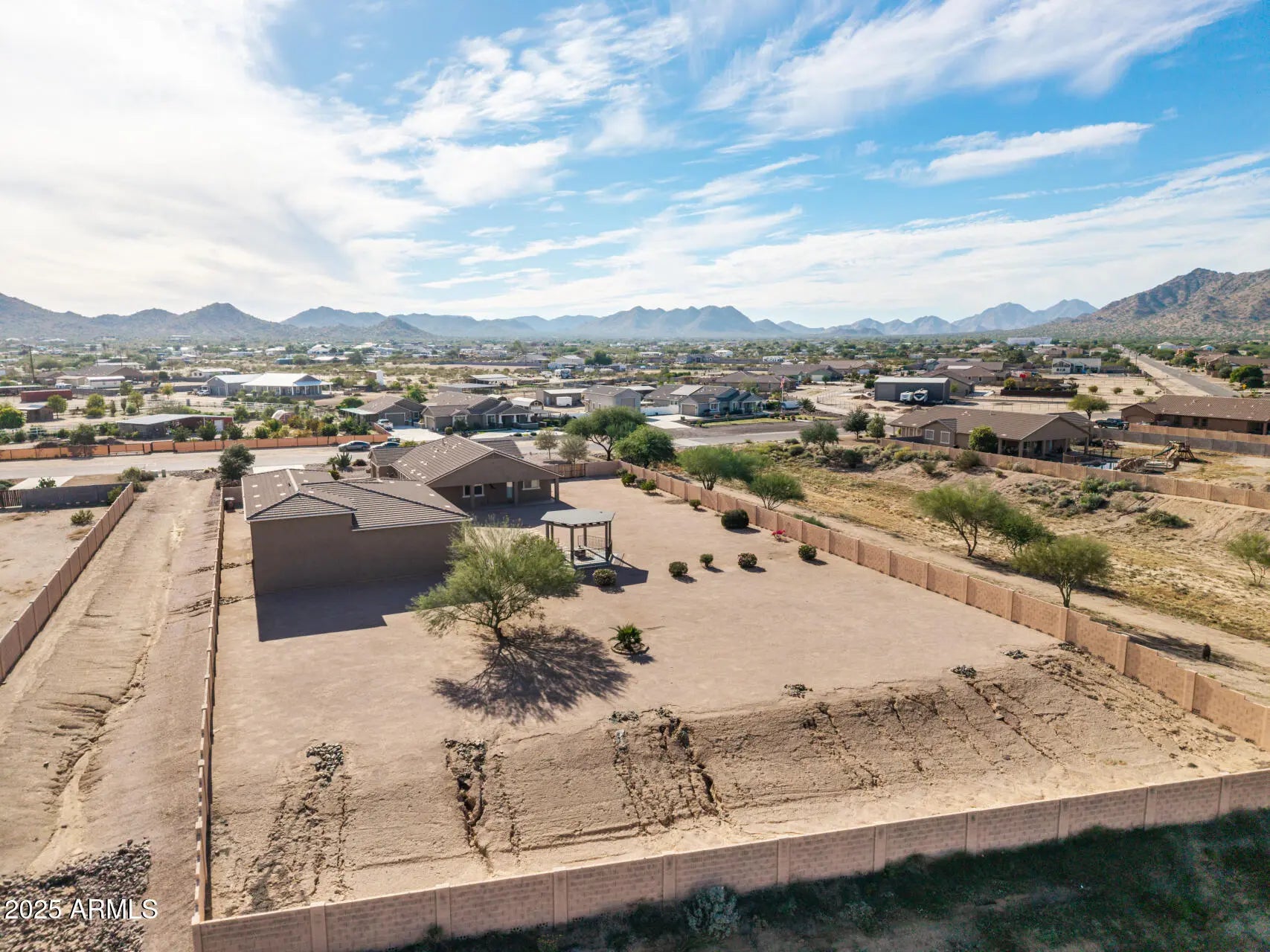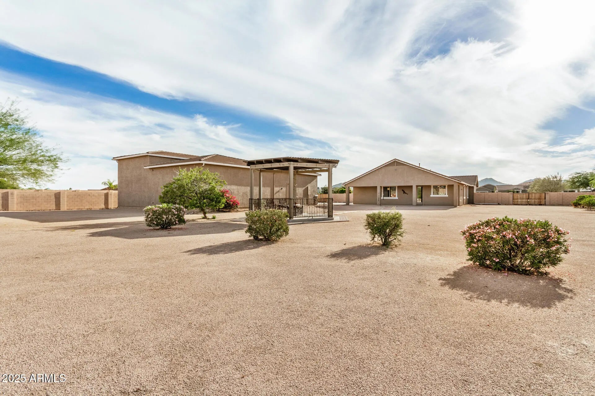 ROOM FOR EVERYTHING — RVs, Cars, Hobbies & More! Discover the perfect blend of comfort and space in this beautifully maintained home, lightly lived in by original part-time owners. Set on a 1.26-acre lot this 3-bed, 2-bath and den also features 30 ft 2-Car Garage. If you've been dreaming of wide-open space and a home that fits your lifestyle, this one delivers. Enjoy serene privacy and breathtaking Superstition and San Tan Mountain views from your backyard gazebo. The detached CUSTOM 45x60 garage includes a FULL RV bay and 4-CAR tandem area nearly 58 feet deep—perfect for motorhomes, classic cars, boats, or your next big project. This setup offers unmatched flexibility for work, play, and storage. The neighborhood's community center is a hub for residents, featuring a sparkling pool, fitness center, and gathering areas. Located near San Tan Mountain Regional Park, you'll enjoy miles of hiking trails and open desert, all while being close to shopping, dining, and local amenities.