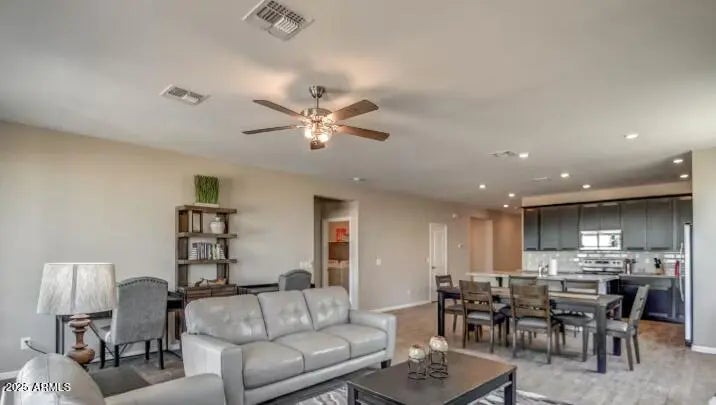 4BR 3 Bath Fully Furnished in Casa Vista. Step inside to discover a welcoming open-concept great room where living, dining and kitchen flow seamlessly together perfect for everyday living or entertaining. The kitchen boasts generous counter and cabinet space, a large breakfast bar, walk-in pantry, and stylish finishes throughout. A smart split-bedroom floor plan puts the owner's suite on one side for added privacy, complete with a double vanity, walk-in closet and luxurious shower in the attached bath. Quick Access to Interstate 10 located between Phoenix and Tucson.