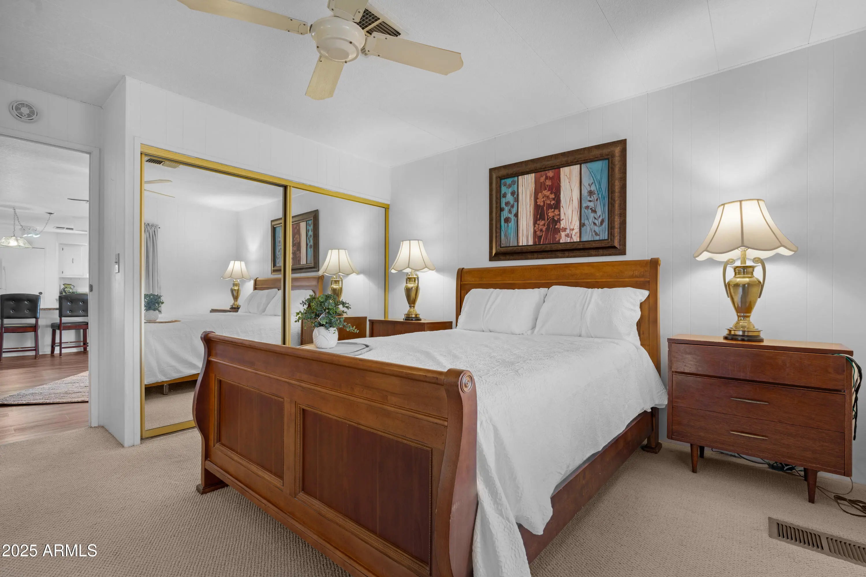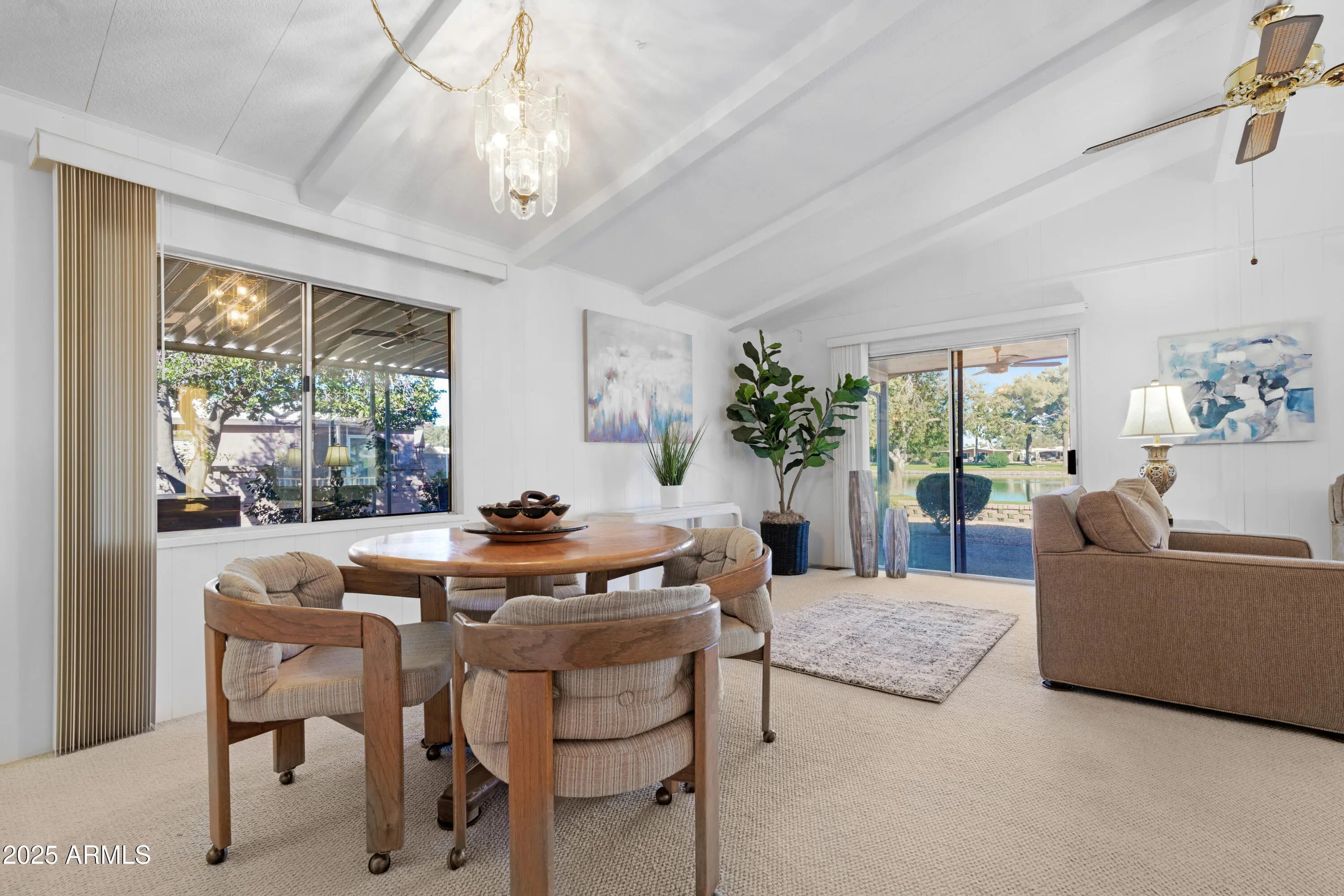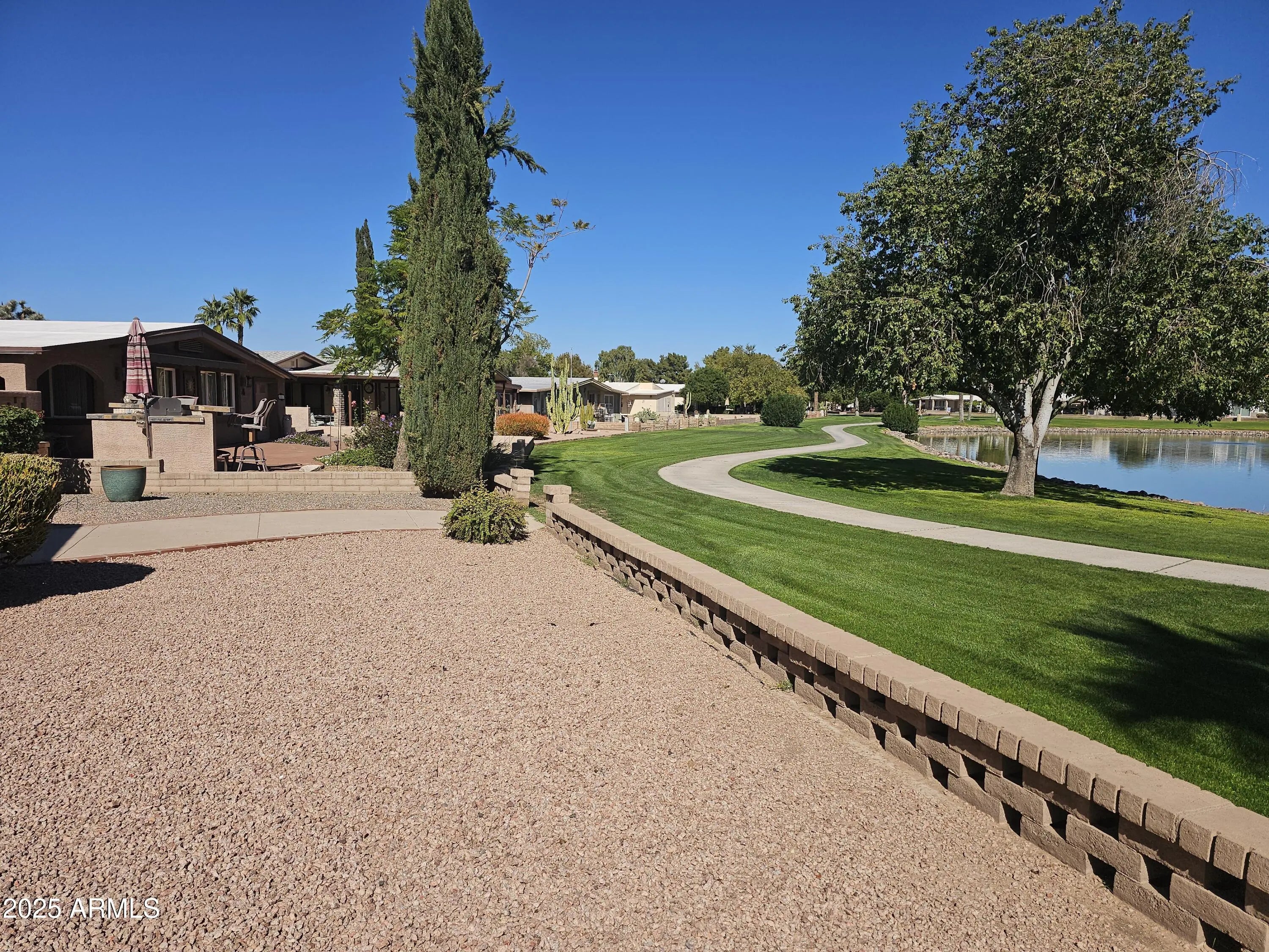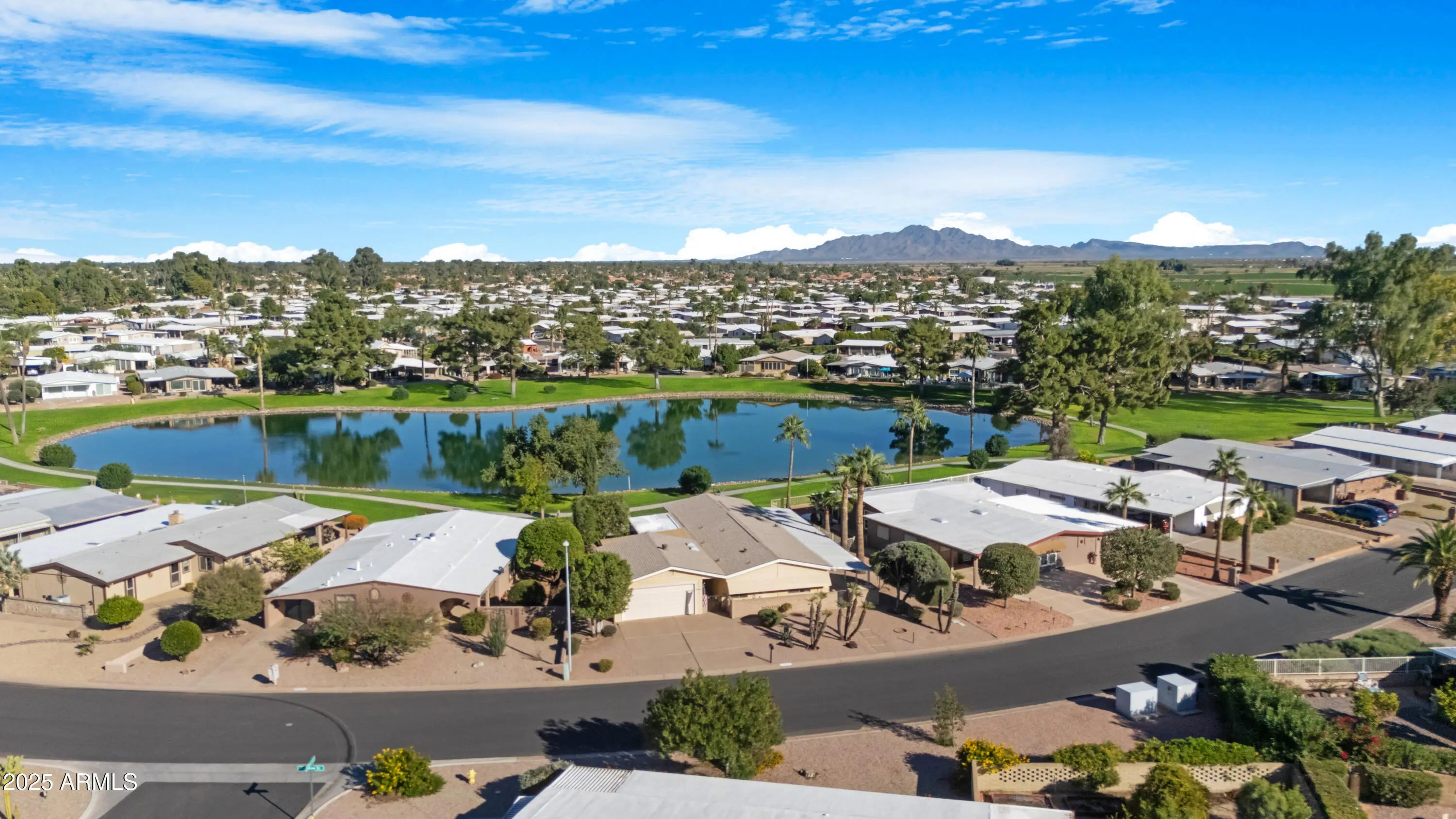 Lakefront living at its finest in the heart of Sun Lakes Country Club. This 2-bedroom, 2-bath manufactured home, built in 1980, sits perfectly centered on a sparkling lake with stunning water views from the living room windows and sliding glass door. Enjoy year-round comfort with a 2018 A/C unit and 2024 water heater. The spacious 2-car garage includes a workshop, plus there's a bonus room cooled by a swamp cooler—ideal for crafts, storage, or hobbies. Additional features include a water softener, RO system, and some furniture included at no value. Residents enjoy resort-style amenities such as golf, bocce ball, pickleball, tennis, and an endless list of clubs and activities. The community also offers five restaurants, three of which are private, along with classes and crafts. This is a rare opportunity for lakefront living in one of Arizona's premier active adult communities. Seeking a quick close **BRING ALL OFFERS**