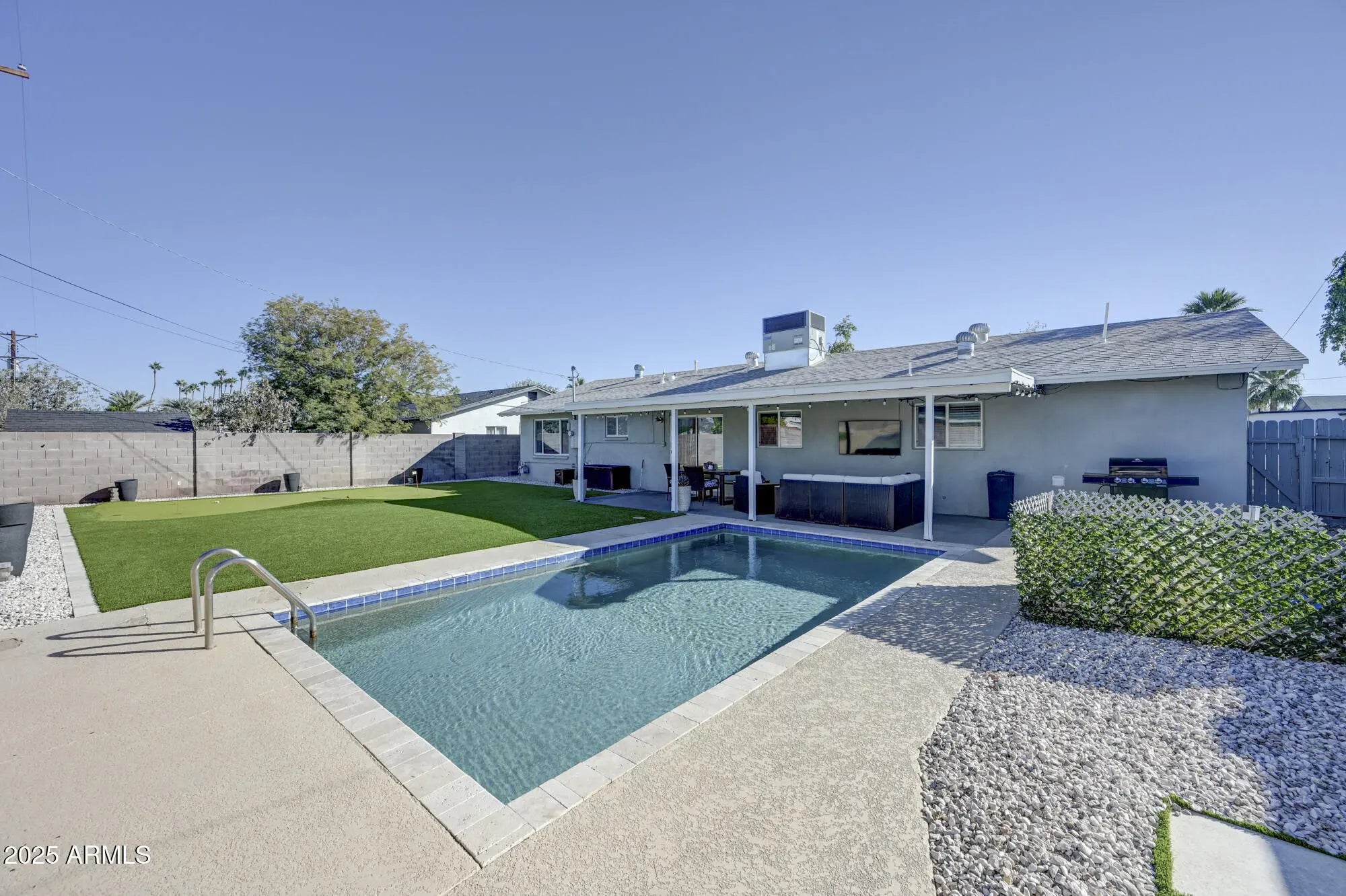 Lovely home on quiet street in sought-after neighborhood! This nicely appointed 3 bed/2 bath home is move in ready and close to Papago Park, Phx Zoo and Botanical Gardens, Old Town Scottsdale, and is 3 miles to ASU!! Bright kitchen has newer cabinets , quartz counters, and adjoining laundry room. Updated bedrooms, and Master suite with walk in closet. Unwind in the tranquil backyard, with covered patio, refreshing pool and putting green. Newer roof, A/C, flooring, and front yard landscape. Charm surrounds this gem - it's a must see!