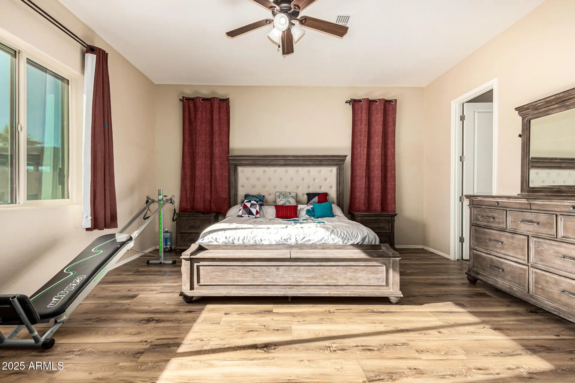 Discover the perfect blend of style, space, and serenity in this stunning Meritage-built ranch home nestled within the exclusive gated community of Sedella. Set on a premium cul-de-sac lot and surrounded by peaceful walking and biking trails, lush parks, and multiple playgrounds, this home offers a lifestyle of comfort and connection — all with easy access to the 303 for effortless commuting. Inside, you'll find 5 spacious bedrooms plus a versatile bonus room, 3 bathrooms, and an expansive 3,308 square feet of beautifully designed living space. The gourmet kitchen is a showstopper, featuring rich 42'' cherry cabinetry, granite countertops, a center island, breakfast bar, dual ovens, and stainless steel appliances—a true dream for the home chef. Throughout the home, 10-foot ceilings and 8-foot doors create a grand, open feel, while new wood flooring in the bedrooms adds warmth and sophistication. Large tinted windows frame picturesque mountain views, filling the space with natural light while keeping it energy-efficient. The sprawling 10,875 sq ft lot offers room for everythingcomplete with an RV gate and parking, an extended-length garage, and pre-wired outdoor security cameras for peace of mind. Additional features include a water softener system and thoughtful upgrades throughout.