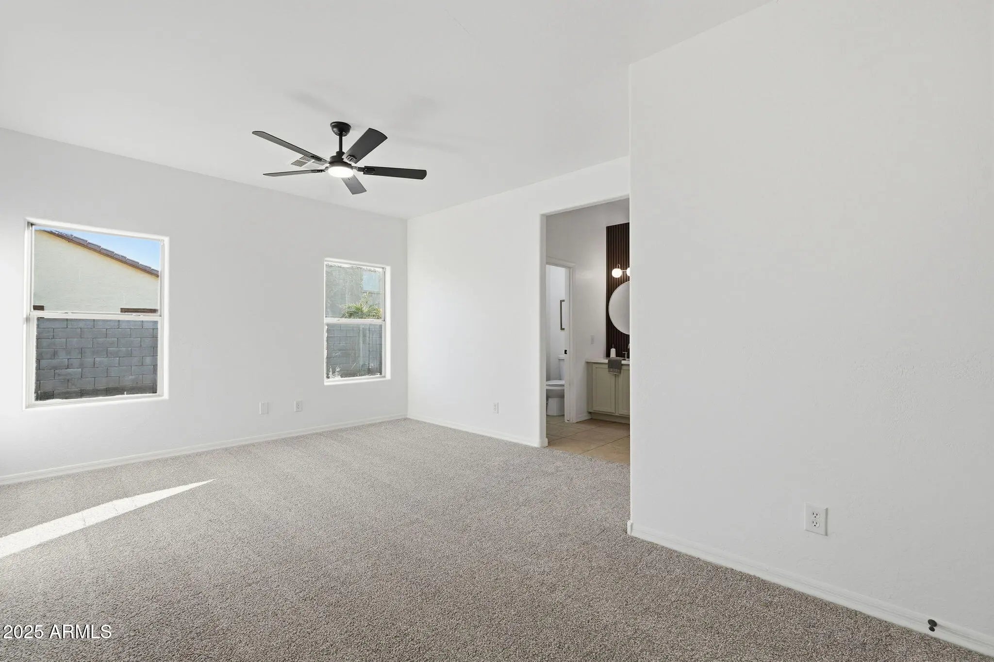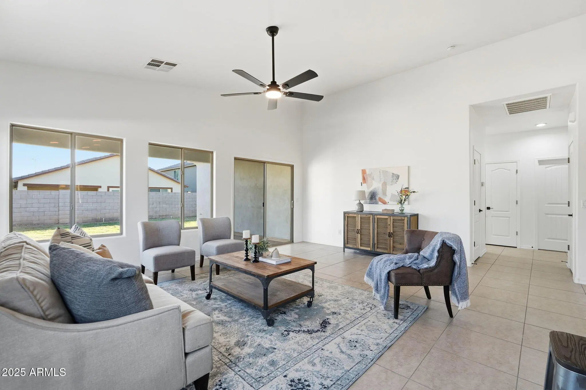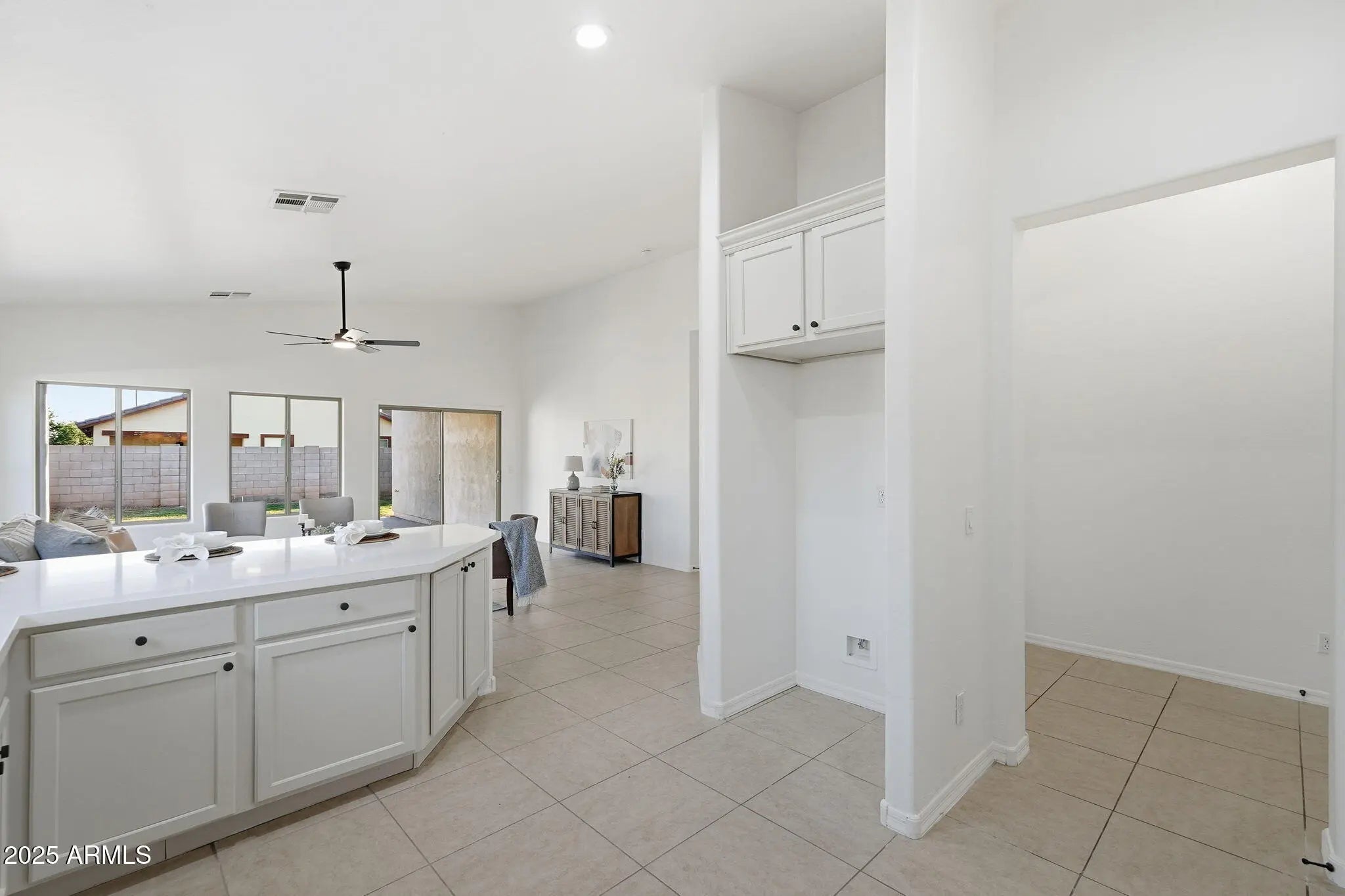 Step into this beautifully refreshed home featuring fresh paint inside & out and neutral tile flooring that flows seamlessly throughout the main living areas. The spacious great room opens effortlessly to the updated kitchen & dining area. The kitchen boasts refinished cabinetry, a stylish tiled backsplash, quartz countertops, & stainless steel appliances, plus a convenient breakfast bar. Each of the three bedrooms features new carpeting. The primary suite includes a walk-in closet & a private en suite bathroom complete w/ a dual sink vanity. Outside, the backyard offers a blank slate, ready for you to design your dream outdoor retreat. Additional highlights include a NEW ROOF!