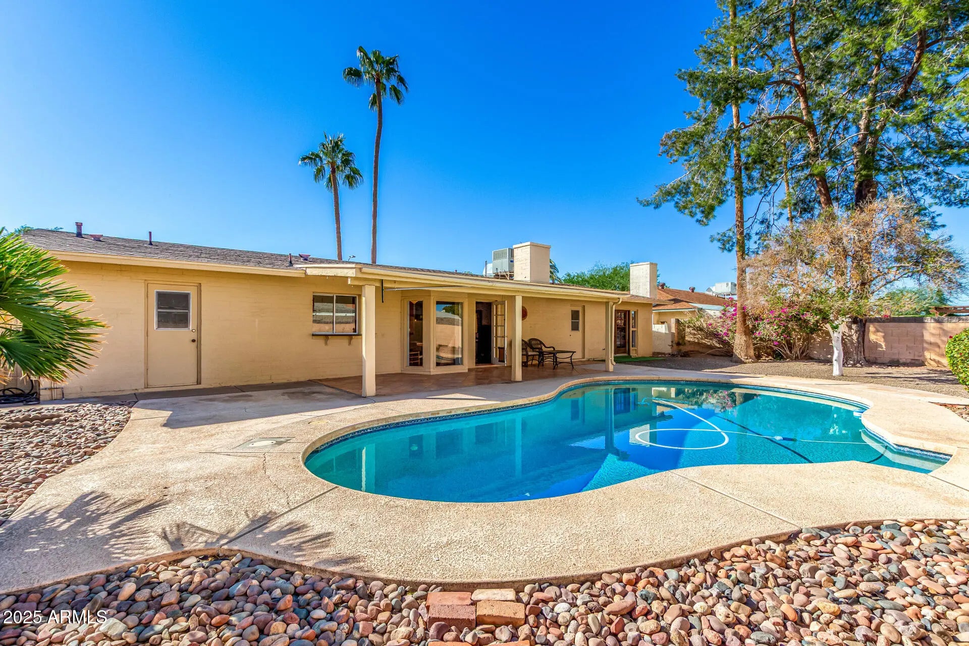 Beautifully maintained and move-in ready, this inviting home in the highly desirable Tempe Royal Palms neighborhood offers endless potential for a buyer eager to add their own modern touches. The spacious floorplan features a large living and dining area--perfect for relaxing or entertaining. Set on a spacious, beautifully landscaped lot with a refreshing sparkling pool, this home's peaceful, private yard feels like your own backyard oasis. Recent updates include a new HVAC (2020) for added comfort and efficiency, & new washer/dryer in 2023. Enjoy close proximity to schools and Kiwanis Park! ASU, Sky Harbor Airport, and an array of shopping, dining, and entertainment are all within easy access. A home with unlimited potential in one of Tempe's most sought-after locations!