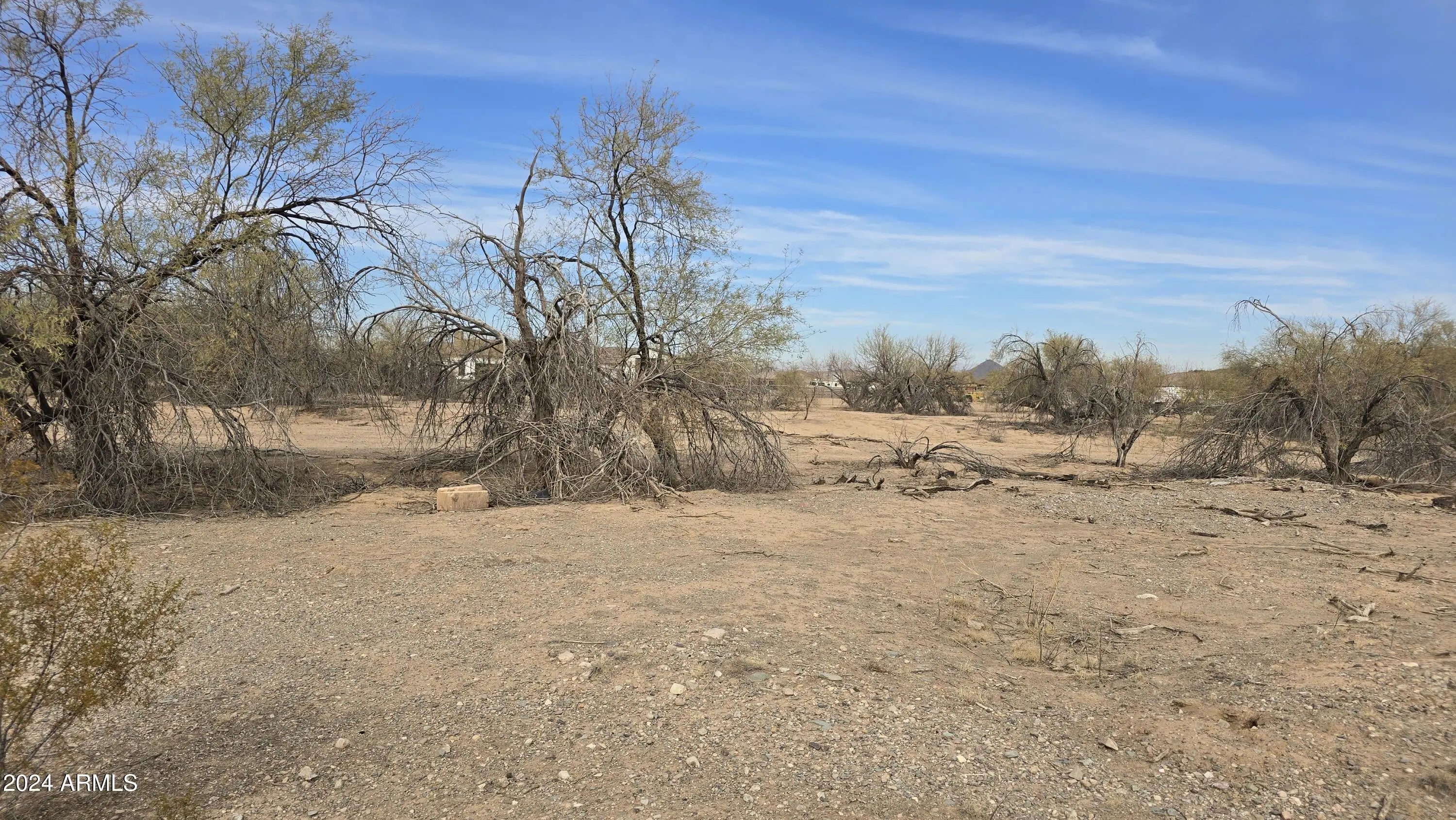 This 1.63 acre parcel is one of the best priced in the area! And the sellers will sell the 1+ acre lot next door also! Come check out this County Island special!. Low property taxes and no HOA. New shared well recently installed. The well, recent survey, and power nearby—all big value adds that save you time and money. There is floodplain but check with Maricopa County to see that it is buildable. Do your homework to see if it's right for you. A new Fry's Marketplace and other new shops, eateries and gas stations are less than 5 miles away. Yet, very little traffic in this area- Have your rural lifestyle with all the best conveniences! Come see it today!