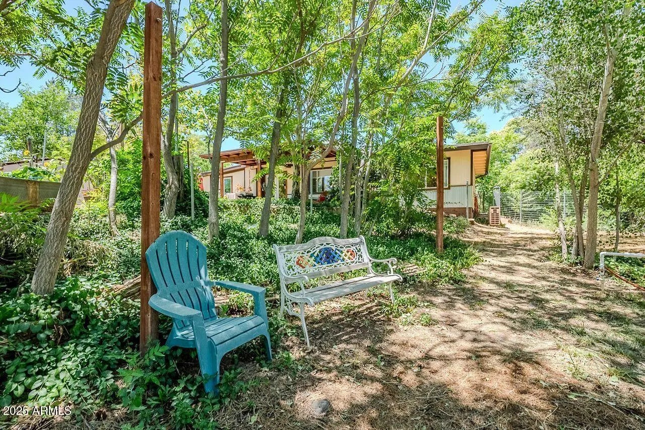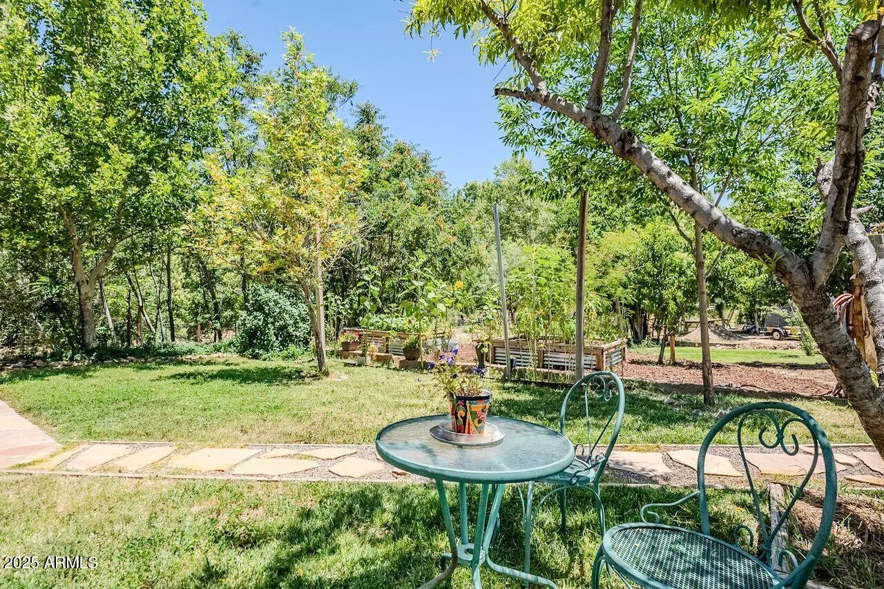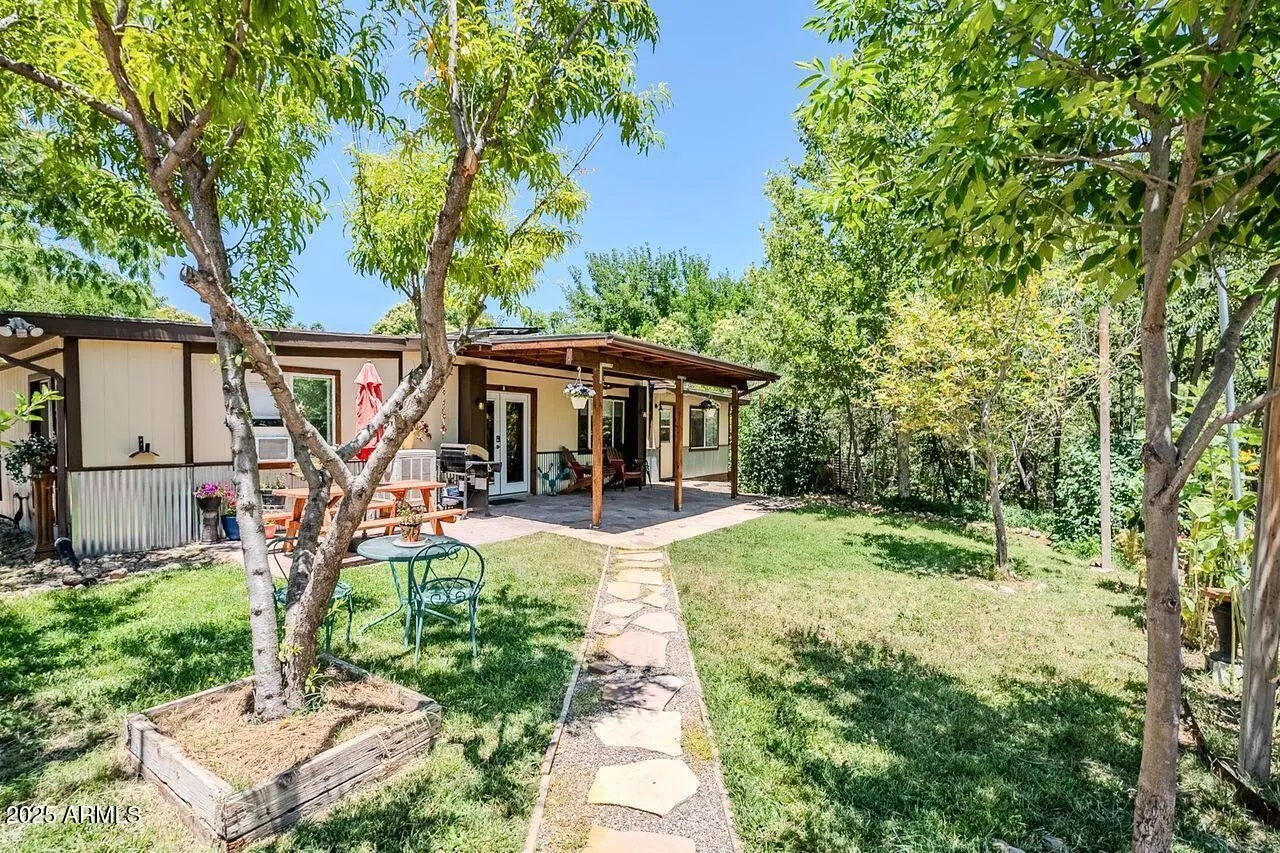Great recently renovated 2 bedroom home with 1 bedroom apartment attached. Single level home and solar electric. 2 bedroom side has a spacious and open floorplan and covered patio. 1 bedroom side operates as an Short term rental. Member of the Cottonwood Ditch Assoc. $200 annual fee for water right to adjacent ditch water. Abundant wildlife in the area including river otters, road runners, deer, javelina, and many bird species. Adjacent Cottonwood city park and near by Dead Horse State park. Pears, peaches, blackberries, mulberry, raised beds and grapes. Also enjoy the greenhouse, potting bench, outdoor firepit, and creek side bench. Great detached garage or workshop.