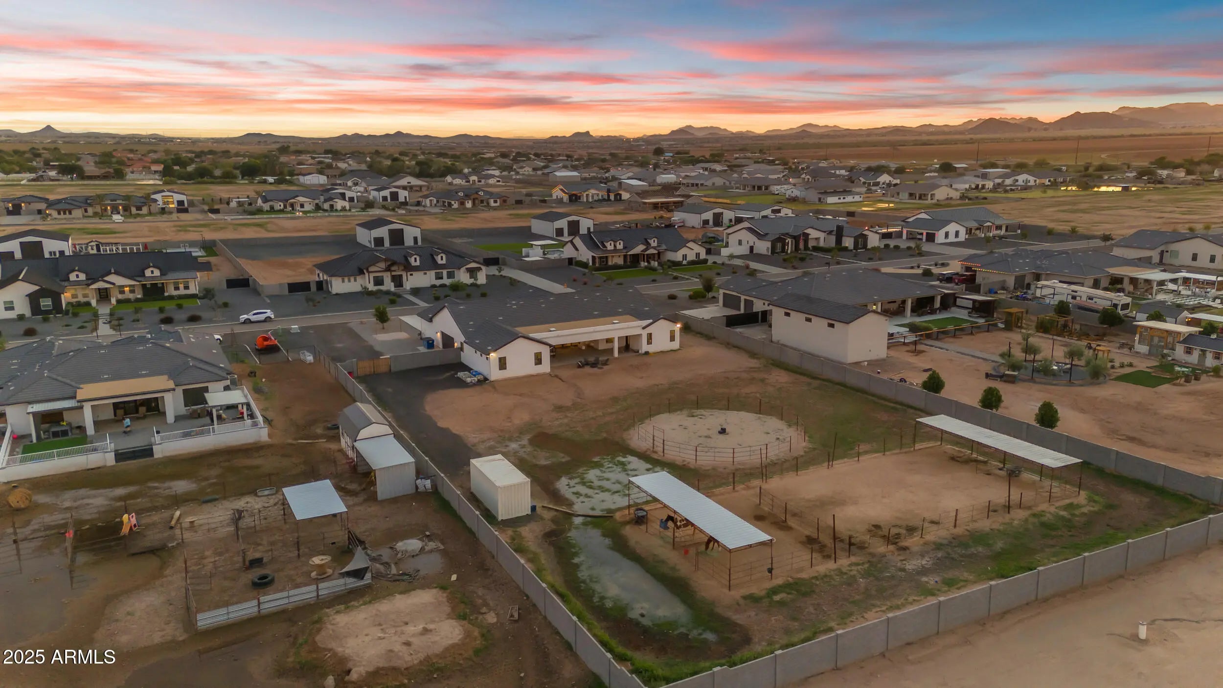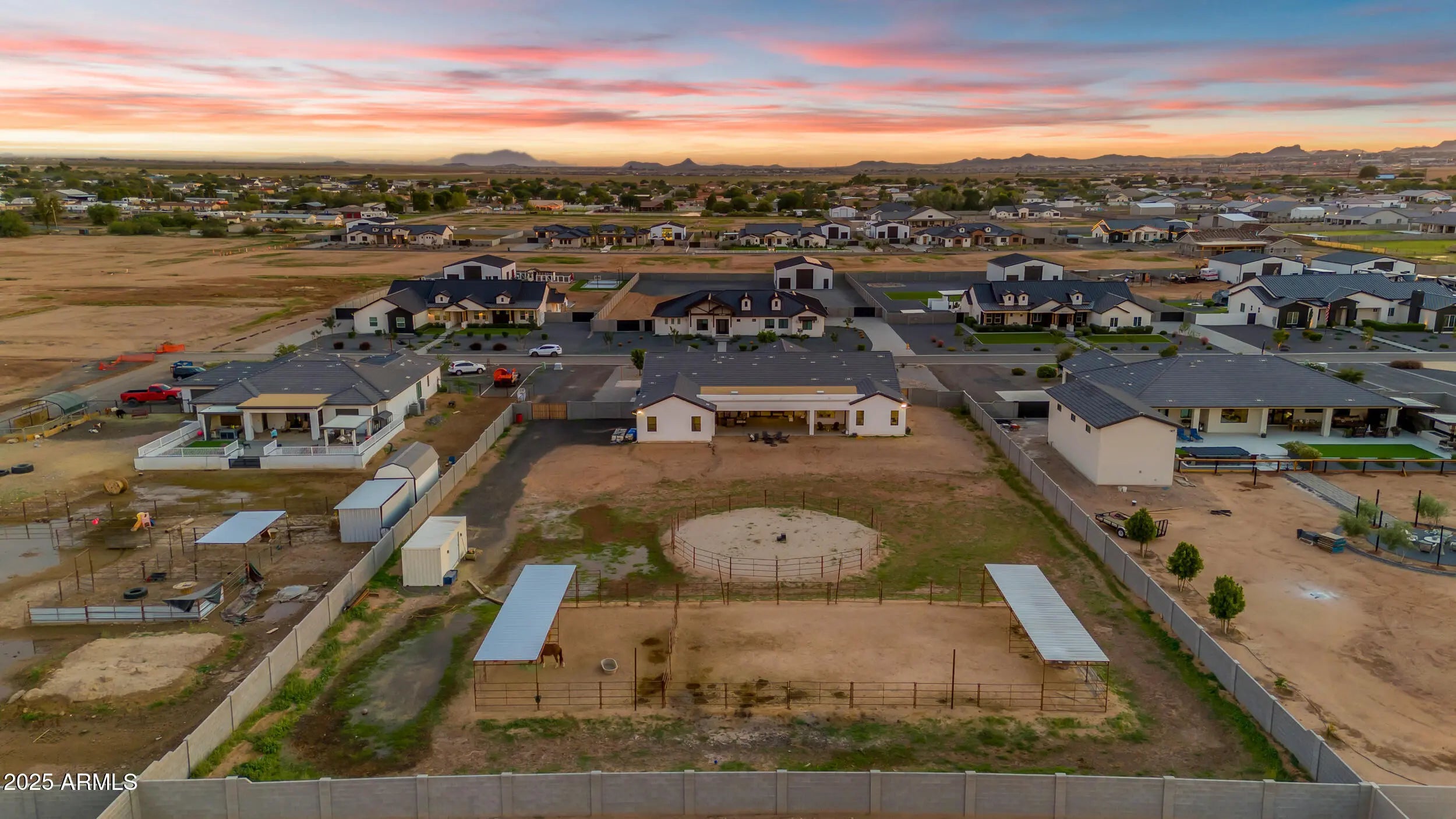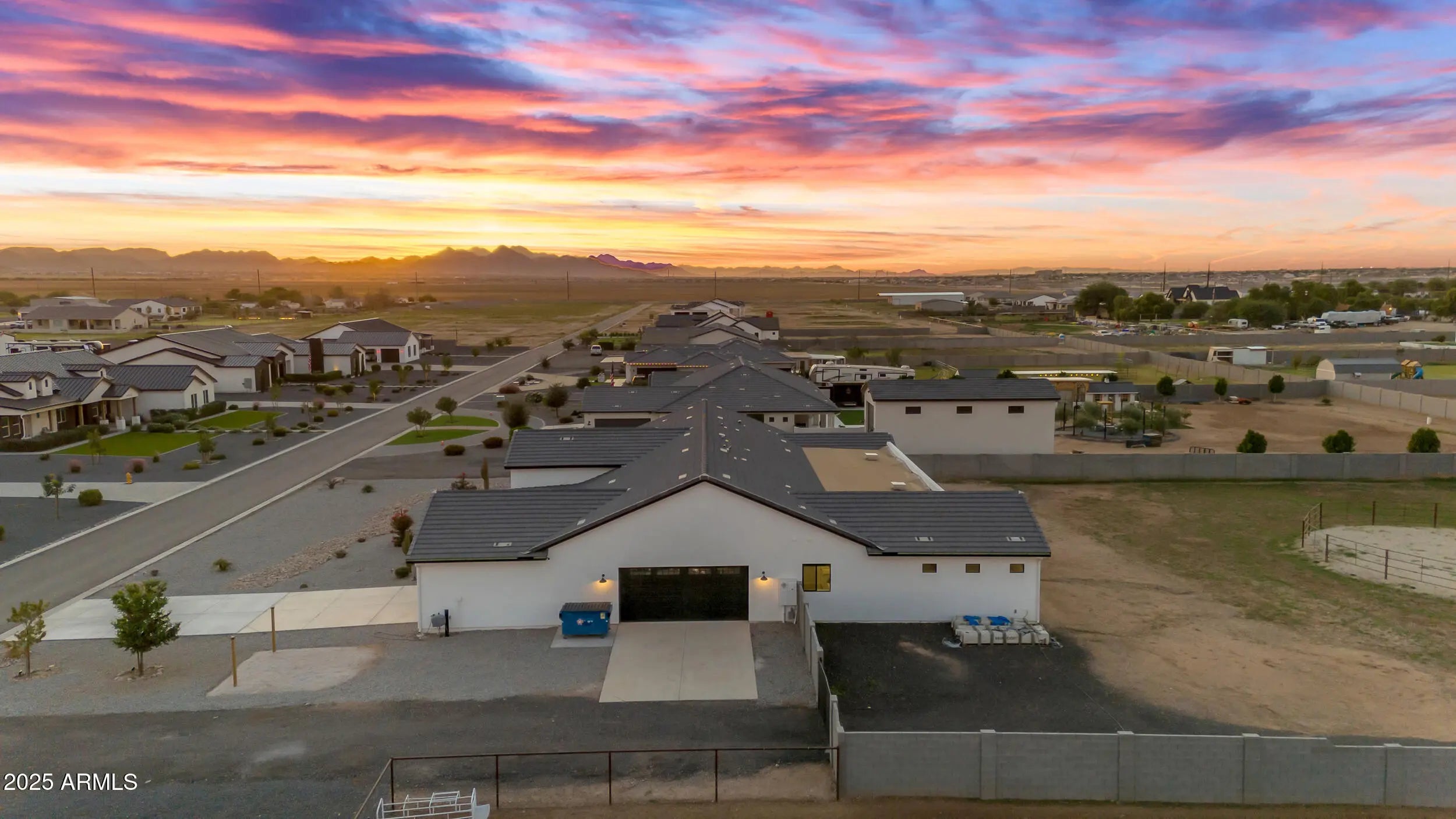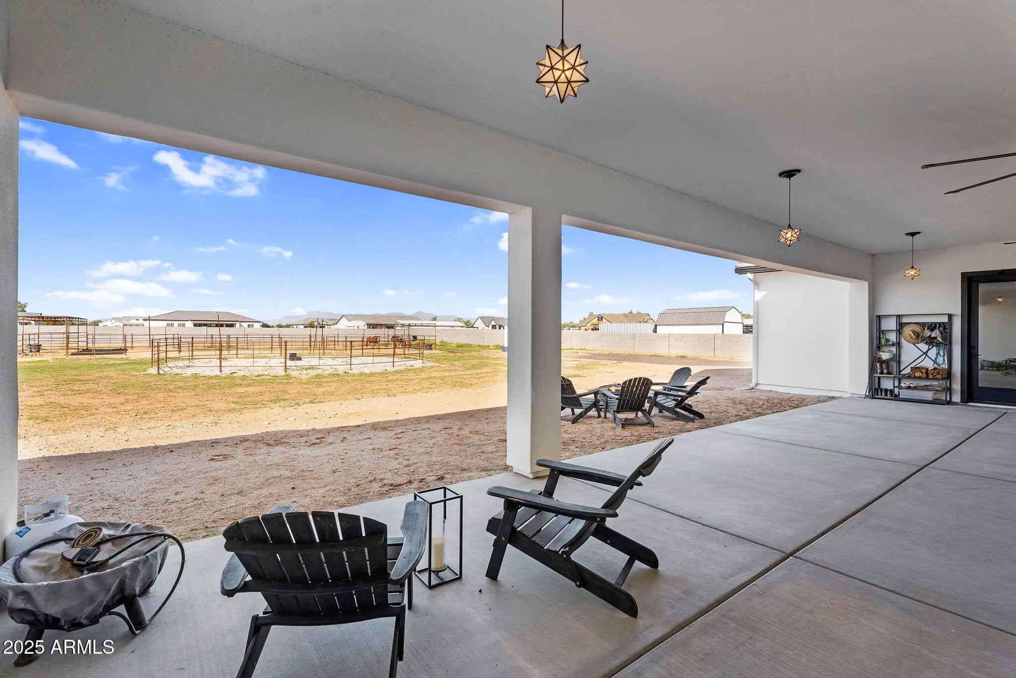 This 5-bedroom, 5-bath home offers 3,721 sq. ft. of beautifully designed living space on a 1.22-acre irrigated lot, all on a paved road. Inside, you'll find a light, bright, and open floorplan featuring tall ceilings, elegant finishes, and generous spaces perfect for entertaining or relaxing with family. The gourmet kitchen and great room flow seamlessly together, creating the heart of the home. Each bedroom offers space and comfort, while the luxurious primary suite provides a private retreat. Step outside to an oversized covered patio ideal for year-round entertaining, complete with breathtaking views of the Superstition Mountains. The property features horse stalls, an RV gate, and plenty of room to bring your animals, toys, or to design your dream backyard. This home also features a 4 car garage. Experience the perfect blend of privacy, space, and peaceful surroundings all while being just minutes from shopping, dining, and everything San Tan Valley and Queen Creek have to offer. This home truly has it all.