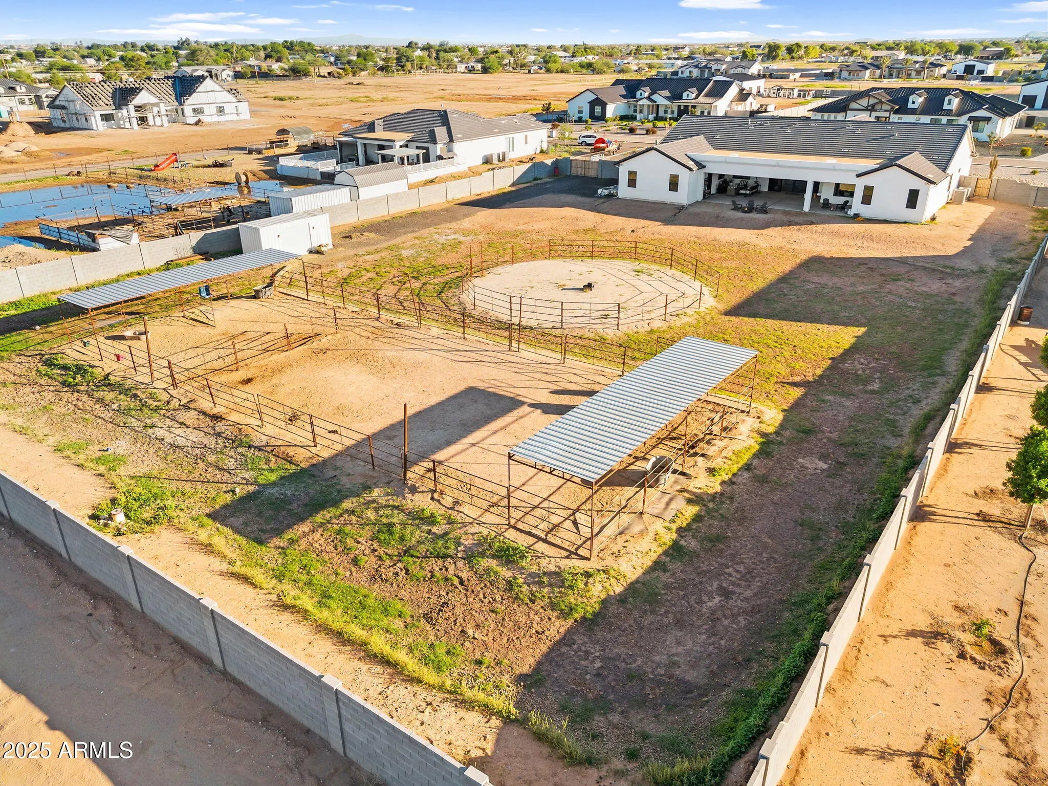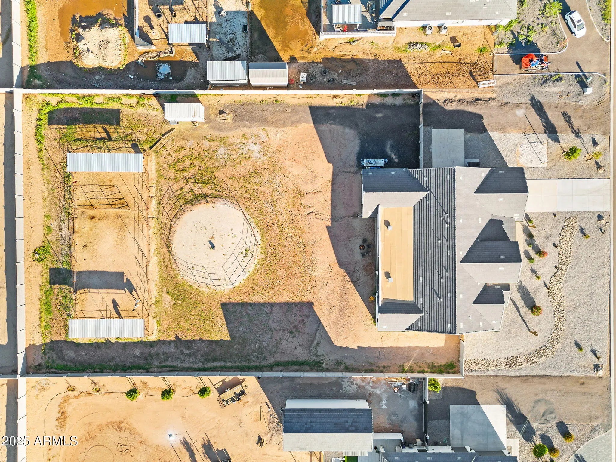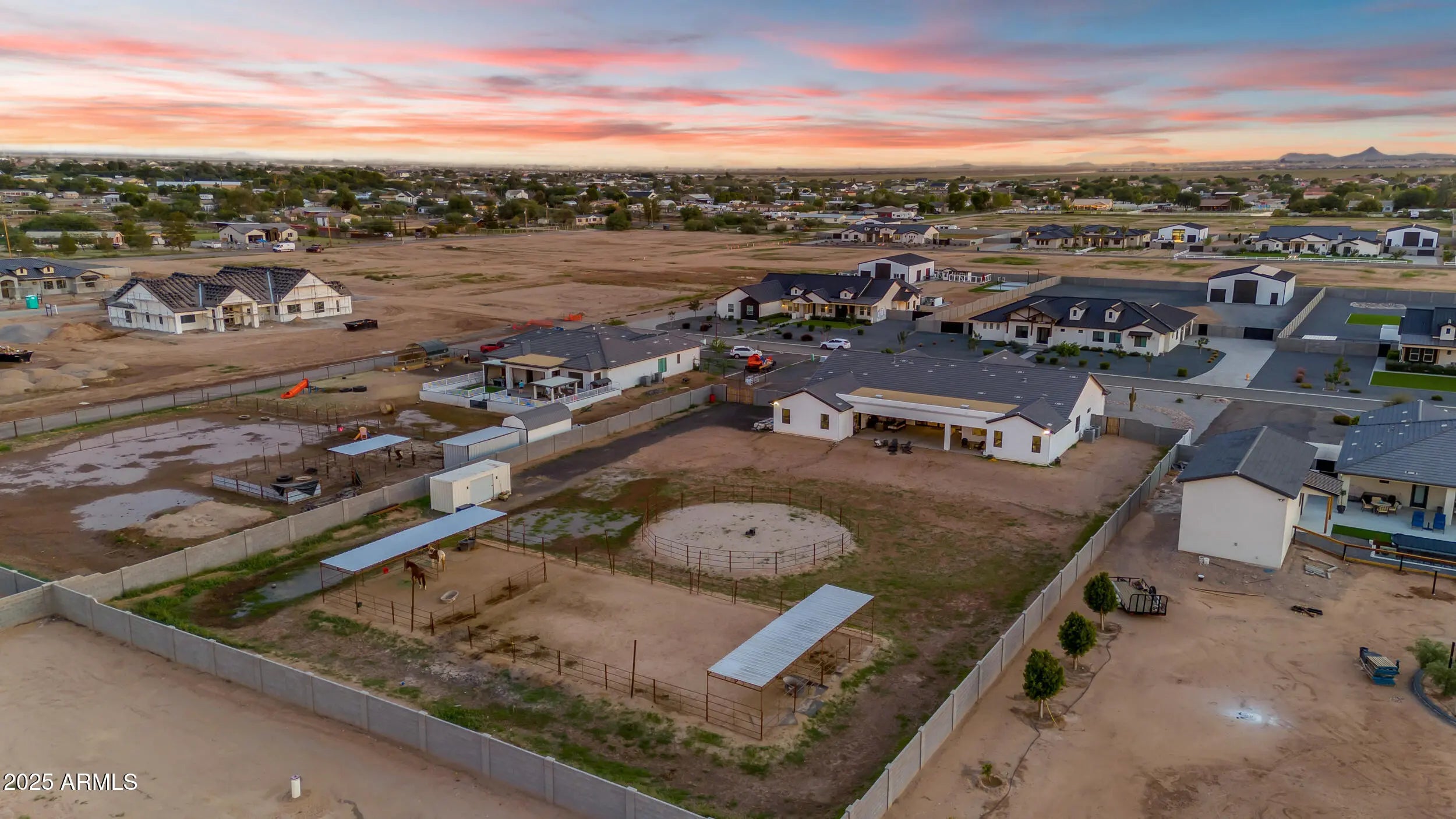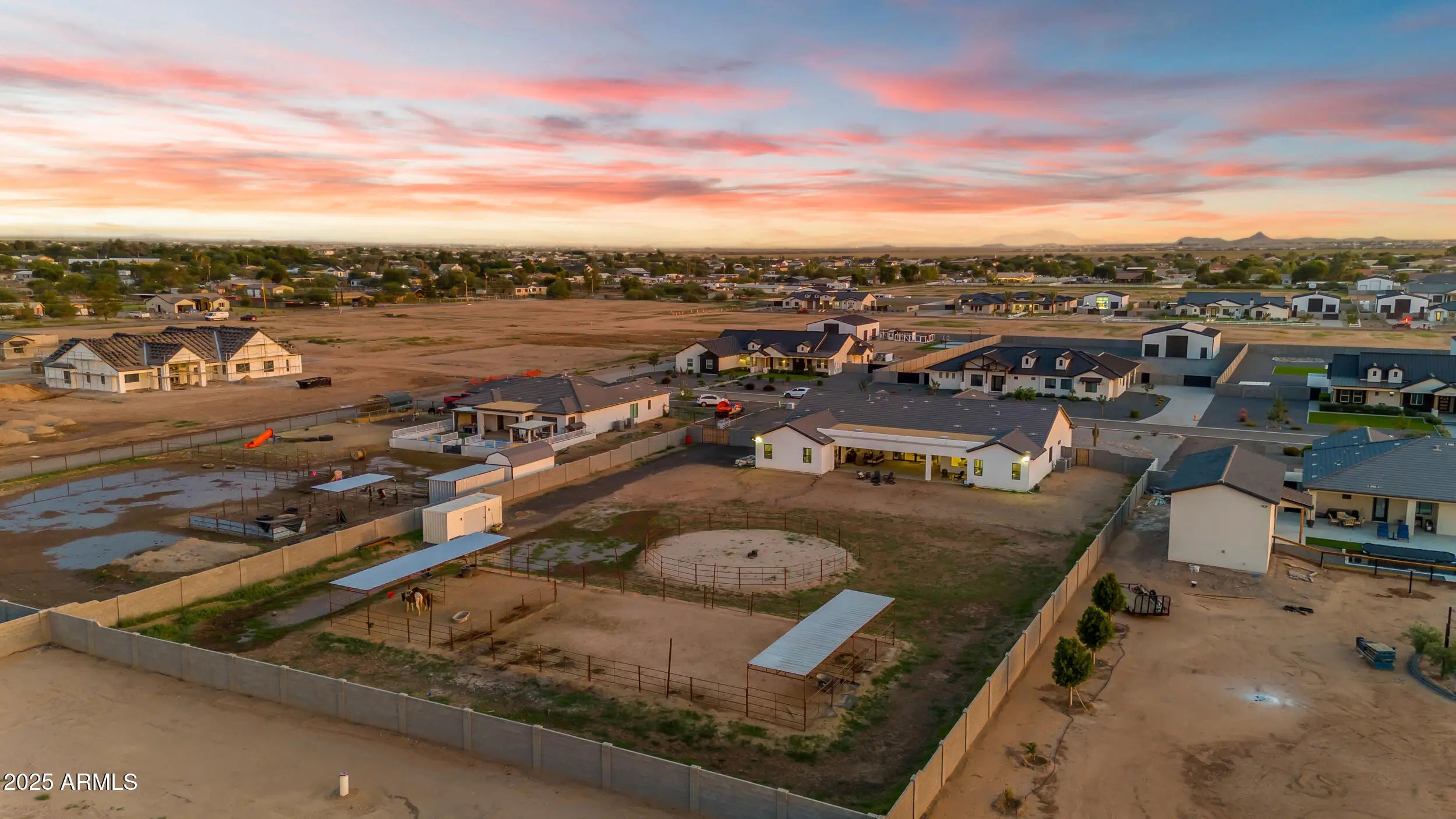 This 5-bedroom, 5-bath home offers 3,721 sq. ft. of beautifully designed living space on a 1.22-acre irrigated lot, all on a paved road. Inside, you'll find a light, bright, and open floorplan featuring tall ceilings, elegant finishes, and generous spaces perfect for entertaining or relaxing with family. The gourmet kitchen and great room flow seamlessly together, creating the heart of the home. Each bedroom offers space and comfort, while the luxurious primary suite provides a private retreat. Step outside to an oversized covered patio ideal for year-round entertaining, complete with breathtaking views of the Superstition Mountains. The property features horse stalls, an RV gate, and plenty of room to bring your animals, toys, or to design your dream backyard. This home also features a 4 car garage. Experience the perfect blend of privacy, space, and peaceful surroundings all while being just minutes from shopping, dining, and everything San Tan Valley and Queen Creek have to offer. This home truly has it all.