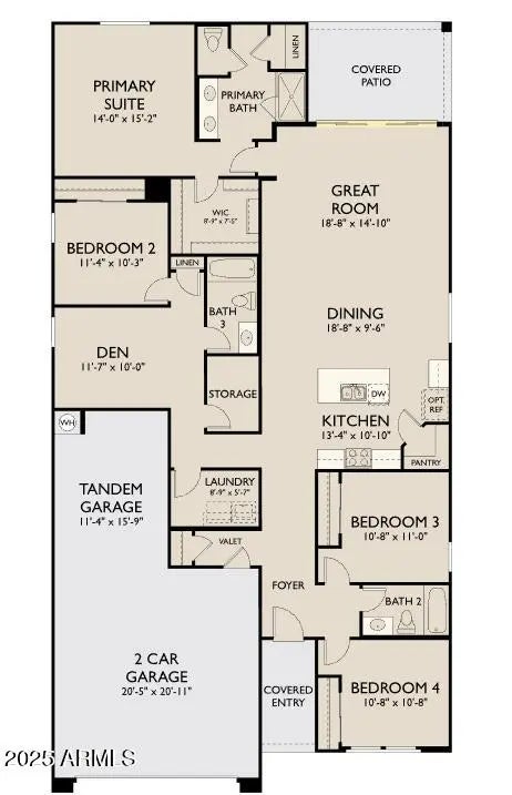 Brand new community in North Peoria! This stunning single story home offers 2,150 sq ft of functional living space. It features 4 bedrooms, 3 bathrooms, den, and a 3-car tandem garage. The open concept kitchen is perfect for entertaining and features a large Island, walk-in pantry and stainless steel appliances with gas range. It also offers our Oxford Collection which includes Espresso 42'' cabinets, quartz kitchen countertops, tile kitchen backsplash, and 8x36 wood look tile in all the common areas. The great room offers a 4-panel center sliding glass door so you can step out onto your covered patio to enjoy indoor/outdoor living. This home also features a paver driveway, 8-foot interior doors, soft water loop, all appliances, and blinds! Great location close to dining, freeways, parks, and entertainment!