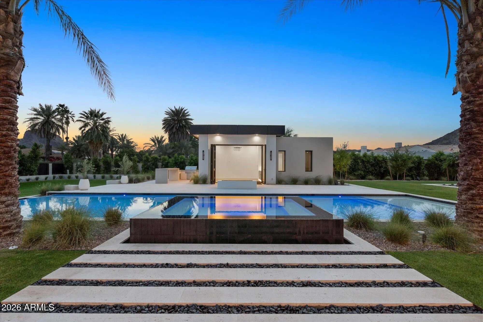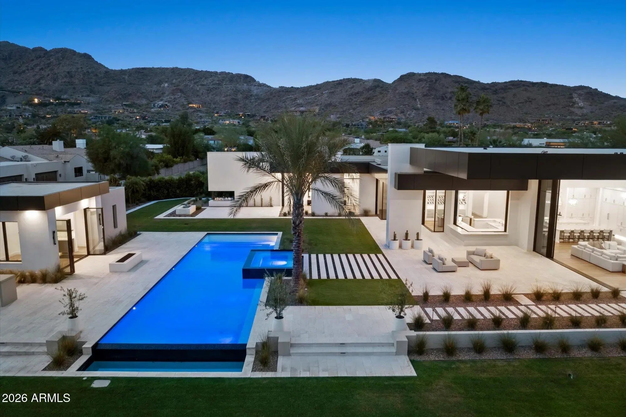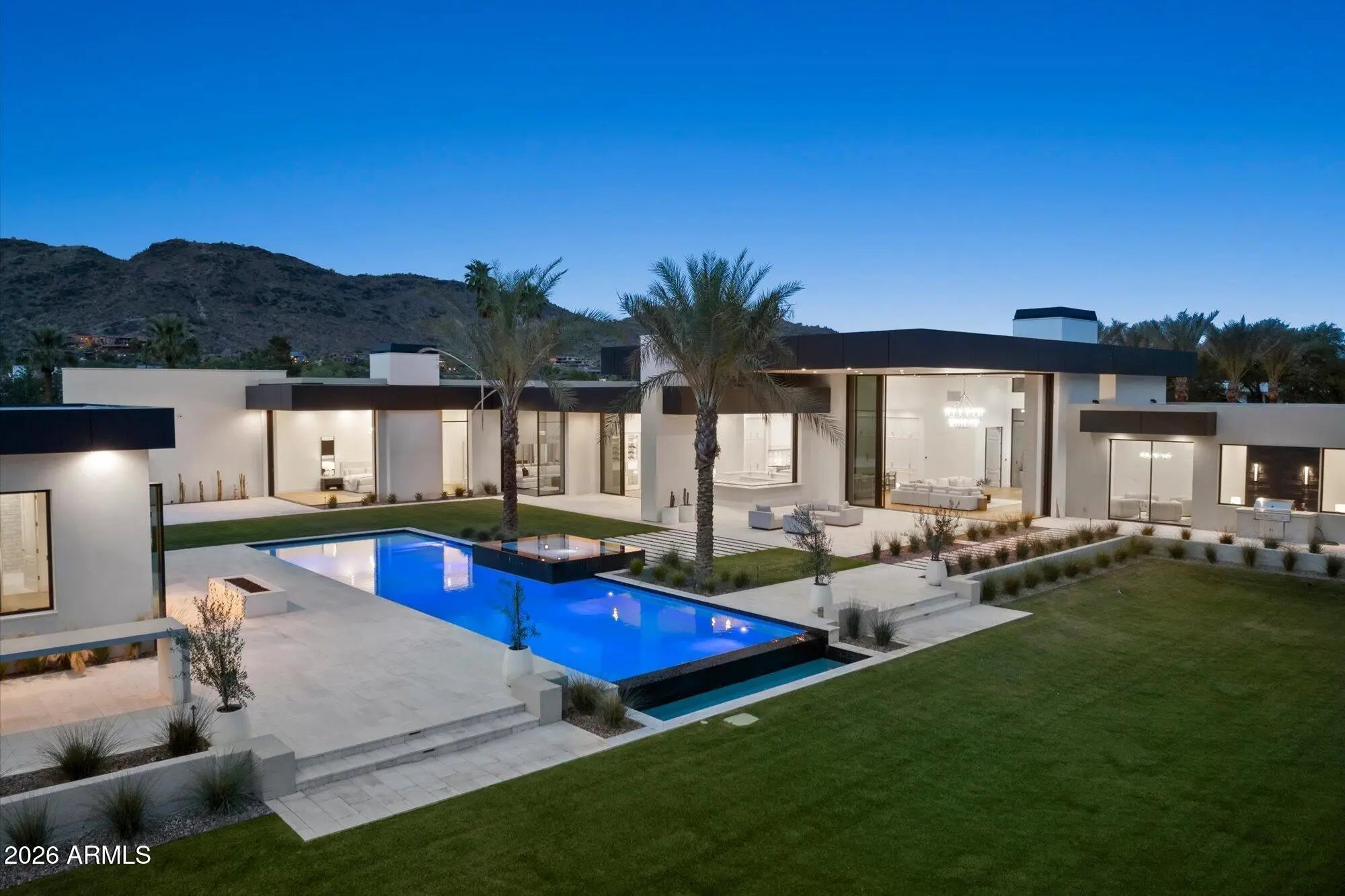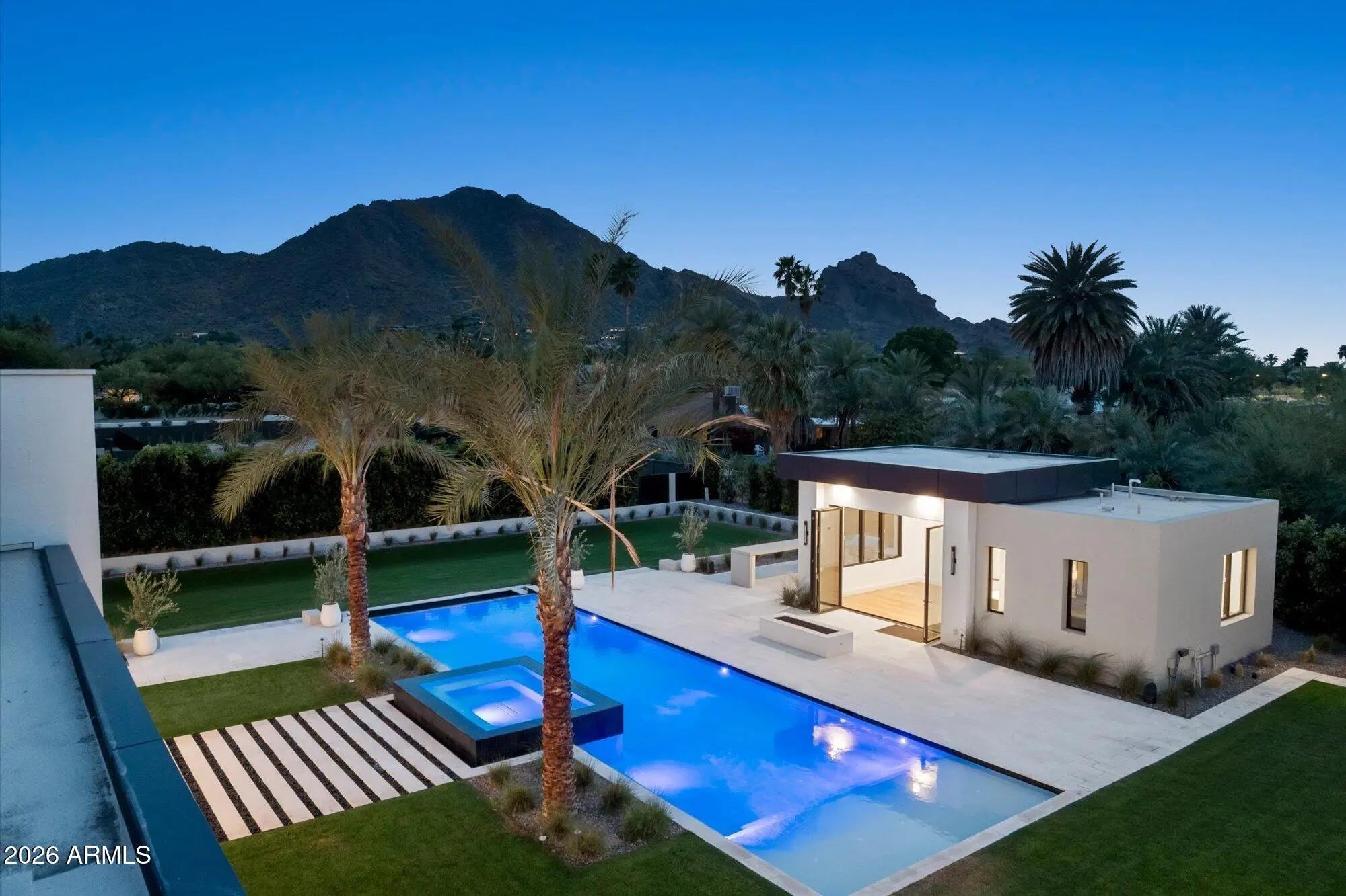 Experience stately views from this timeless Brand New Estate in one of the most desired neighborhoods in Paradise Valley with BIG VIEWS from every room. The Great Room opens to epic views of Camelback Mountain, with 18ft tall motorized pocketing doors to match the impressive ceilings, seamlessly blending indoor & outdoor living. The custom Kitchen, full Catering Kitchen, double islands, & indoor/outdoor Bar continue into the Dining Room with custom refrigerated Wine Cellar & Game Room. The Primary Suite is well appointed with amenities and 2 outdoor retreats...A nearby suite for Gym or Flex Space and a split floorplan with 3 Junior Suites around a Den plus a full Detached Guest Home. The quality of finishes is unsurpassed!