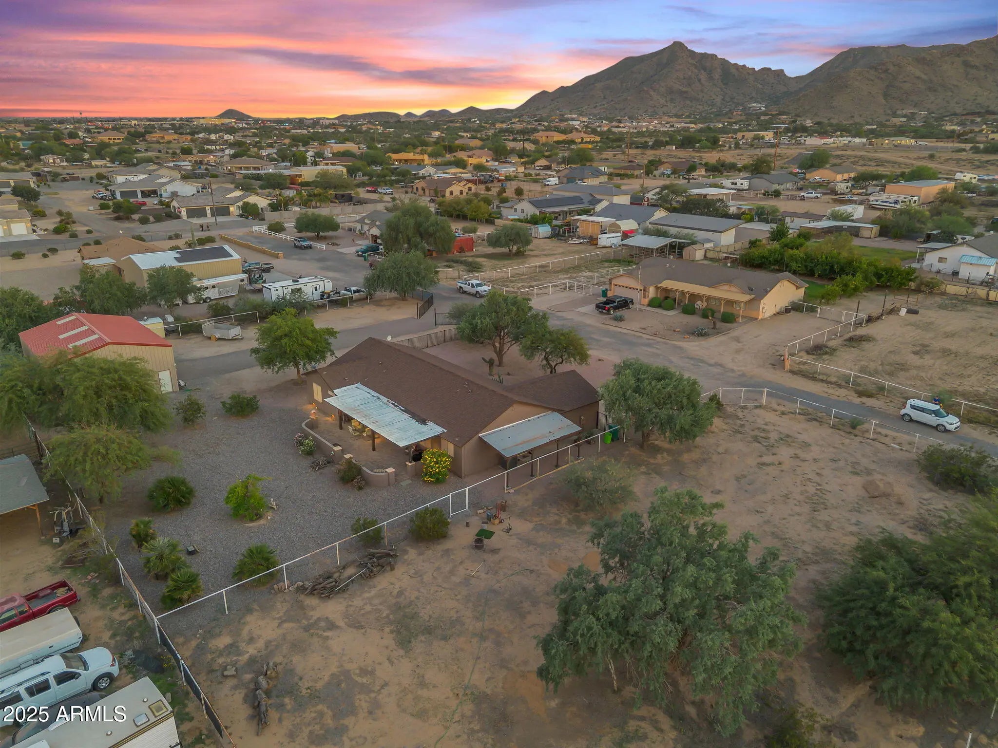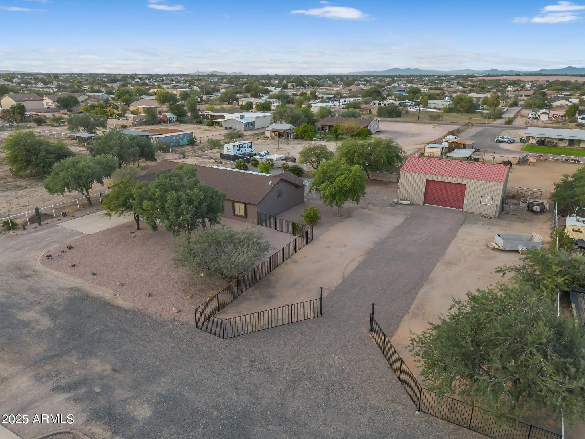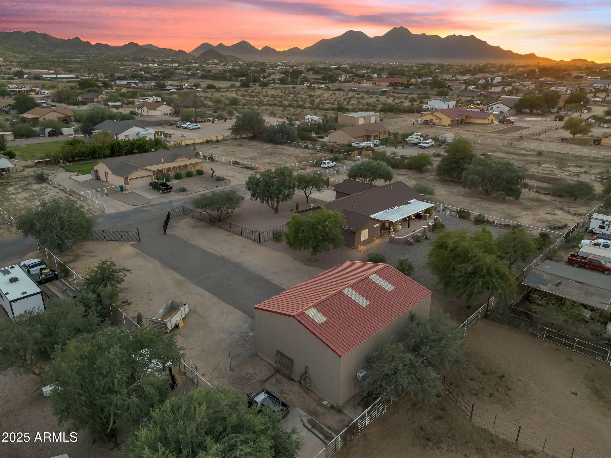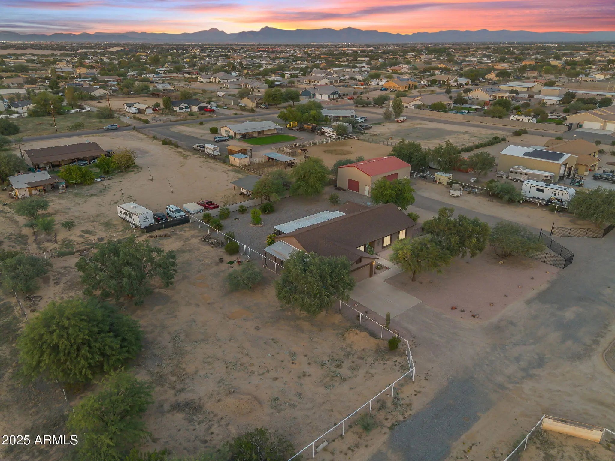 Welcome to a rare one-acre property near the heart of Queen Creek. This single-level home features four bedrooms, two bathrooms, and a versatile bonus room—designed for both comfort and functionality. The efficient floor plan offers open-concept living spaces with vaulted ceilings, creating a sense of openness and filling each room with natural light. Step outside to enjoy quiet mornings and breathtaking Arizona sunsets from the extended paver patio—perfect for entertaining family and friends or relaxing under the stars. Set on a full acre with no HOA, this property provides space and flexibility for every lifestyle. There's room for hobbies, a classic car collection, a small hobby farm, or even a future guest house. The expansive RV garage and workshop has a car lift and an insulated insulated office area with a loftideal for storage, projects, or a home-based workspace. Equestrians will appreciate the existing large turnout and the surrounding open space that allows for a more elaborate setup if desired. Conveniently located near San Tan Mountain trailheads, top-rated schools, shopping, dining, and Queen Creek's vibrant community amenities, this property offers the best of both worldscountry-style living with in-town convenience. Whether you're a family wanting more room to grow, an empty nester seeking privacy and space, or an equestrian enthusiast looking for the freedom of no HOA, this home delivers the perfect blend of comfort and convenienceso you can enjoy Arizona living to its fullest!