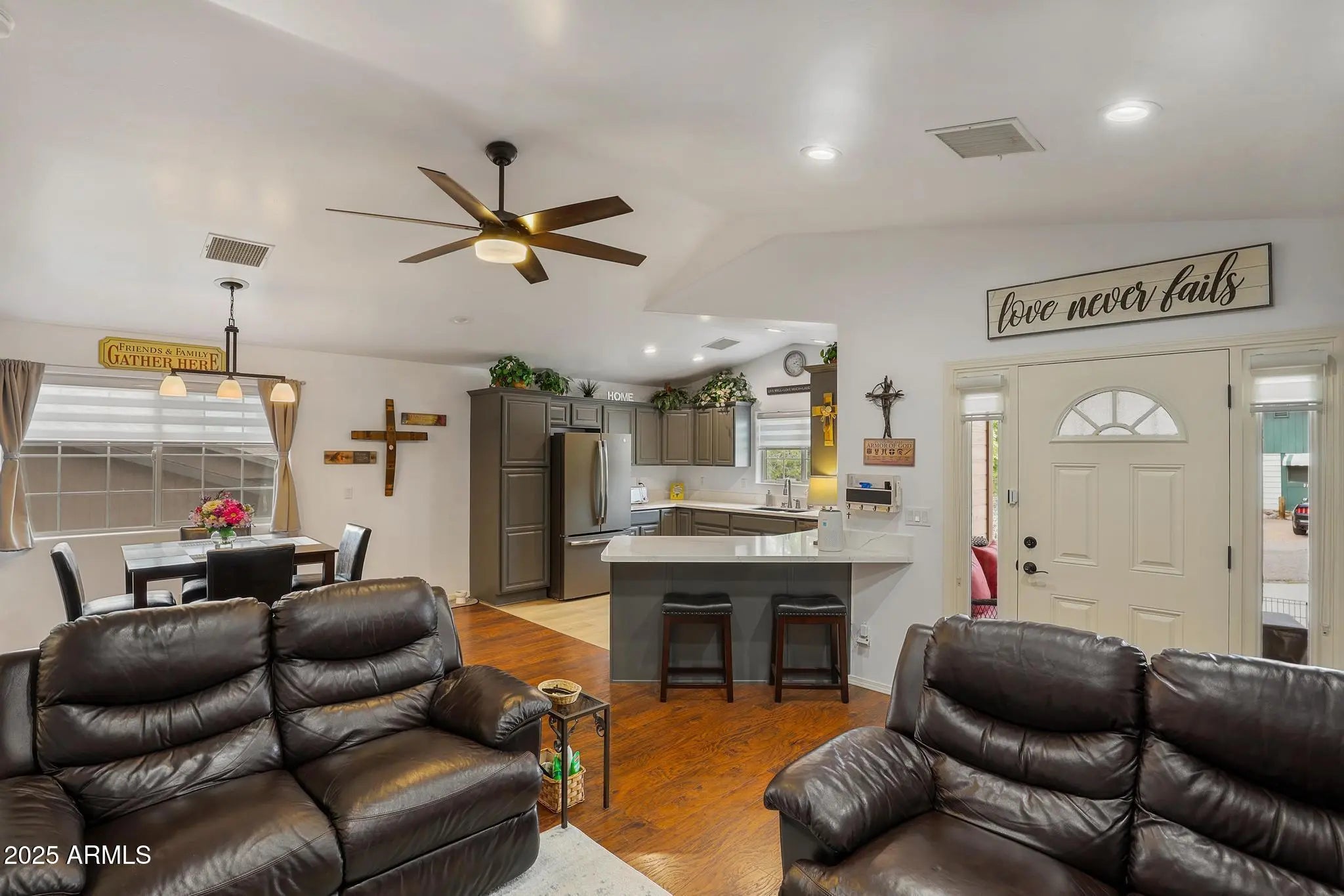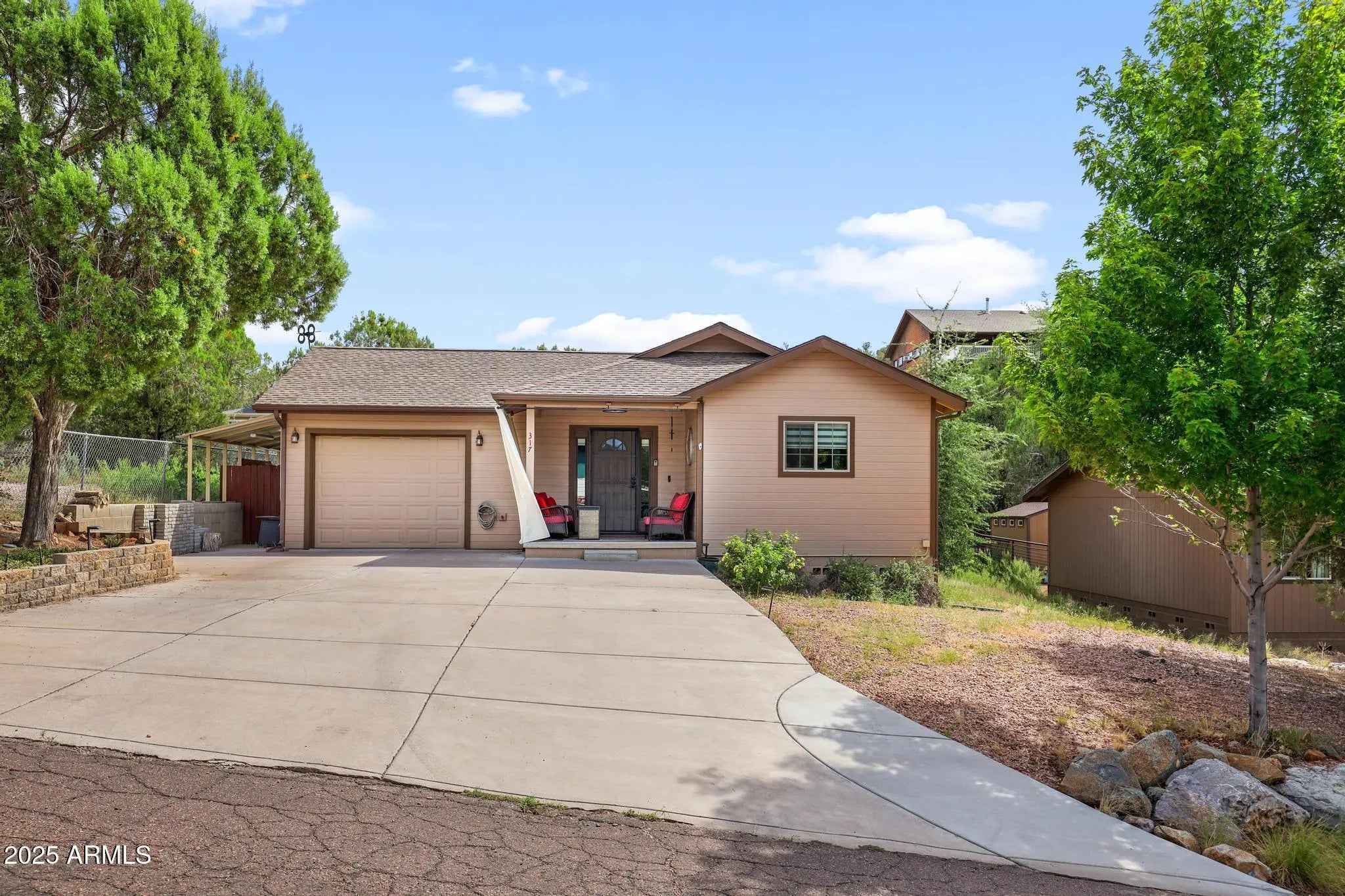 Turn-key mountain escape in beautiful Payson, AZ! This clean, cozy 2-bedroom, 2-bath home is move-in ready and full of thoughtful updates. The bright, open floor plan features vaulted ceilings and an inviting living space. The kitchen shines with Quartz countertops and modern finishes, while both bathrooms are refreshed with Granite tops. Enjoy a large fenced backyard perfect for pets, gardening, or relaxing in the cool mountain air. The oversized garage offers plenty of space for parking, storage, or hobbies. Peaceful Rim Country living with the convenience of town nearby.