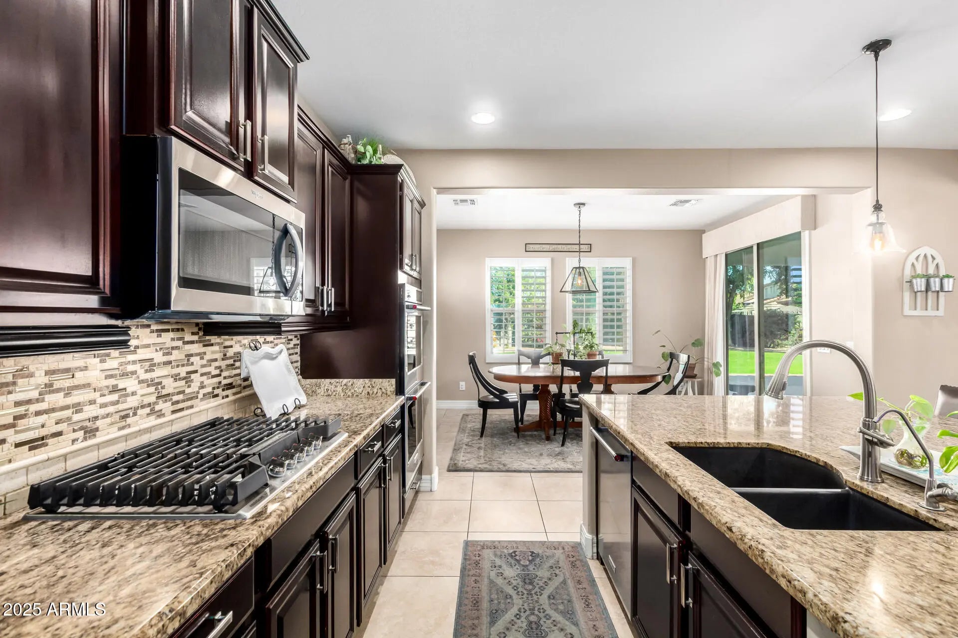Welcome to your own slice of paradise! This exquisite home greets you with a cozy courtyard, and a roomy 4-car garage. Inside, you'll love the stylish tile floors, plantation shutters, and pre-wired surround sound that set the mood for every occasion. Chef's kitchen steals the show with SS appliances, wall ovens, endless cabinets, a mosaic tile backsplash, granite counters, and a center island with a breakfast bar perfect for morning chats. Enjoy gourmet meals in the elegant formal dining area. Main bedroom delights with direct backyard access and a walk-in closet, while the den, complete with built-in cabinets, makes the perfect home office or reading retreat. Spacious backyard offers a covered patio, lush grass, and plenty of room for fun under the sun. Make it yours now!