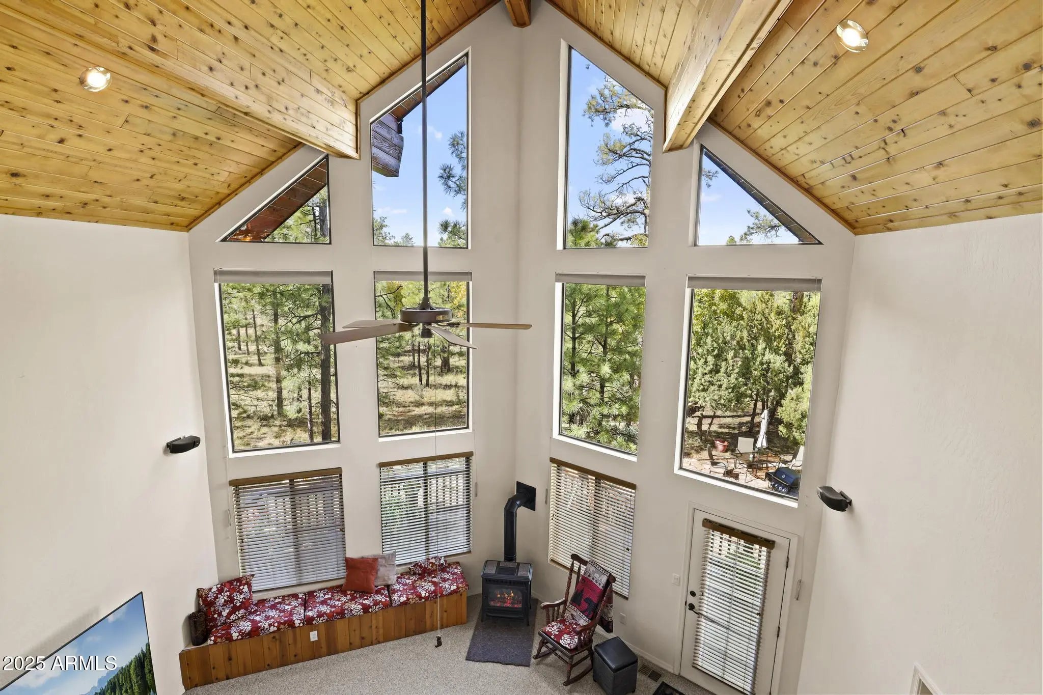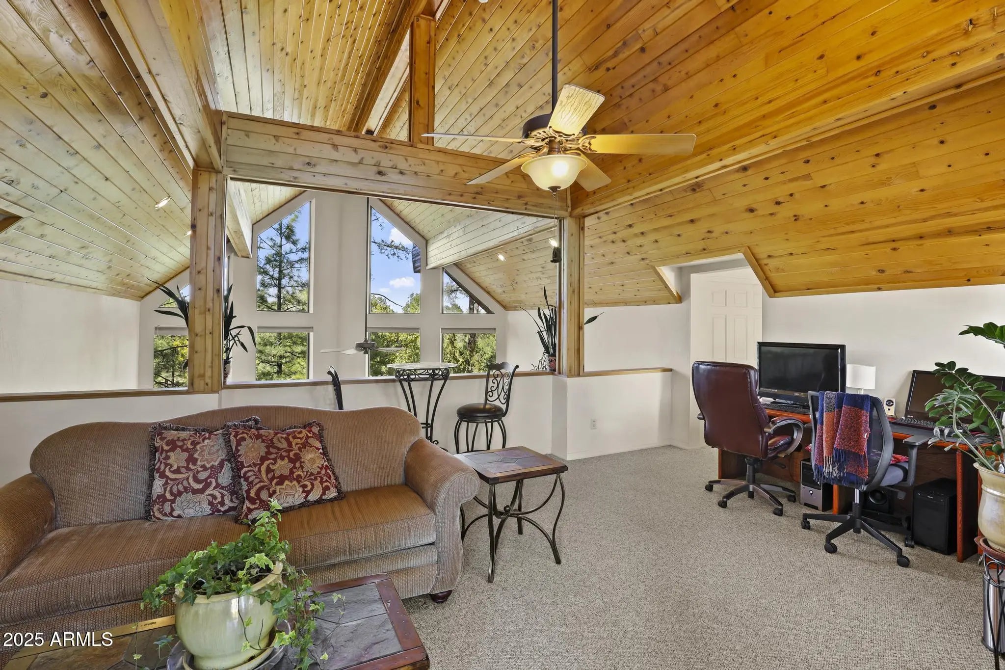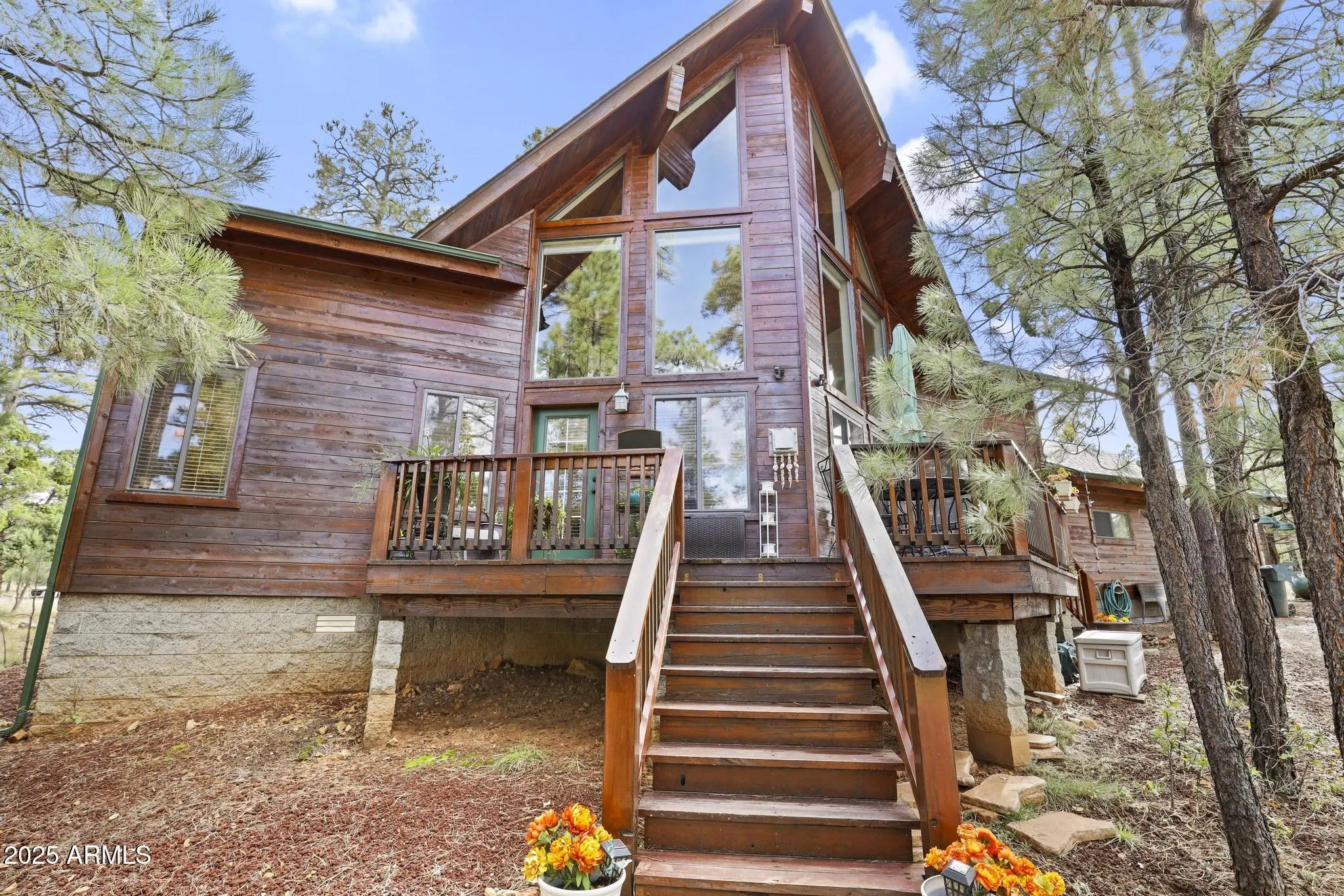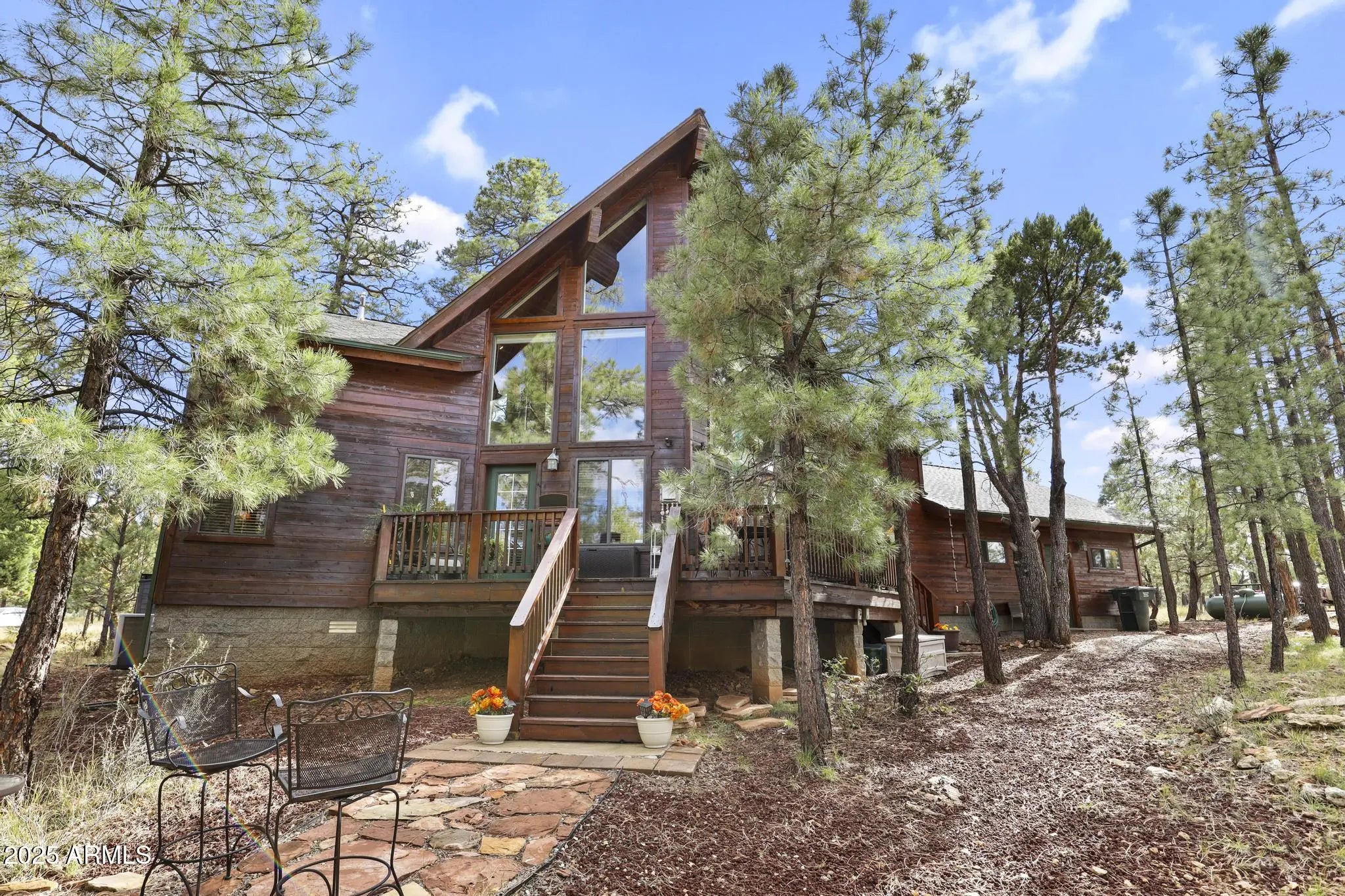 Charming A-frame cabin in the tall pines of Happy Jack, AZ! Set on a private .84-acre lot, this 4-bedroom, 2.25-bath retreat combines rustic warmth with modern updates. Enjoy a bright living area with wood finishes, a cozy loft perfect for an office or reading nook, and a kitchen with newer appliances plus a new washer and dryer. Extras include a reverse osmosis system, water softener, and three spacious decks to take in the serene forest views. The oversized garage offers plenty of room for vehicles, tools, and outdoor gear, with space for RVs or trailers. Recently sealed siding ensures low maintenance. The perfect year-round home or weekend getaway in the peaceful beauty of Happy Jack.