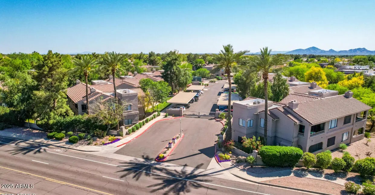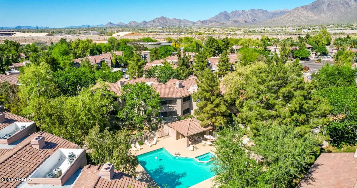 Welcome home to this beautifully updated 2-bedroom, 1-bath condo in Gated Village North Community. Offering 1,090 sq ft of light and airy living space, this home features 9-foot ceilings, wood-look tile flooring throughout, a spacious kitchen, large great room with cozy fireplace. All appliances convey. Retreat to a private covered patio. Residents enjoy three heated community pools, tennis courts and scenic bike and walking paths. The HOA covers water, trash, roof, exterior paint, landscaping, insurance and pest control. Ideally located across the street from Scottsdale's Horizon Park with a dog park, pickle ball courts and within walking distance to popular restaurants, close to AJ's Fine Foods, Safeway, Pita Jungle and Starbucks. Easy access to shopping and 101 Freeway.