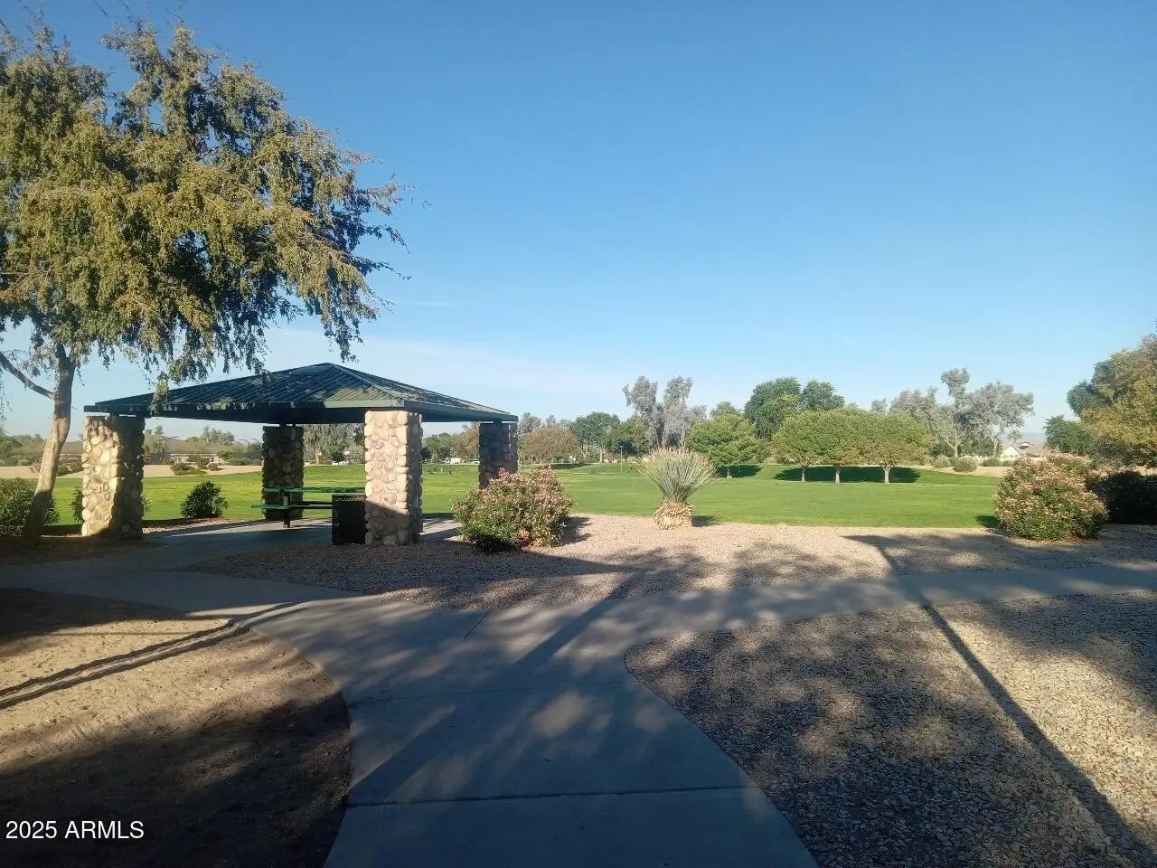 GREAT PRICE on this beautiful home in Morning Sun Farms! SRP POWER BILL is only $96 EVERY MONTH with solar panels! Solar is $65 + SRP is $31 = $96 per month - with REBATES on top of that sometimes!!! Great kitchen with beautiful, staggered white cabinetry, newer stainless steel appliances, disposal replaced, pantry, and lovely breakfast bar with pendant lighting. Ceiling fans in every room, separate garden tub and shower in the main bedroom, water softener, linen closet, and beautiful, LOW MAINTENANCE yard front and back. Recent major expenses include the rear half of the TILE ROOF REPLACED, the EXTERIOR STUCCO REPLACED AND PAINTED, and irrigation pipes and valves between the street and the house were also replaced due to fiber optic installation damage. Continued... Beautiful large neighborhood park with smaller park areas throughout Morning Sun Farms! Owner keeps water softener turned off due to salt avoidance. Security system/doorbell is also turned off for privacy reasons. Water softener and security system are not warranted for that reason - conveying as is.