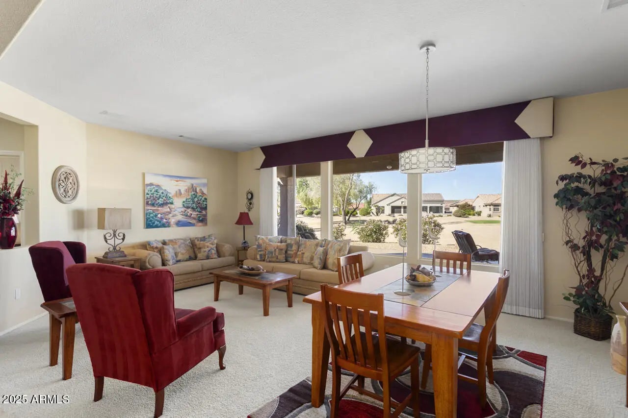 GOLF COURSE GEM WITH SUNSET VIEWS! Corner lot on the 6th tee of Granite Falls South with stunning golf and sunset views. This turn-key, well appointed Verbena offers comfortable living. Spacious kitchen w/granite, oversized island, newer stainless steel appliances. Great room w/surround sound. Casual dining in kitchen/great room. Formal dining and living room. Primary suite w/bay window; updated baths and a handy powder room. Extended patio overlooking the golf course, perfect for sunsets and relaxed outdoor living. 2023 exterior paint, newer HVAC, extended 2-car garage w/cabs, epoxy floor, workbench, sink & soft water, laundry with plenty of room for ironing, hanging, folding.