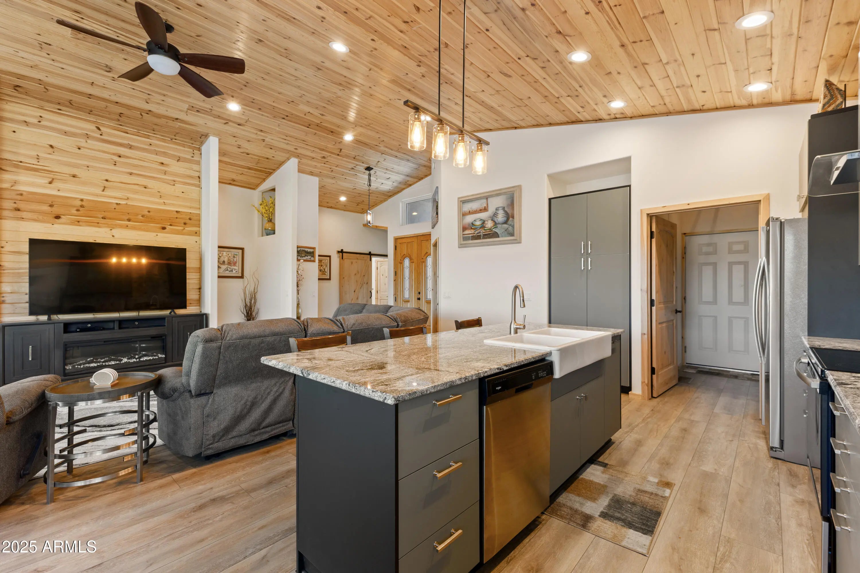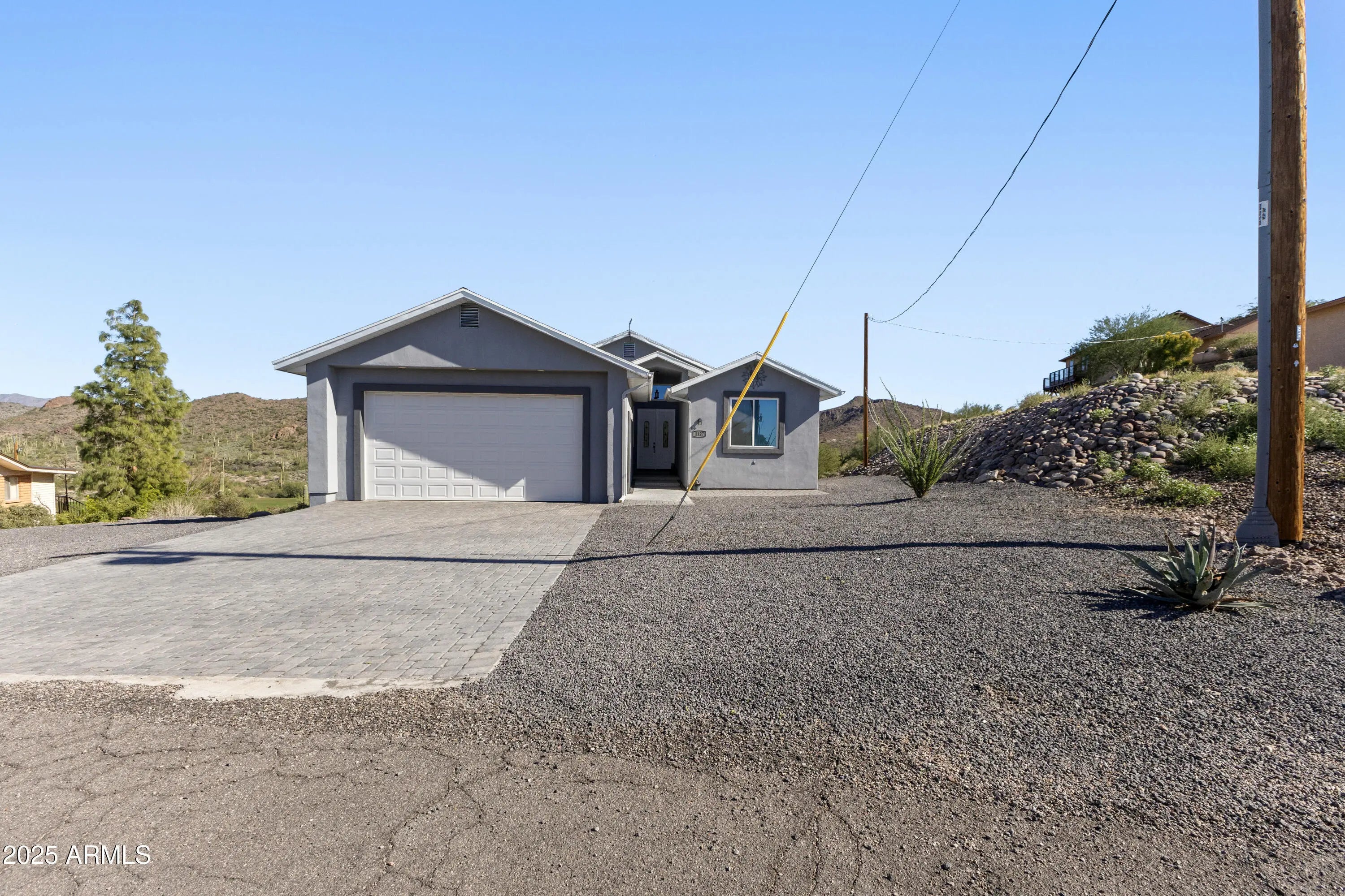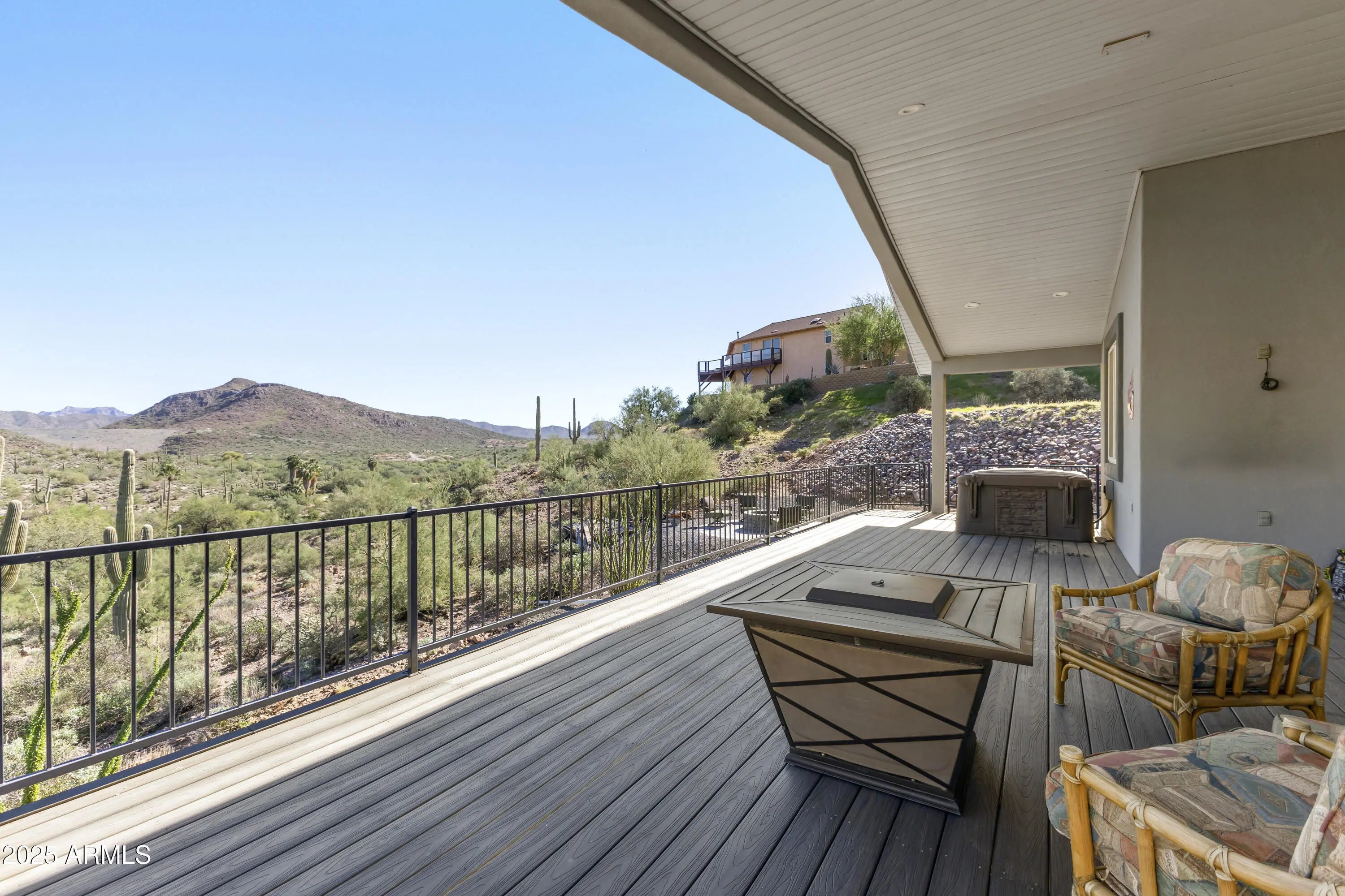 This exceptional 3-bedroom, 2-bath home is as impressive as its breathtaking view of the 15th fairway and the mountains of the Tonto National Forest. Built in 2022, this home showcases premium upgrades throughout, including energy-efficient insulated walls for enhanced soundproofing, custom blinds, and gorgeous tongue-and-groove Canadian pine ceilings. Offered fully furnished, it's move-in ready and beautifully appointed. The expansive deck is an entertainer's dream—perfect for enjoying those incredible views. The oversized, climate-controlled 2-car garage offers year-round comfort and versatility, ideal for a workshop or potential guest space. Downstairs, a full-height basement features 10-foot ceilings, a mechanical room, and additional shop area. Whether you're an avid golfer, hiker, or ATV enthusiast, this home offers the perfect blend of adventure, comfort, and style.