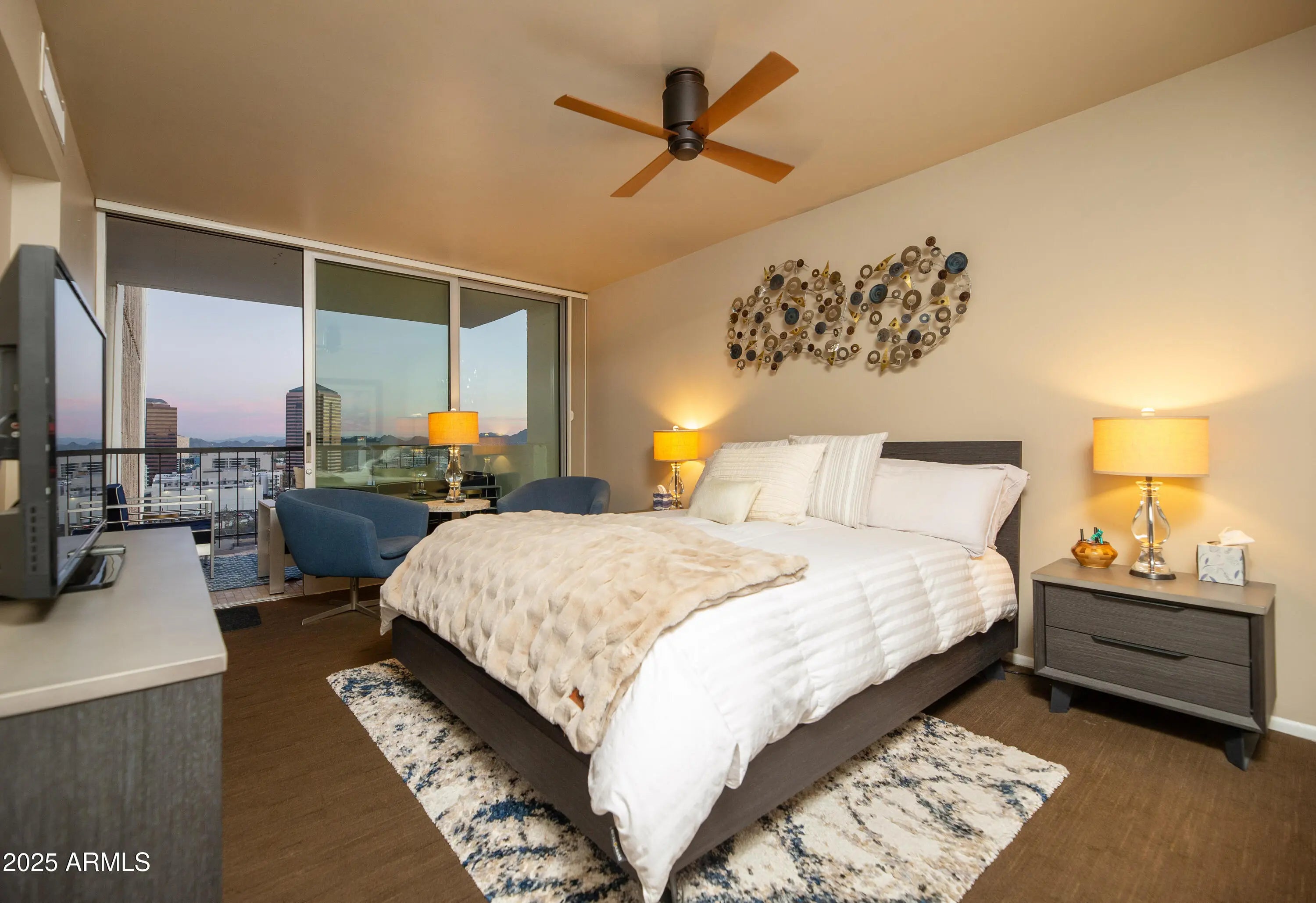 Welcome to The Regency on Central, one of Midtown Phoenix's most iconic and historic high-rises located in the heart of the Arts District. This rare corner residence is one of only a handful of 3-bedroom homes in the building—offering timeless sophistication, incredible views, and an abundance of space both inside and out. Enjoy double-sided balconies, including a north-facing terrace with breathtaking views of Camelback Mountain and Piestewa Peak, where sunrises paint the sky while you enjoy your morning coffee. Inside, the expansive kitchen is a true showpiece—featuring an oversized island with seating, top-of-the-line appliances, and remarkable space that's perfect for both daily living and entertaining. The split floorplan provides privacy and flexibility. The primary suite boasts sweeping mountain views, a spacious layout, and an oversized walk-in closet. The two additional bedrooms are equally generous: One currently serves as a well-appointed office with custom built-ins along with a closet and private access to the south balcony, while the third bedroom features a large walk-in closet--and additional access to the south balcony! The main living area is bathed in natural light through floor-to-ceiling dual-paned windows and doors, complemented by elegant custom wall panels and panoramic views that stretch for miles. A formal dining room adds sophistication and versatility, making this home ideal for intimate gatherings or larger celebrations. Experience a perfect balance of privacy, luxury, and livability in this one-of-a-kind residence at The Regency: Where history, design, and the arts come together in the heart of Phoenix.