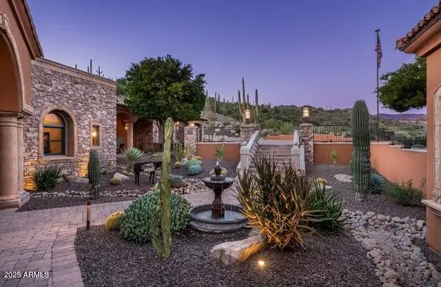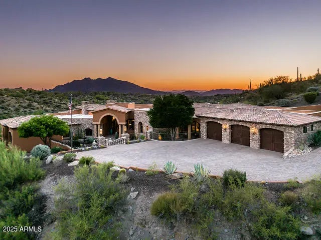 An extraordinary opportunity to own one of Carefree's most private and elegant estates behind the gates of Ocotillo Ridge. This 7,783 sq. ft. modern hacienda sits on nearly 5 acres with over 3,000 sq. ft. of additional outdoor living space designed for entertaining and sunset dining. Truly turnkey — all furnishings and accessories included with a full-price offer. Exceptional details throughout: hickory hardwood and slate floors, Cantera stone fireplaces, beamed ceilings, accordion doors opening to an infinity-edge pool and mountain vistas. Main home offers a luxurious primary suite with gym and sitting area, three guest suites, a private office, and a separate guest casita. Bonus feature: an air-conditioned dog casita that's as special as the rest of this remarkable estate. Perfect for buyers seeking privacy, craftsmanship, and a resort-like lifestyle minutes from downtown Carefree and Cave Creek.