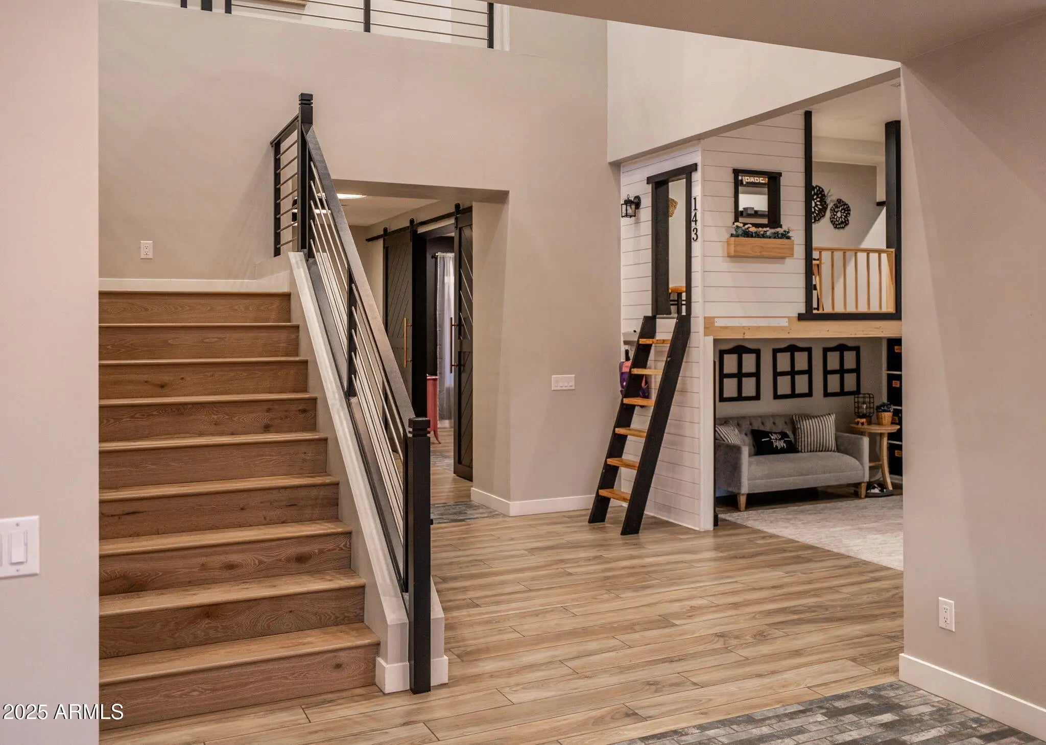 Located in the highly coveted Morrison Ranch community, this exceptional home combines luxury living, modern comfort, and family-friendly design. From the moment you enter, the open and spacious floor plan is elevated by designer upgrades and thoughtful custom touches throughout. At the center of the home, the gourmet chef's kitchen impresses with premium Wolf appliances, high-end finishes, and a seamless flow into the living and dining areas. A dramatic 20' stackable glass slider expands the indoor-outdoor living experience, opening to a true resort-style backyard complete with a heated pool, oversized baja step, tranquil water feature, and lush, professionally designed landscaping — ideal for entertaining or unwinding in style. Perfect for families, this home features a unique indoor playground with a built-in slide and rock wall, plus a beautifully designed custom office with cabinetry, barn doors, and modern wallpaper accents for elevated work-from-home convenience. Upstairs, the luxurious primary suite is appointed with designer wallpaper, sophisticated finishes, and a private flex space perfect for an additional office, gym, or cozy retreat. The spa-inspired bathroom creates a serene escape, while the upper level also offers three spacious guest bedrooms and a versatile loft ideal for a family media room, play area, or homework hub. Private balconies off the bedrooms provide peaceful views and quiet outdoor moments. Experience the ultimate blend of elegance, comfort, and contemporary family living in this one-of-a-kind Morrison Ranch residence a home where every detail is crafted to elevate your everyday lifestyle.