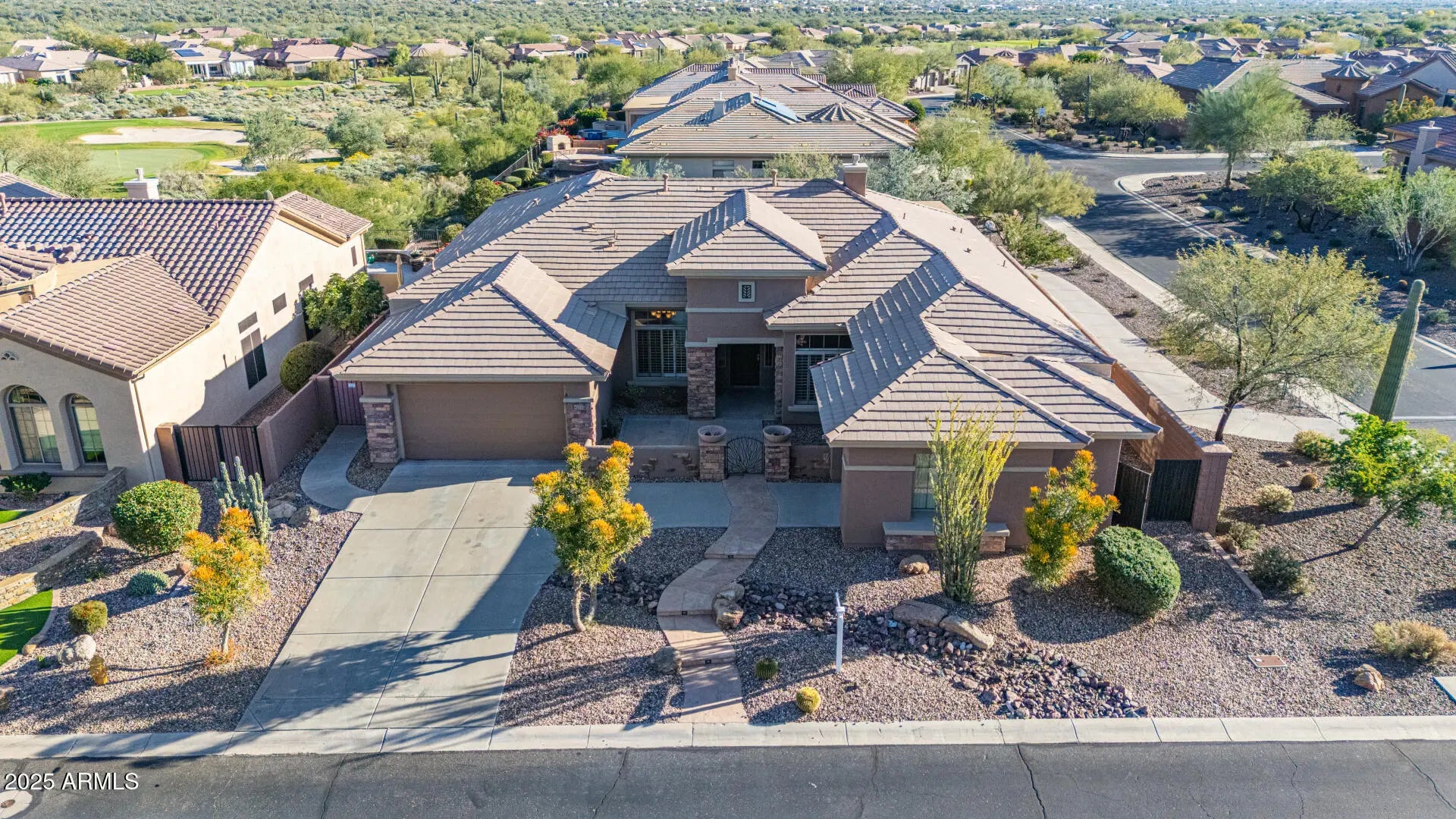 Borders Common Area, North/South Exposure, Sprinklers In Rear, Sprinklers In Front, Corner Lot, Desert Back, Desert Front, On Golf Course, Gravel/Stone Front, Gravel/Stone Back, Auto Timer H2O Front, Auto Timer H2O Back
