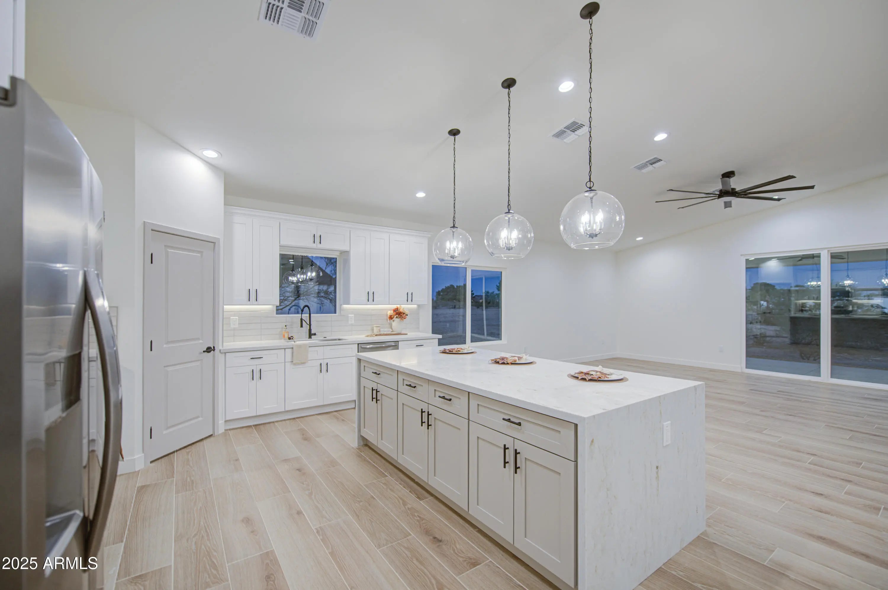 Brand new 4 bed, 3 bath custom home on a spacious 1.03-acre lot with easy access! Features wood-like tile throughout, 9' ceilings, vaulted ceilings in kitchen, dining & living areas, quartz countertops, and ceiling fans throughout. Includes stainless steel appliances. Functional layout with a large master suite and junior suite—ideal for guests or multi generational living. Oversized backyard with covered patio offers endless possibilities. No HOA!