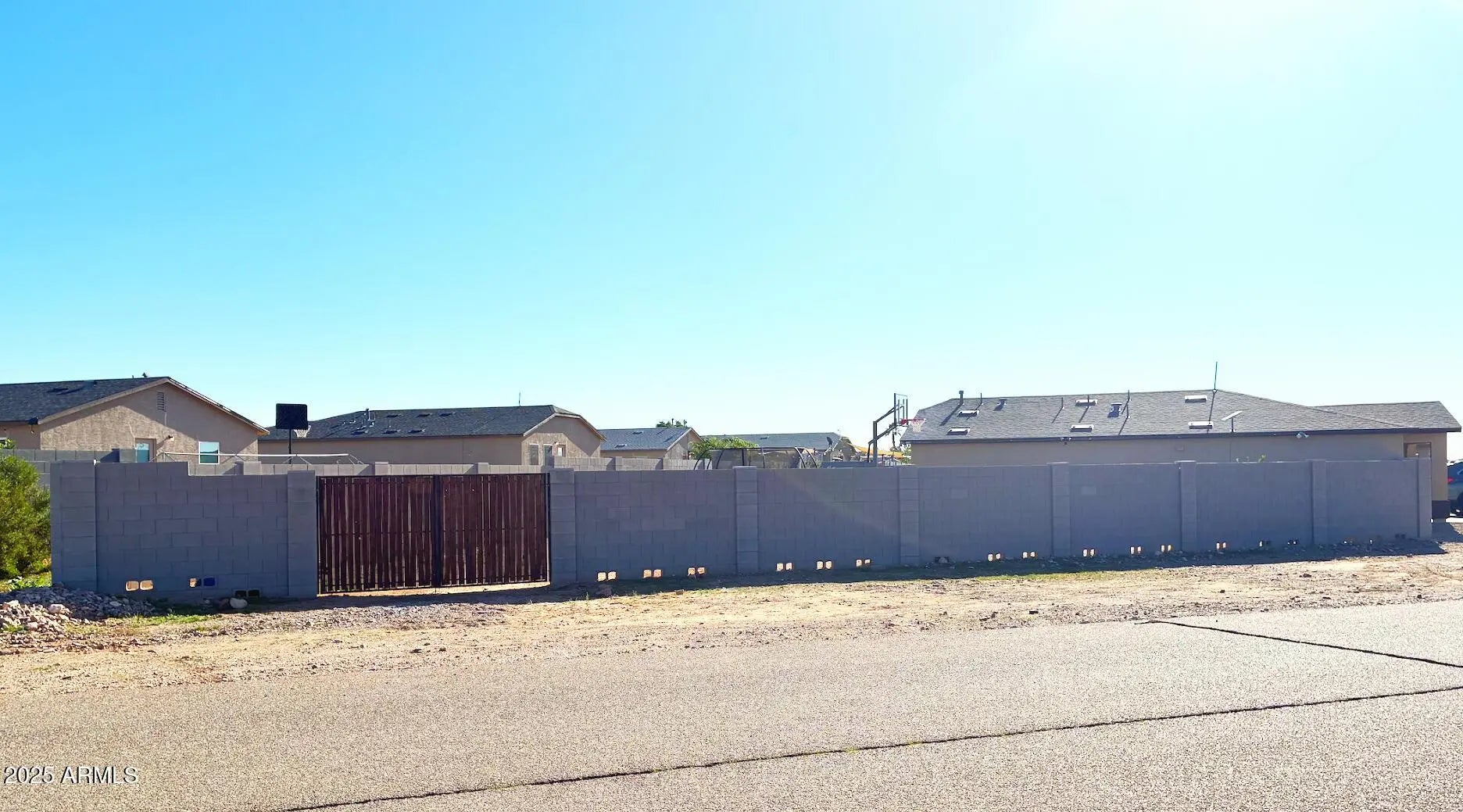 This large corner-lot home offers stunning views and plenty of outdoor space. The property features a full block fence with an RV gate, an in ground basketball hoop and court, fruit trees, and walkways surrounding the home. Park your RV or toys in the side yard and enjoy desert trails right around the corner, one even leads to the local Dillon's restaurant! Inside, you'll find an open floor plan with granite countertops and three spacious bedrooms, two with new carpet. Recent upgrades include driveway widening, weatherization improvements, a new HVAC mini split in the garage, updated patios, outdoor lighting, landscaping, retaining walls, and a full termite treatment. Additional highlights include satin paint,