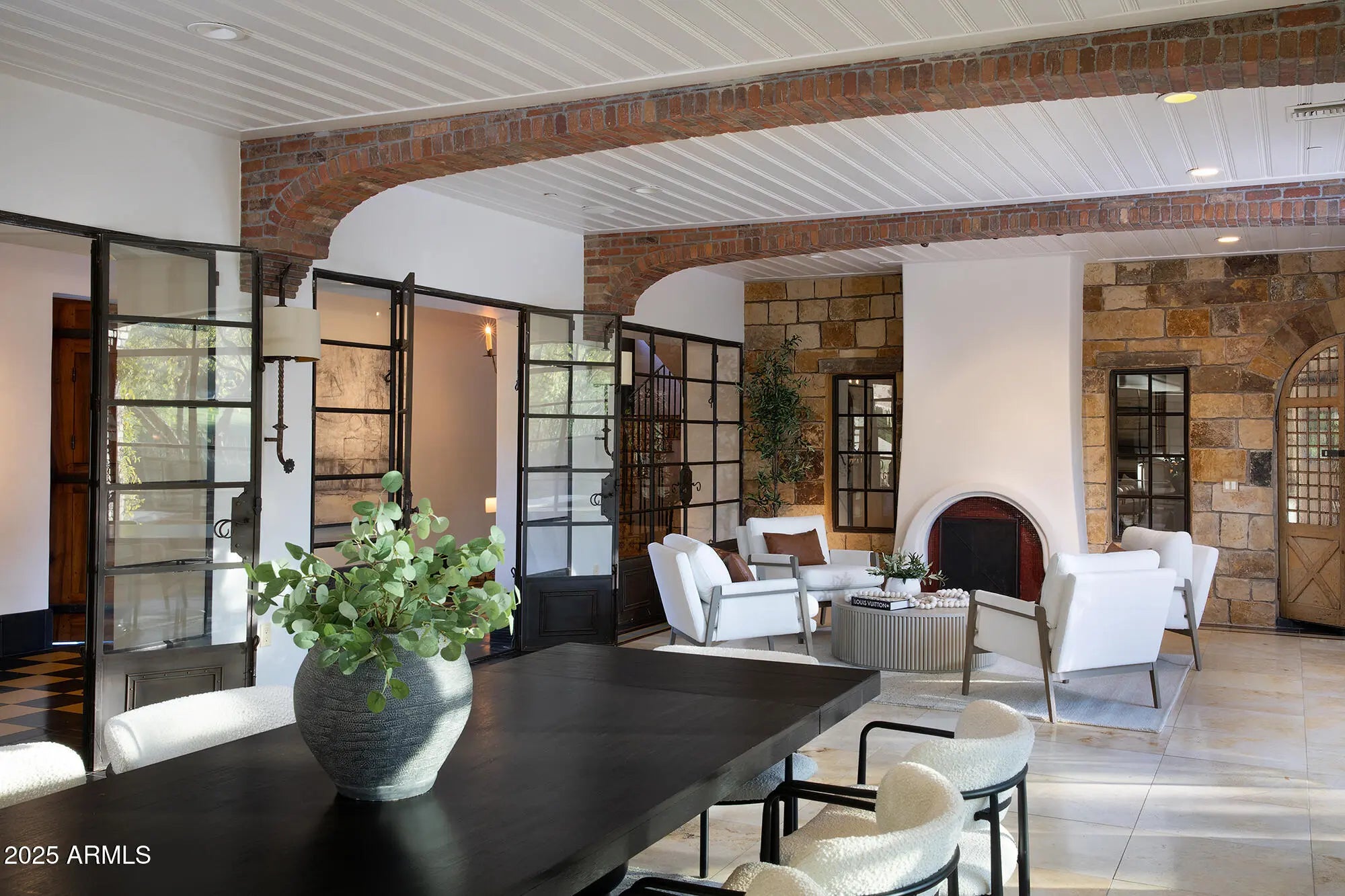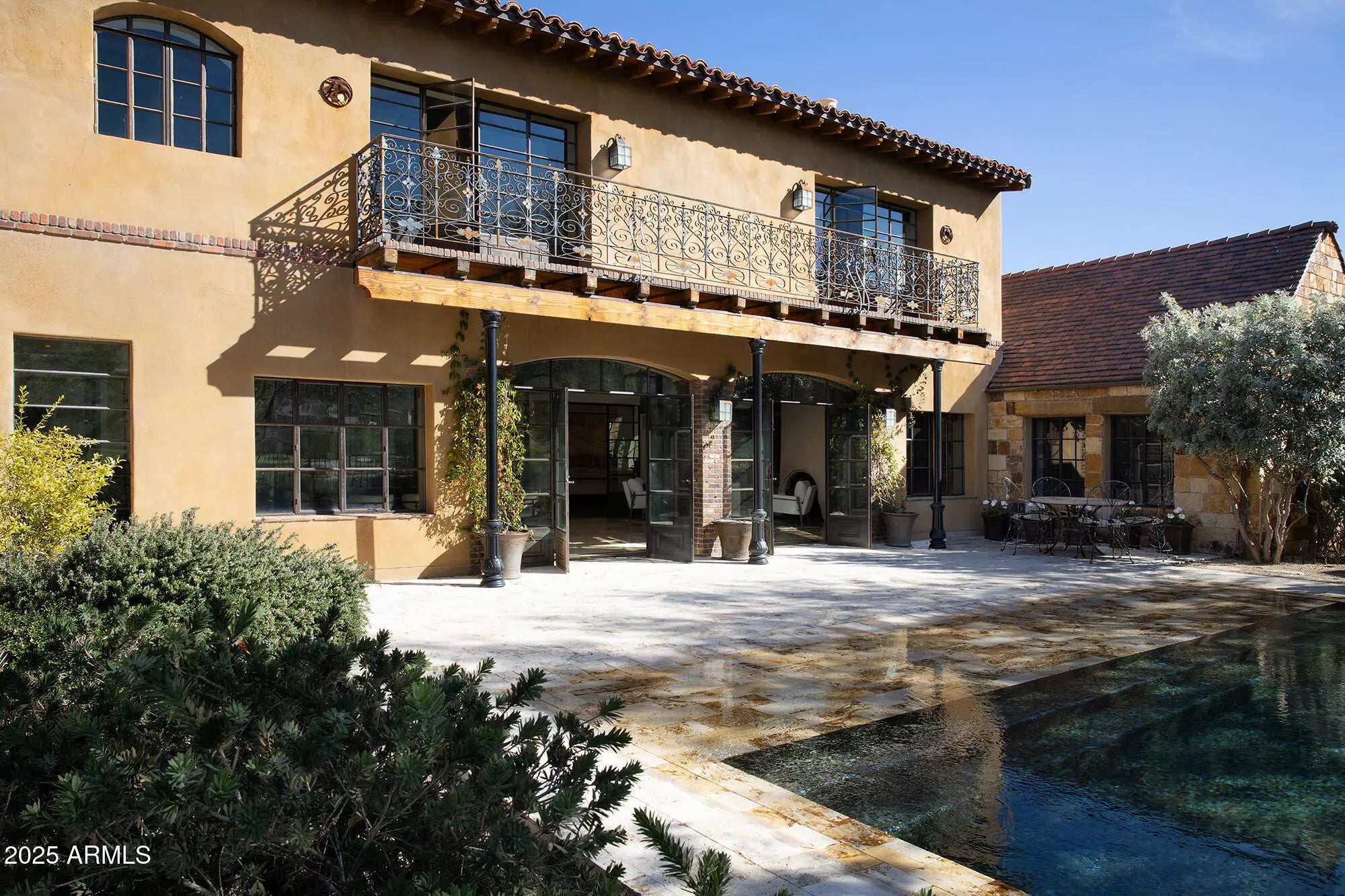 Full Golf Membership (upon board approval) at the Estancia Club, a timeless nestled in the exclusive private community celebrated for world-class golf, elevated living & privacy defines the North Scottsdale experience. This residence captures the essence of luxury & tranquility with a premium lot within the guard gated enclave of Estancia. Poised along the 14th green of the Tom Fazio designed championship course, the 7617 sqft custom residence is a seamless fusion of sophistication & craftsmanship, framed by sweeping, unobstructed views of Pinnacle Peak & Troon Mountain. Freshly painted interiors are framed by cathedral wood beam ceilings, reclaimed wide-plank oak floors & 7 gas fireplaces, setting a refined ambiance & warmth throughout. The gourmet kitchen, complete with custom butternut cabinetry by de Giulio, a striking Verde Bamboo granite island, La Cornue range with bespoke hood & SubZero refrigeration serves as the heart of the home, anchored by a fireplace inviting intimate morning gatherings. Designed for grand entertaining & relaxed living, the formal dining room is a showcase of craftsmanship with antique herringbone oak floors, full bar & elegant wine cellar - perfect for hosting soirees & memorable celebrations. Steel & wood-framed windows capture tranquil panoramas of mountains & fairways, blurring the boundary between indoor comfort & outdoor serenity. The backyard retreat unfolds like a private sanctuary, complete with a private pool & separate spa, stone terraces & lush landscaping, all set against the mesmerizing backdrop of rolling greens & the Arizona skyline. Beyond the residence, Estancia offers a lifestyle of security, exclusivity & world-class amenities: a championship 18-hole Tom Fazio golf course, tennis & pickleball, a heated 25-meter pool & spa, fitness center, spa services, & gourmet clubhouse diningreserved for members and their guests. A true embodiment of refined desert luxury, this extraordinary estate invites you to experience the harmony of architecture, nature & lifestylewhere each sunset over Pinnacle Peak becomes a moment of art & every day feels like a retreat.
