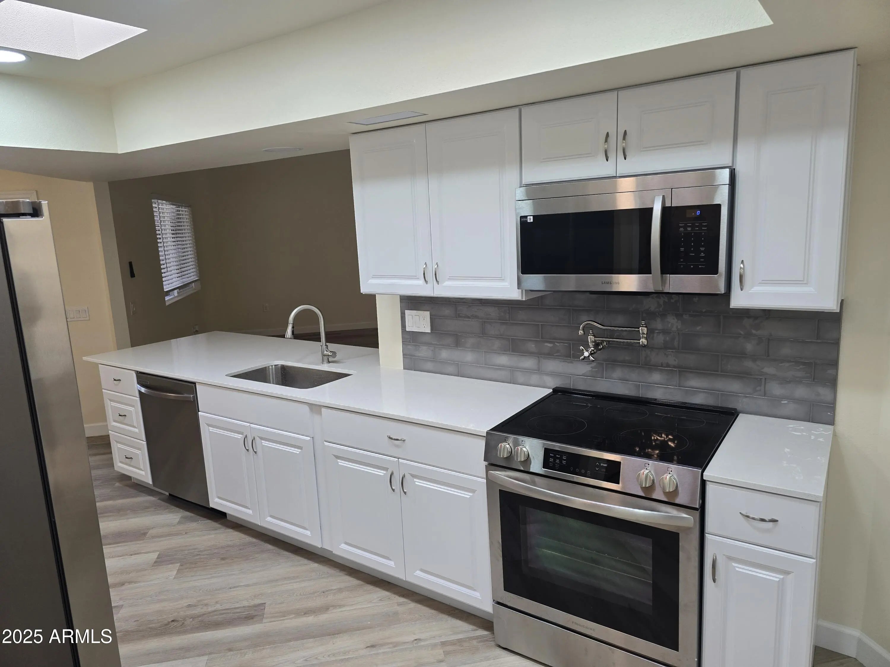 Stunningly Remodeled Sun City Townhome! Step into this beautifully updated home featuring brand-new LVP flooring and a designer kitchen with quartz countertops, tile backsplash, pot filler, and all-new stainless steel appliances. The primary suite offers a luxurious tiled walk-in shower and accent wall, while the guest bath includes a new tub and decorative accent wall for a fresh, modern feel. Enjoy the convenience of a two-car garage, sleek finishes throughout, and low-maintenance living in one of Arizona's premier 55+ communities. Take advantage of Sun City's golf courses, recreation centers, and endless social activities. Move-in ready and beautifully upgraded!