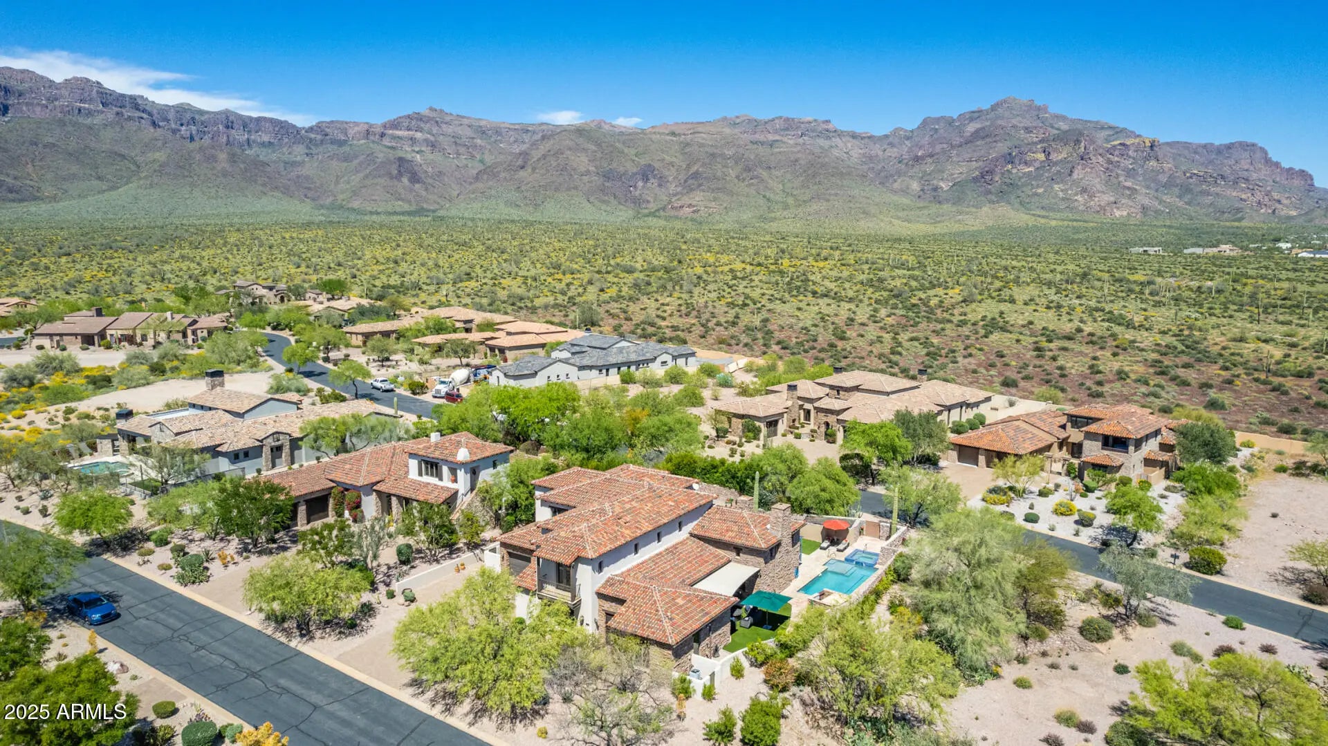 LUXURIOUS Living in Guard Gated SUPERSTITION MOUNTAIN COUNTRY CLUB. This SPECTACULAR HOME is Loaded with Upgrades to Include NEW KITCHEN QUARTZ COUNTERTOPS, NEW CUSTOM Interior ELEVATOR for Effortless Access Between Floors, NEW FRESH Interior Paint & More! This Home Offers 2 Bedrooms, 3.5 baths, A Theatre Room w/ Buyers Option to convert the room into a Primary Suite with Full bath see Details in Documents, Plus a Detached CASITA Opening to an Enchanting Tuscan Court Yard, Perfect for Guests. The OWNERS Suite is a Sanctuary Featuring an Office, Fitness Room, Steam Shower, & Huge Walk-In Closet With MOUNTAIN VIEWS. The Second Guest Ensuite includes Balcony and Views too. The GREAT Room has Soaring Ceilings, exposed beams, and A Cantera Fireplace. GORMET Kitchen Features WOLF Gas Range Double Ovens & Sub-Zero Refrigerator, and Custom Cabinetry Ideal for everyday cooking and entertaining! The GREAT Room Impresses With SOARING CEILINGS, Exposed Beams, and a CANTERA Fireplace!! The NEW Charming AZ Room is Complete W/ its Own Fireplace and Dining Room. Step outside to Backyard Oasis Completely Remodeled in late 2020 New Heated Pebble Tech Pool & SPA with Outdoor Kitchen and updated Landscaping and NEW Solar Pool Cover - A MUST SEE OUTDOOR LIVING EXPERIENCE! BIG BONUS FOR CAR ENTHSIASTS...THIS EXTENDED GARAGE CAN OFFER ROOM UP TO 5 CARS PLUS ADDITIONAL STORGAGE!