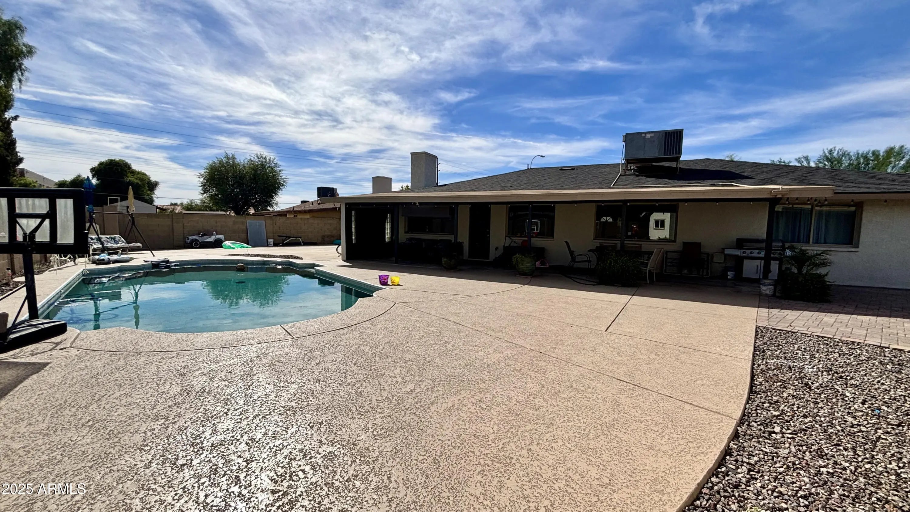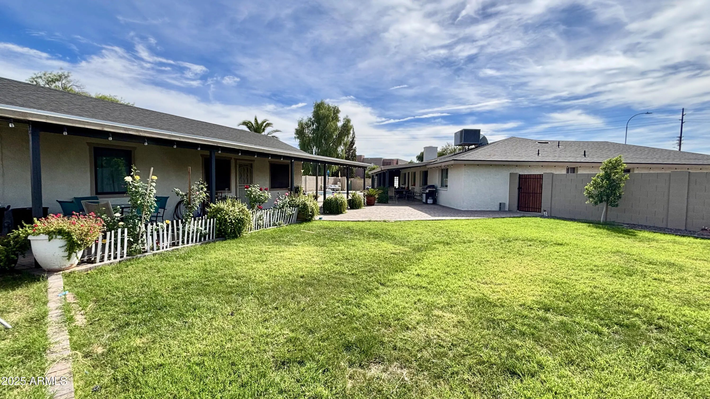 Fantastic opportunity to own a beautifully maintained multigenerational property with a brand-new roof! The main home offers 4 spacious bedrooms, an office, and 2 full bathrooms across 2,470 sqft of comfortable living space. The detached guest house features 2 bedrooms, 1 bath, and 1,025 sqft—ideal for extended family, guests, or rental income—and is metered separately through SRP. Enjoy your private play pool with new cool decking and plaster, surrounded by a lush .38 acres lot with fruit trees, RV gate, 2-car garage, and ample slab parking. Conveniently located just 10 minutes from Sky Harbor Airport. Don't miss out on owning two homes for the price of one—this property truly has it all!
