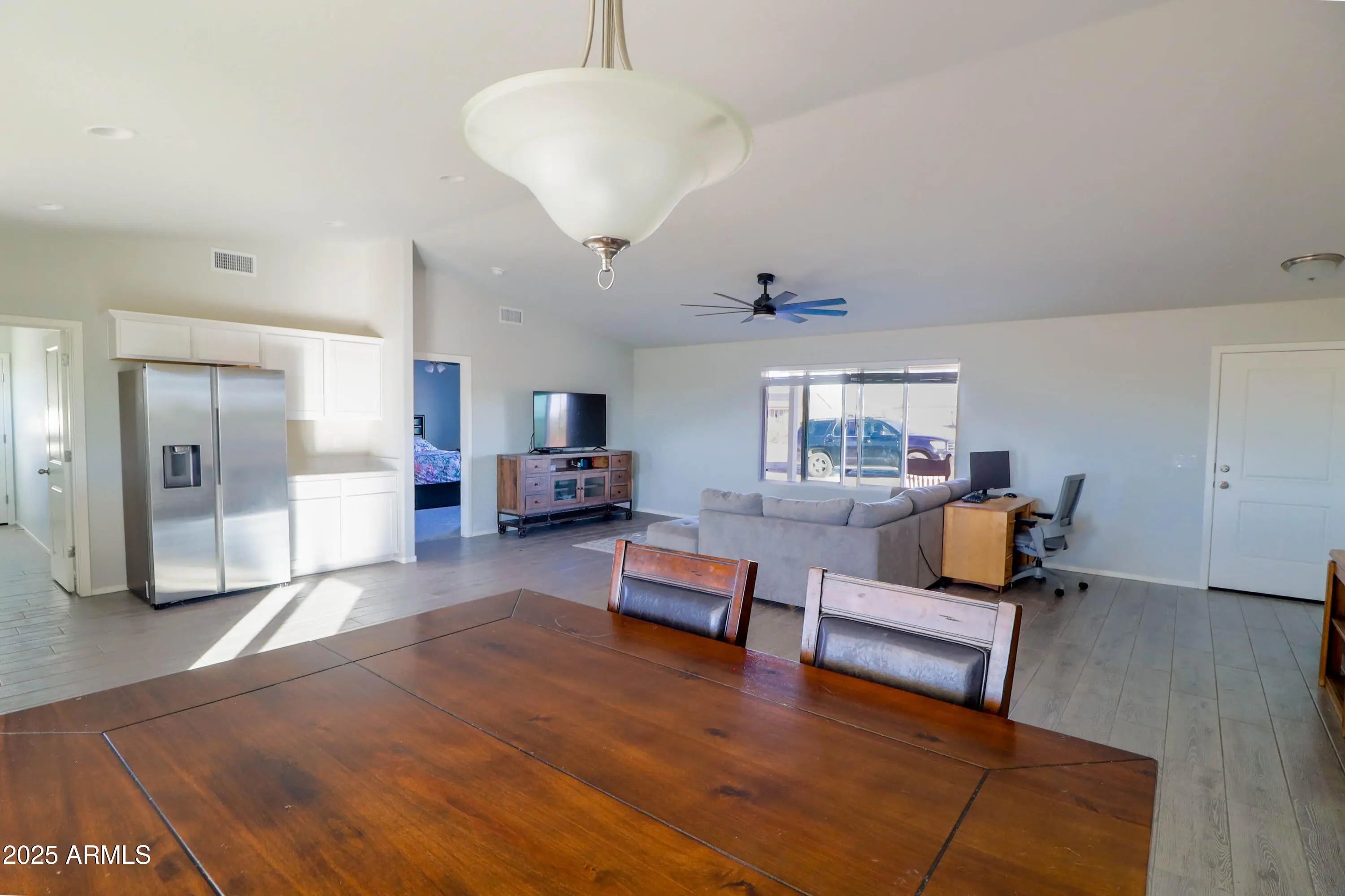 Beautiful less-than-a-year-old 3 bed, 2 bath home on over an acre with no HOA! Enjoy an open floor plan with vaulted ceilings, wood-look tile, and a modern kitchen featuring white shaker cabinets, quartz countertops, and a large pantry. The spacious primary suite includes dual sinks and a walk-in closet. Perfect for RVs, horses, and all your toys with plenty of room to build or expand. Peaceful country living with stunning mountain views — all just minutes from city conveniences!