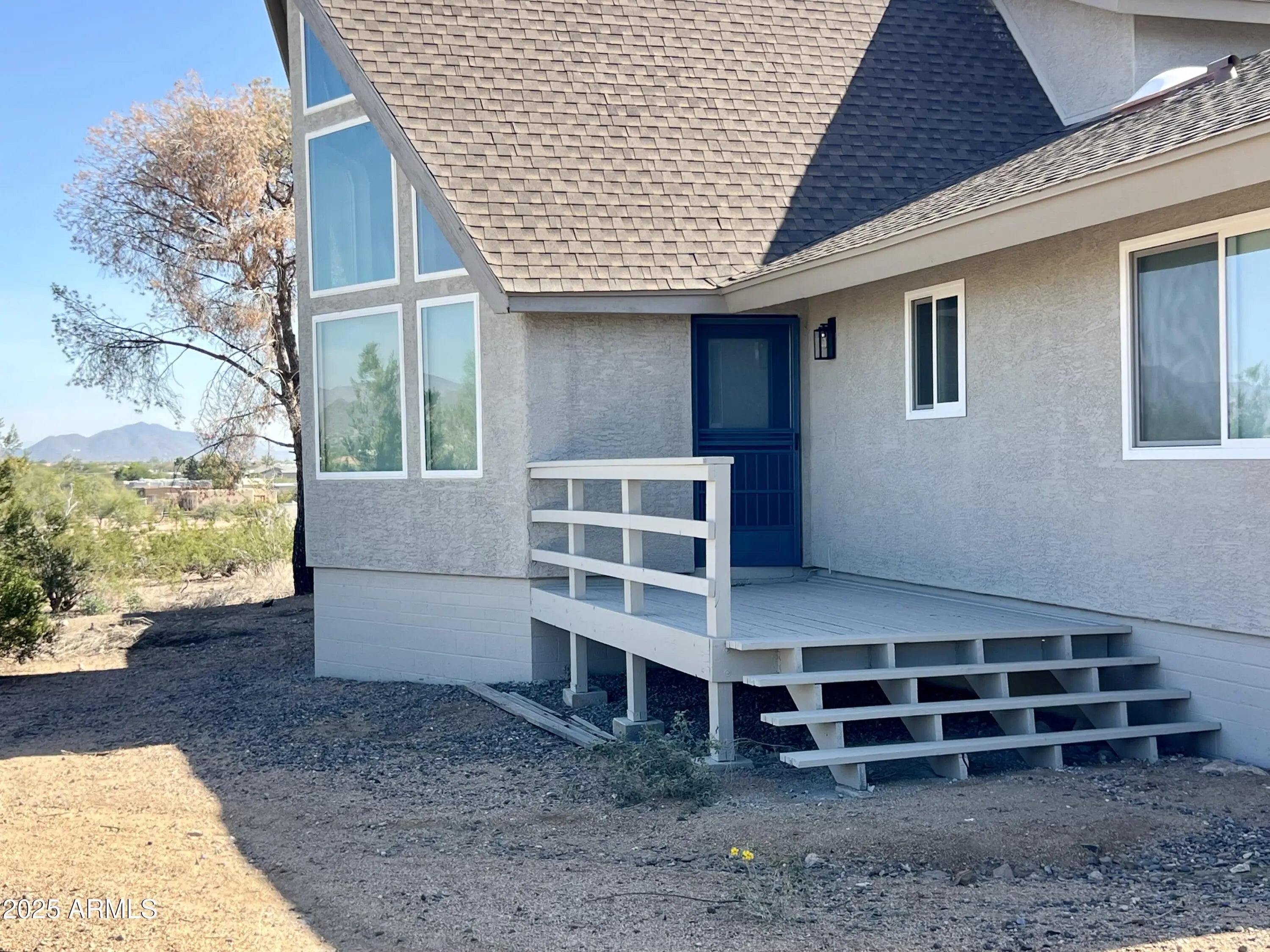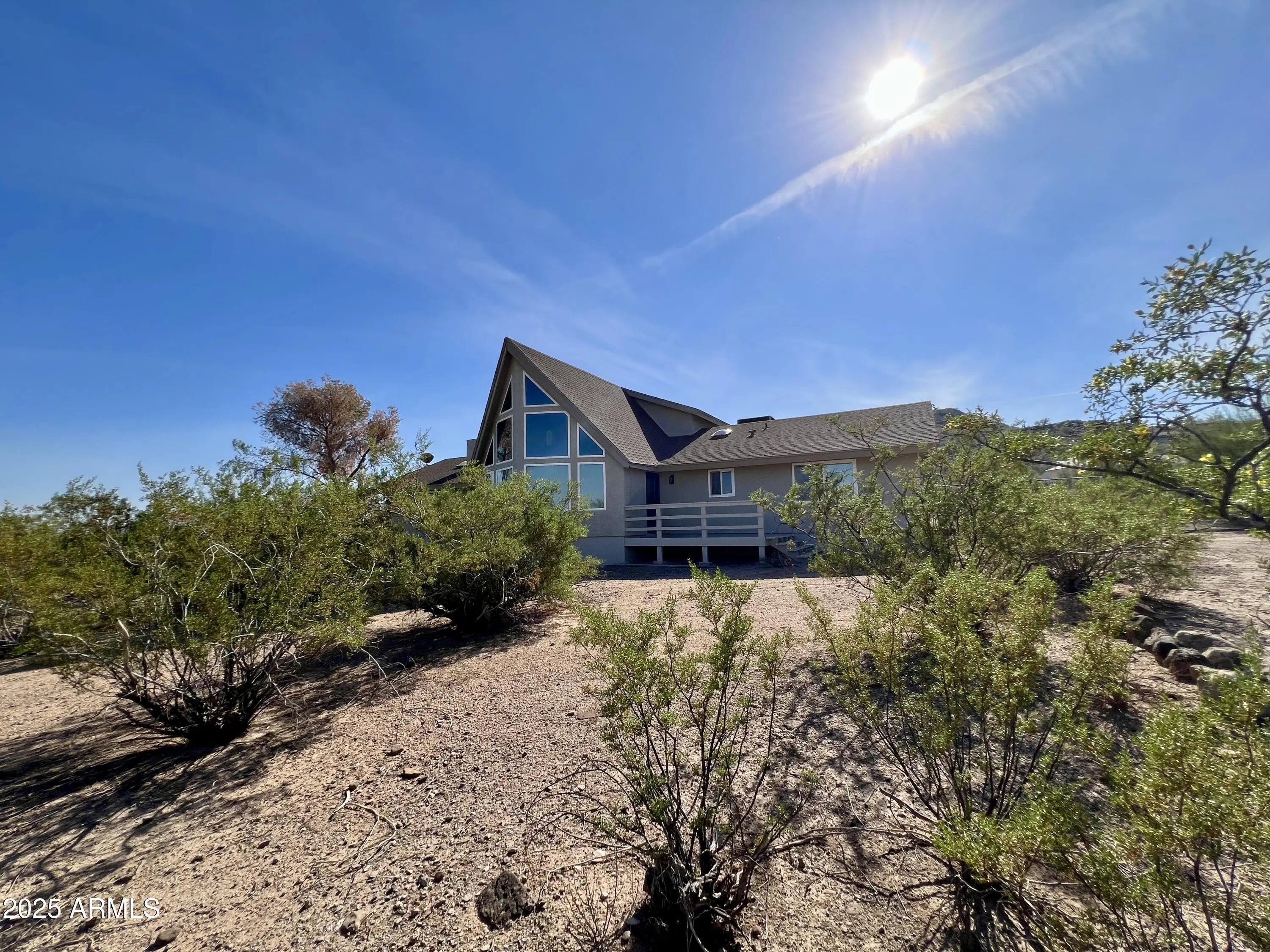 AMAZING MOUNTAIN VIEWS! Enjoy stunning vistas from this ELEVATED 2.5-ACRE LOT featuring a beautifully updated 3,024 sq ft home with main house (~2,200 sf) and attached guest apartment (~840 sf)—perfect for multi-generational living or rental income. The main home offers a spacious primary suite, loft bedroom with view deck, updated baths, and an open living/dining area with tongue & groove cedar ceilings, view windows, and wood-burning fireplace. The remodeled kitchen features quartz counters, upgraded cabinets, large island, stainless appliances, and recessed lighting. The attached guest home includes a full kitchen, large living room, bedroom with walk-in closet, and remodeled bath. MAJOR UPDATES: new dual-pane windows t/o, new motorized shades and wood shutters, MORE... luxury vinyl flooring, remodeled kitchens & baths (2023), remodeled guest suite, HVAC systems and roof replaced (2018). 2x6 construction, detached 1-car garage + RV parking, Shared well. Enjoy privacy, space, and income potential -- split the lot or simply relax and take in the panoramic city & mountain views. Minutes to I-17 fwy, Lake Pleasant, TSMC, Anthem.