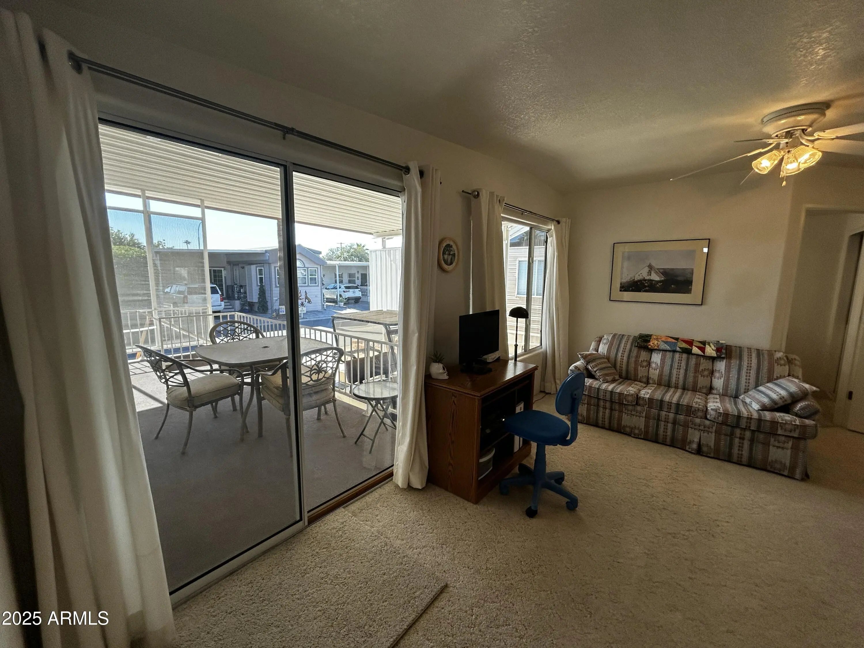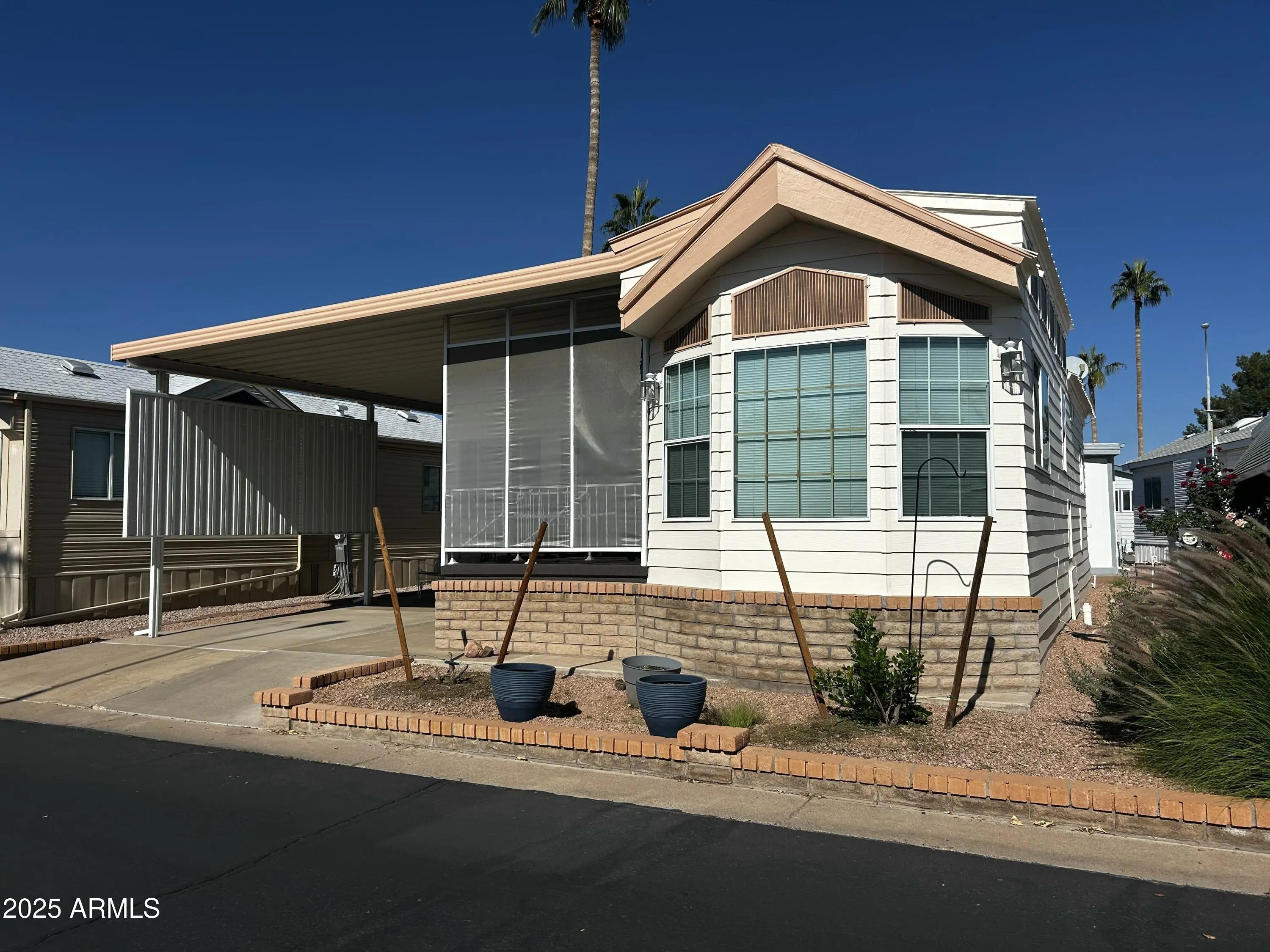 Rare 2 bedroom 2 bathroom unit with Arizona room as well! Interior also features great floorplan, ceiling fans, laundry, ample updates. Large covered patio with carport with space for a car and golf cart. Outside you will also find storage under the unit off of the carport. In back is a walk in workshop/storage closet that is attached/under the main roof. All this and you OWN the land which saves several hundred dollars each month over the competition that pays a land lease. The HOA is $268 per month which is very competitive in 55+ communities and that fee includes water, sewer, trash, common area maintenance and use of the community amenities. Enjoy your new home just steps from heated pool & spa, tennis courts, pickleball, shuffleboard, workout room, card games, crafting & arts.