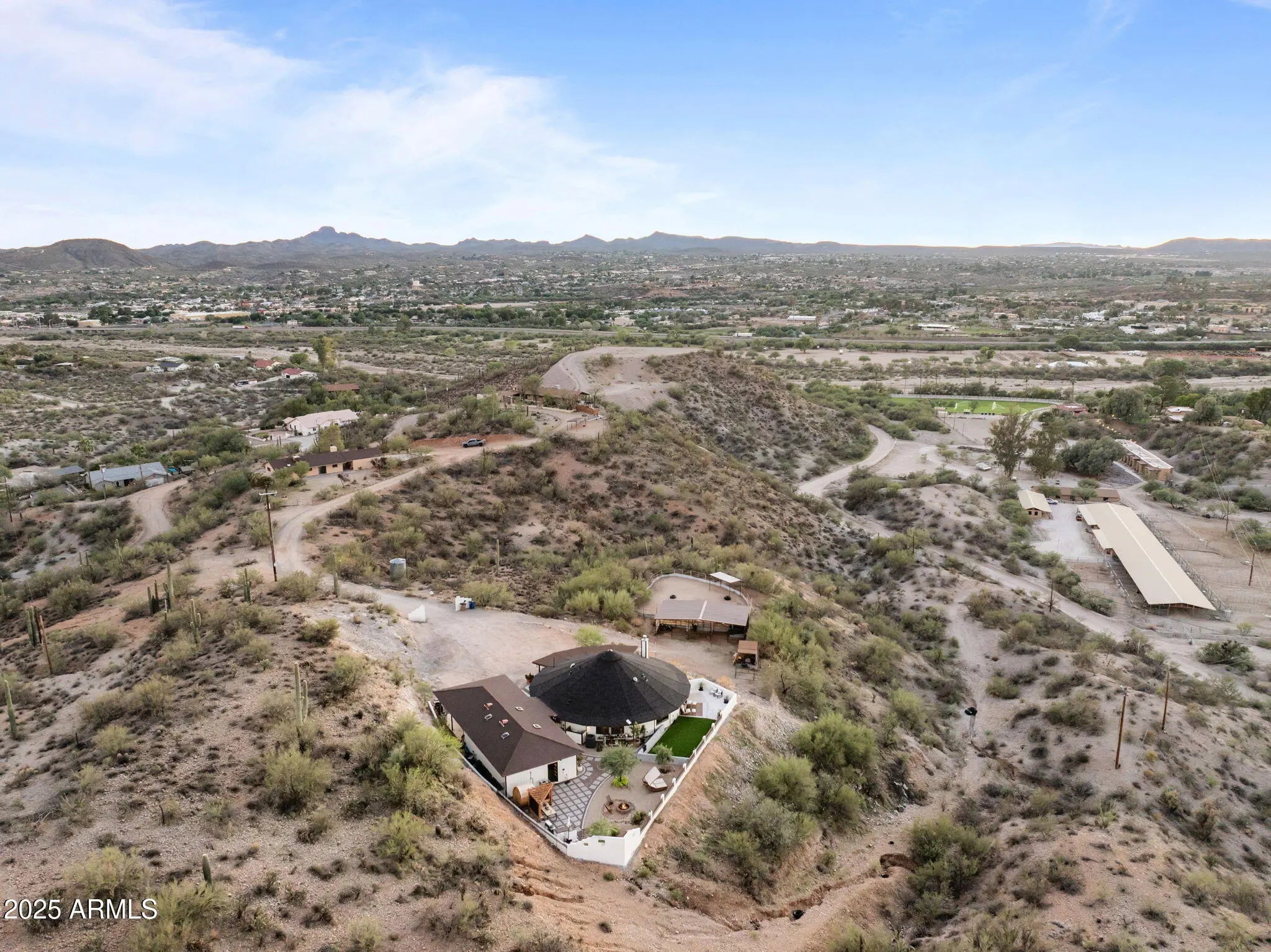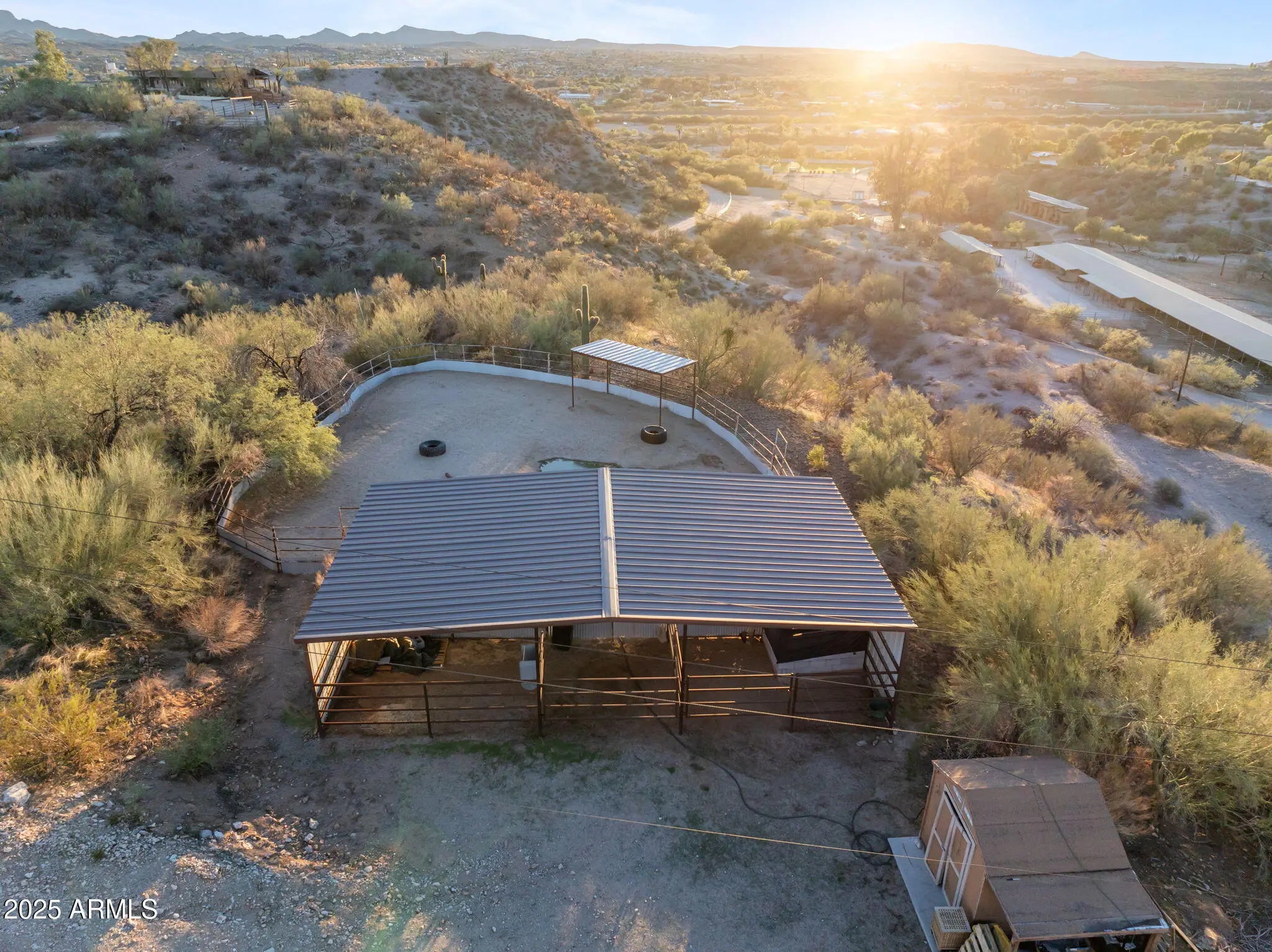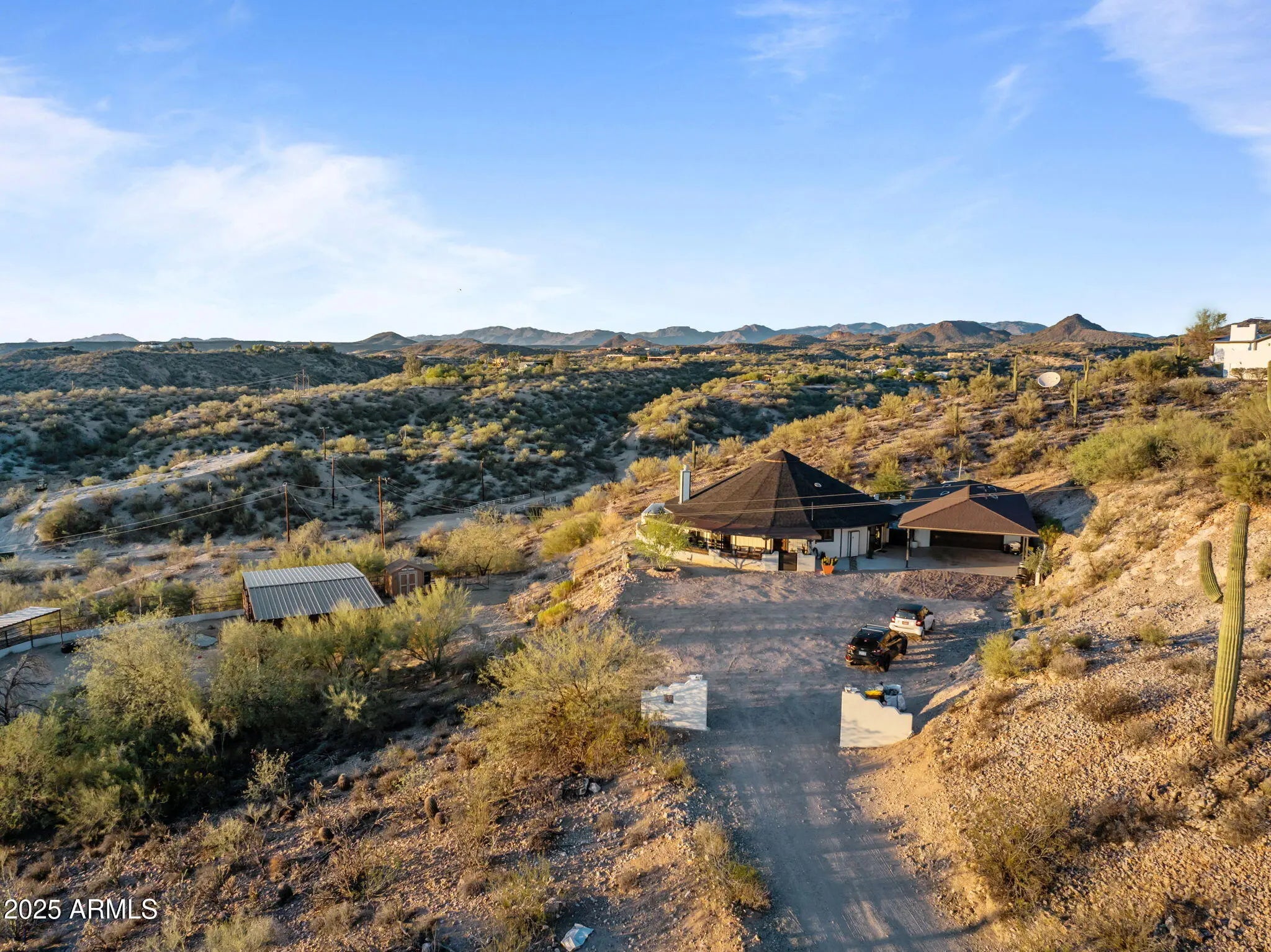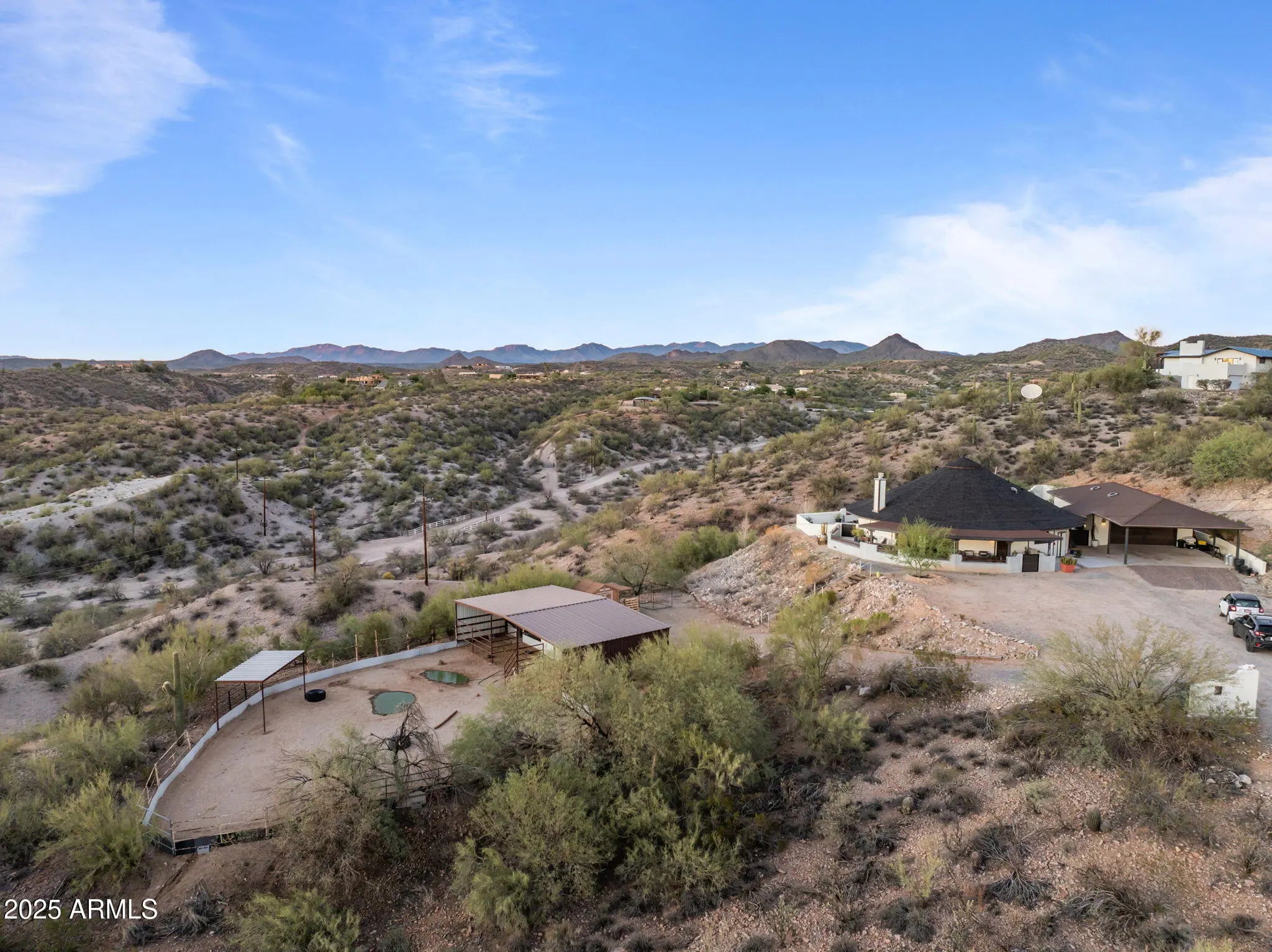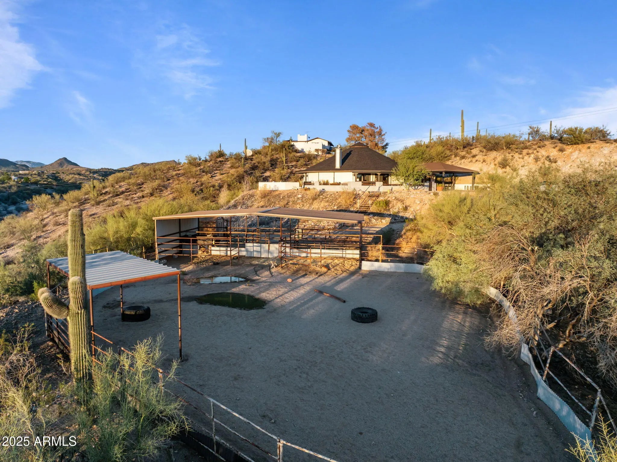 Experience the freedom of riding your horse straight off this stunning 2.1-acre property in Wickenburg, with direct access to the Hassayampa River, allowing you to ride down to Rancho Rio and its roping arena! This fully remodeled octagon-style home features modern upgrades and has undergone a thorough inspection and renovation, ensuring quality from top to bottom. A structural engineering assessment confirmed that only the outer perimeter walls are load-bearing, providing peace of mind. Enjoy the benefits of a new roof and a 5-ton HVAC system, both installed by licensed contractors and backed by warranties. The air ducts have been professionally cleaned, and the floors have been refinished with polished, sanitized, and sealed concrete. The private well has also been inspected and upgraded with a new pump box, which comes with a warranty. The home boasts all-new stainless steel appliances, including a refrigerator, range, microwave, dishwasher, water heater, washer, and dryer. The detached garage includes an additional refrigerator and freezer that will convey with the sale, along with a premium water filtration and softener system featuring UV sanitization. Inside, you'll find a complete update with new lighting, ceiling fans, recessed lights, door hardware, baseboards, and smoke/CO detectors. The original hardwood cabinets and doors have been beautifully refinished. Both bathrooms have been fully remodeledthe primary bath features slate tile and a custom poured concrete dual sink, while the guest bath showcases travertine and a granite vanity. The kitchen remodel includes granite countertops, a farmhouse sink, a rolling island, new plumbing fixtures, a garbage disposal, and a drinking water dispenser. The living room features a niche wall with built-in museum lighting and an electric fireplace. Exterior upgrades include fresh Dunn Edwards Evershield paint for both the home and garage, along with premium interior paint throughout (color information and extra paint are included). The septic system was inspected and pumped in August 2024. Step outside to enjoy a transformed backyard with new block fencing, turf, a front gated entry, and professional landscaping featuring marble and granite stonework, XL pavers, and four mature irrigated trees. The entire yard and fencing are rattlesnake-proofed, with a warranty from a licensed contractor. Relax under the pergola, which includes an outdoor counter, grill, shower/sink, and a 2-month-old sauna that transfers with the sale. Solar pathway and fence lights, potted plants, and turf cleaning service are also included. The garage/workshop comes equipped with a 100-amp subpanel, installed by a licensed contractor, along with shelving and gym flooring. The horse corral area has water access and is ready for electrical hookup. This exceptional property combines thoughtful craftsmanship, energy efficiency, and western charm, making it perfect for both year-round living or seasonal enjoyment in Wickenburg!