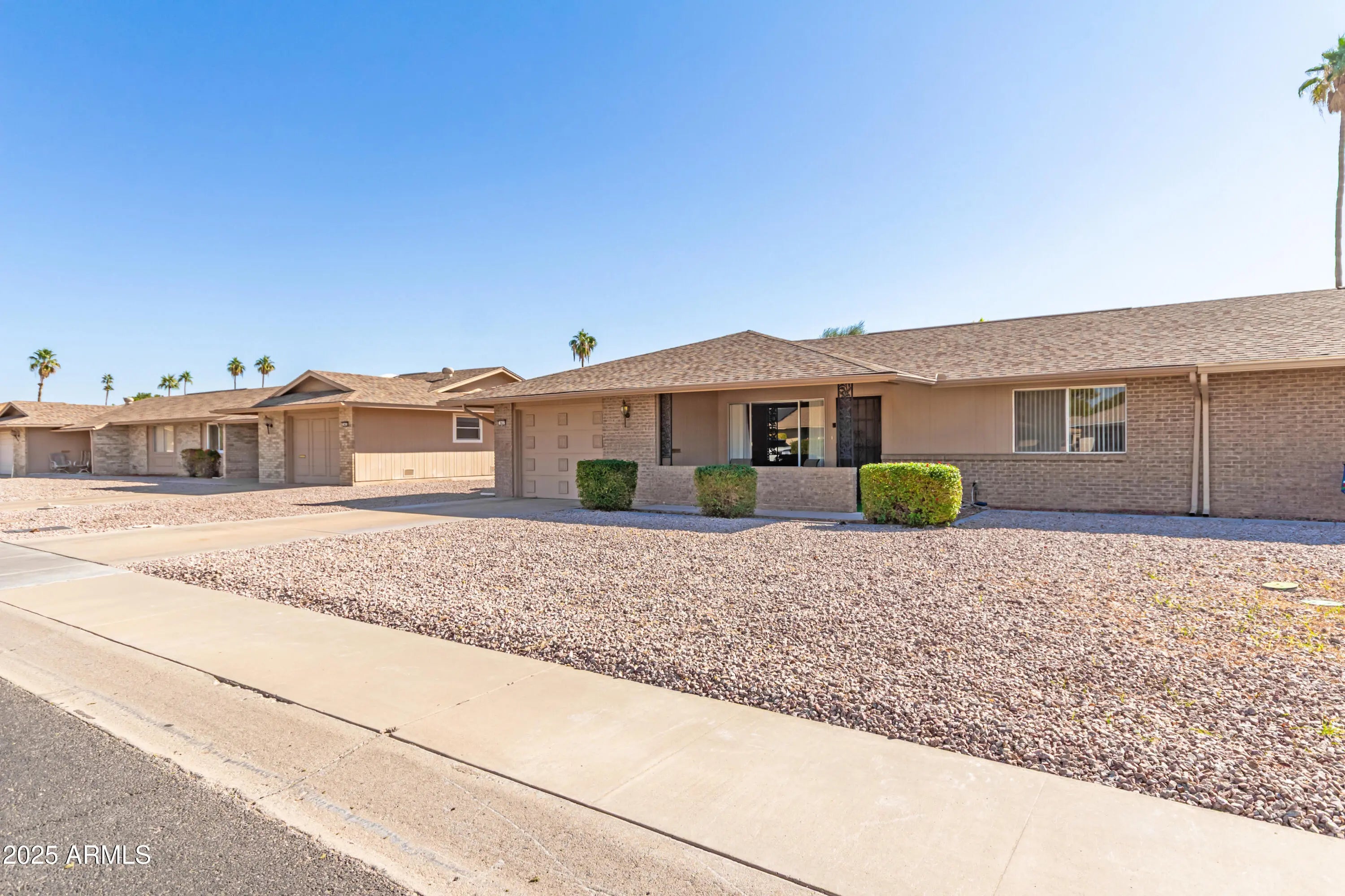 Perfect cozy end-unit home located in Sun City, just minutes from Palmbrook Country Club! This charming residence features 2 spacious bedrooms and 2 updated bathrooms. The inviting living area offers beautiful laminate wood flooring, and the large bonus room provides the perfect space for entertaining, a home office, media room, or whatever suits your lifestyle. The kitchen includes a brand-new electric cooktop, plenty of cabinet space, and a convenient pantry. The water heater and A/C have both been updated within the past 5 years. The garage features built-in cabinets and space for your golf cart—perfect for enjoying the Sun City lifestyle!