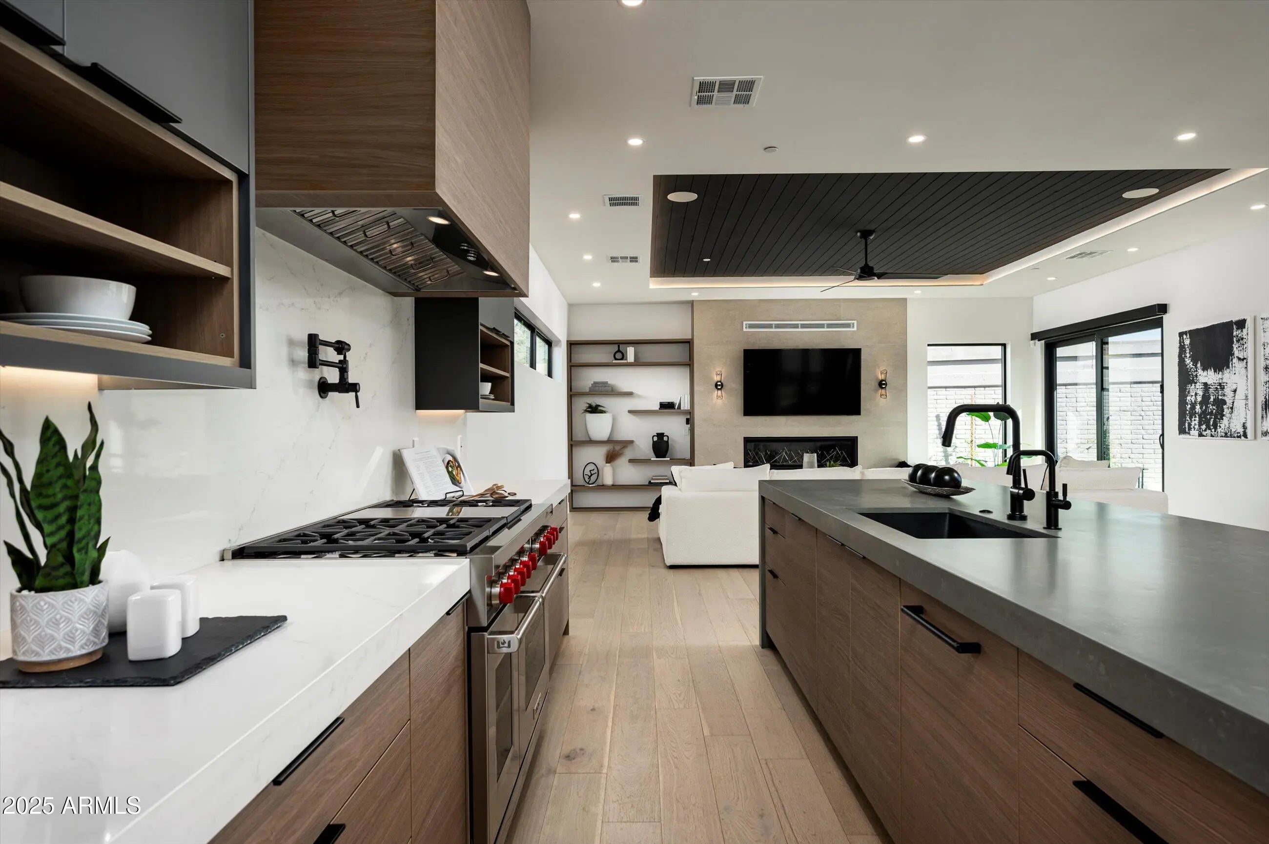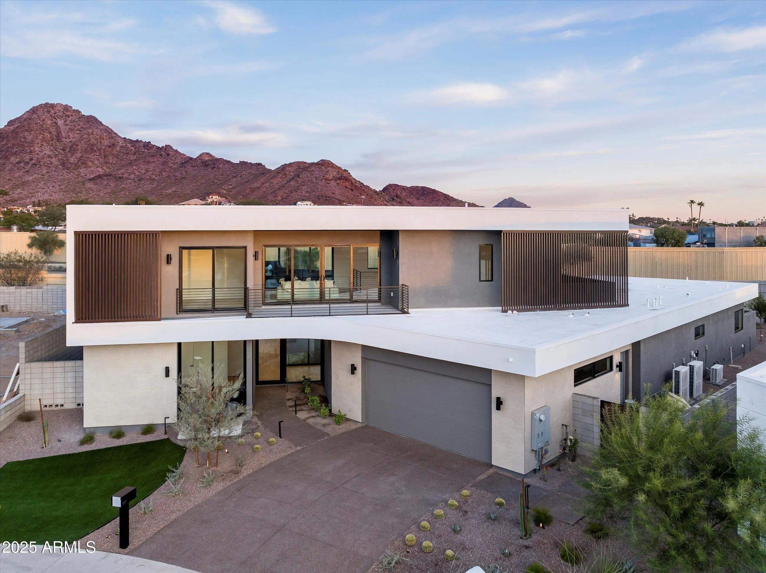 Sleek modern design by Blue Sky Homes completed in 2024. This impressive property delivers high design with low environmental impact. Encompassing 5,186 square feet, it includes 5 bedrooms and 5.5 bathrooms, all thoughtfully laid out to support health, comfort, and efficiency. Built with advanced materials and systems, it surpasses standard new builds by 50% in energy performance and holds both Energy Star and Indoor AirPlus certifications. Natural light pours through oversized windows, bringing warmth and brightness into every corner. The open-concept kitchen connects to the dining and living areas, anchored by a sleek 60-inch gas fireplace. Culinary enthusiasts will appreciate the kitchen's appliance package featuring Sub-Zero, Wolf, and Cove appliances; creating a luxurious and functional cooking experience. The standout primary suite has exclusive access to a private courtyard and outdoor shower, and is beautifully enhanced by a magnificent freestanding bathtub, and separate vanities. All the bedrooms are equipped with ensuite bathrooms for added privacy and convenience. A dedicated office or den provides a perfect space for work or study, while a flex teen space with a dry bar offers a versatile area for relaxation or entertainment. Stroll out to the large terrace for an evening sip, or meander down the spiral staircase to the inviting pool for a twilight swim.Nestled in the heart of Phoenix this home is surrounded by 360-degree city lights and mountain views. Located just moments from world-class dining, shopping, hiking and biking trails, and Sky Harbor Airport, it epitomizes modern luxury.