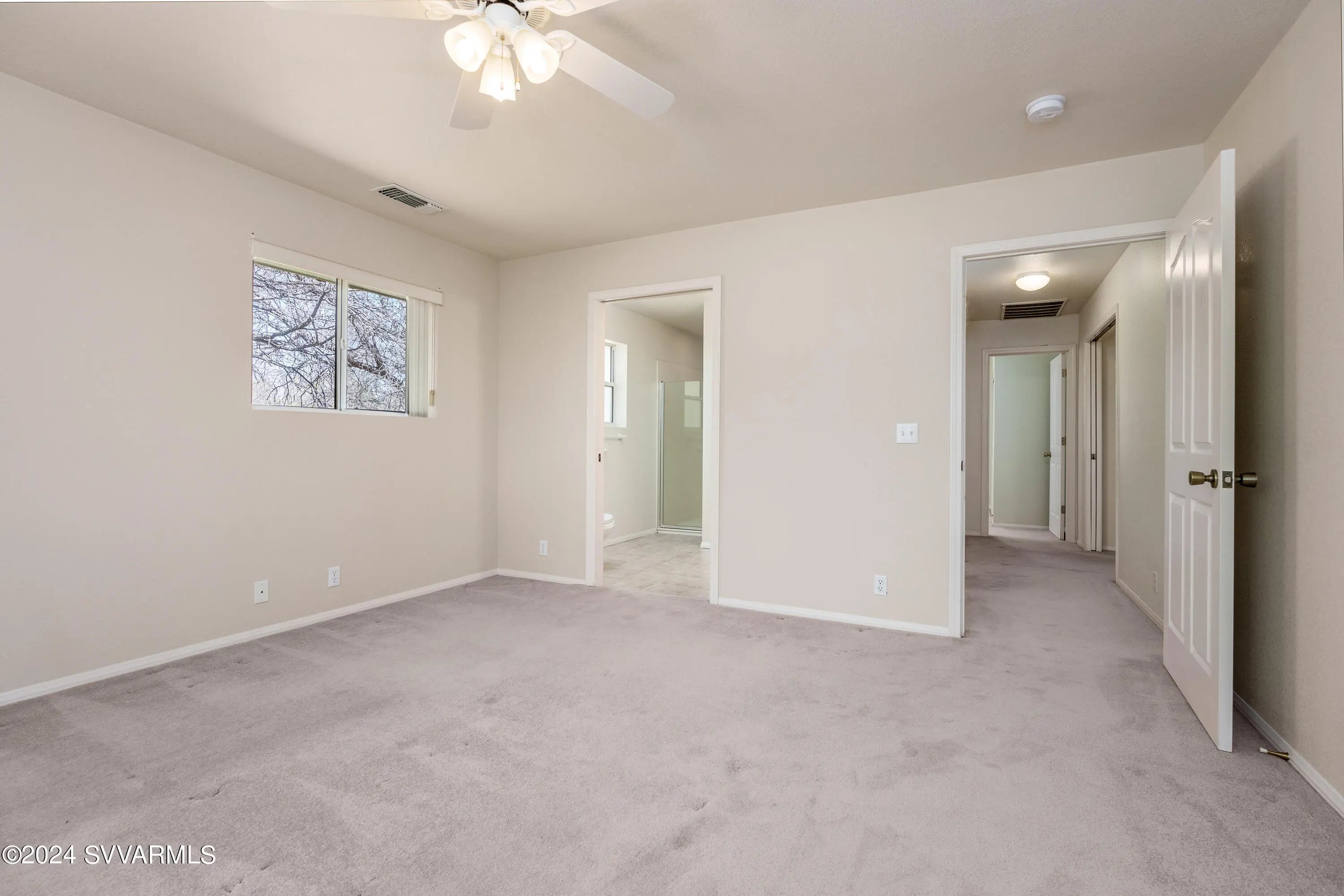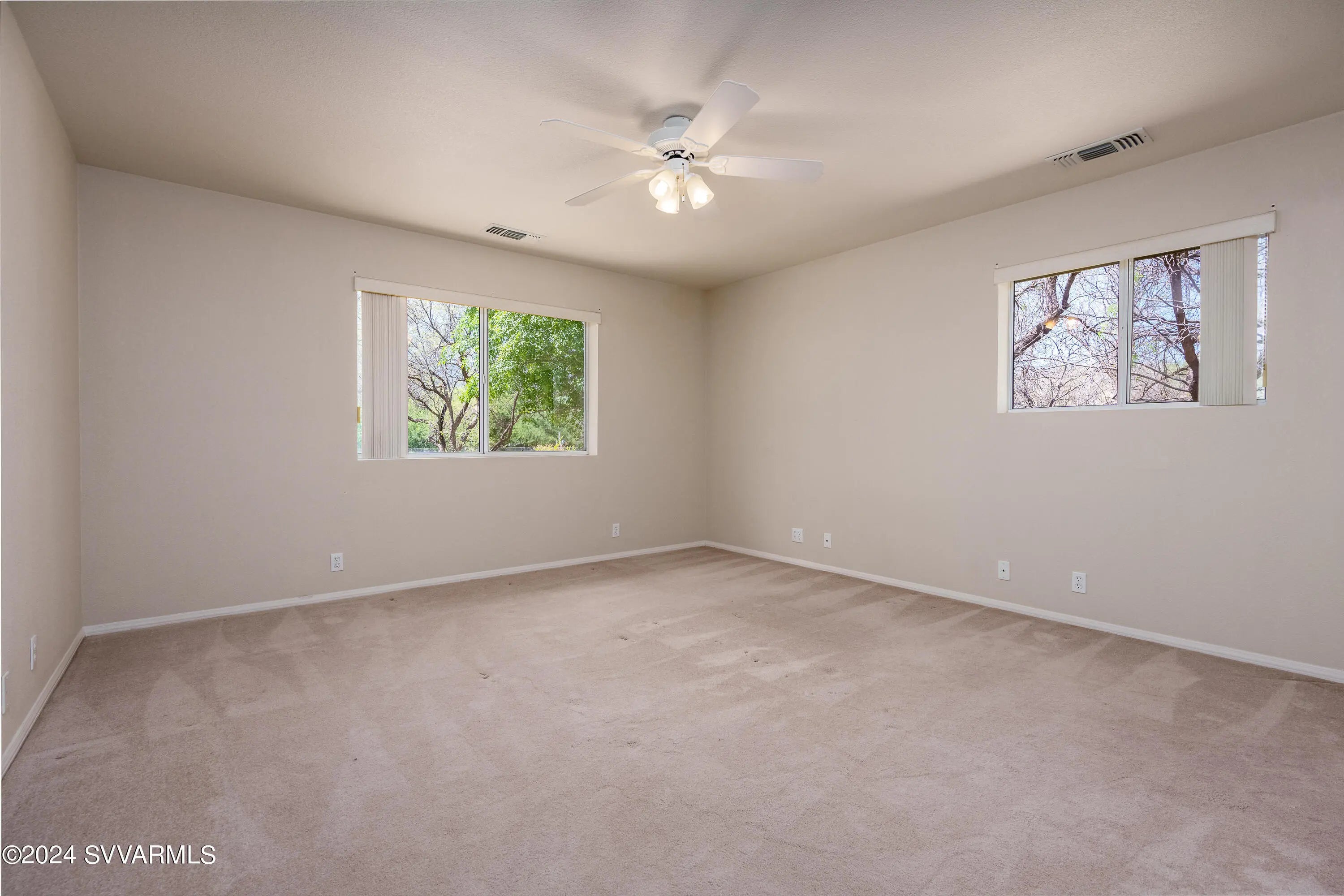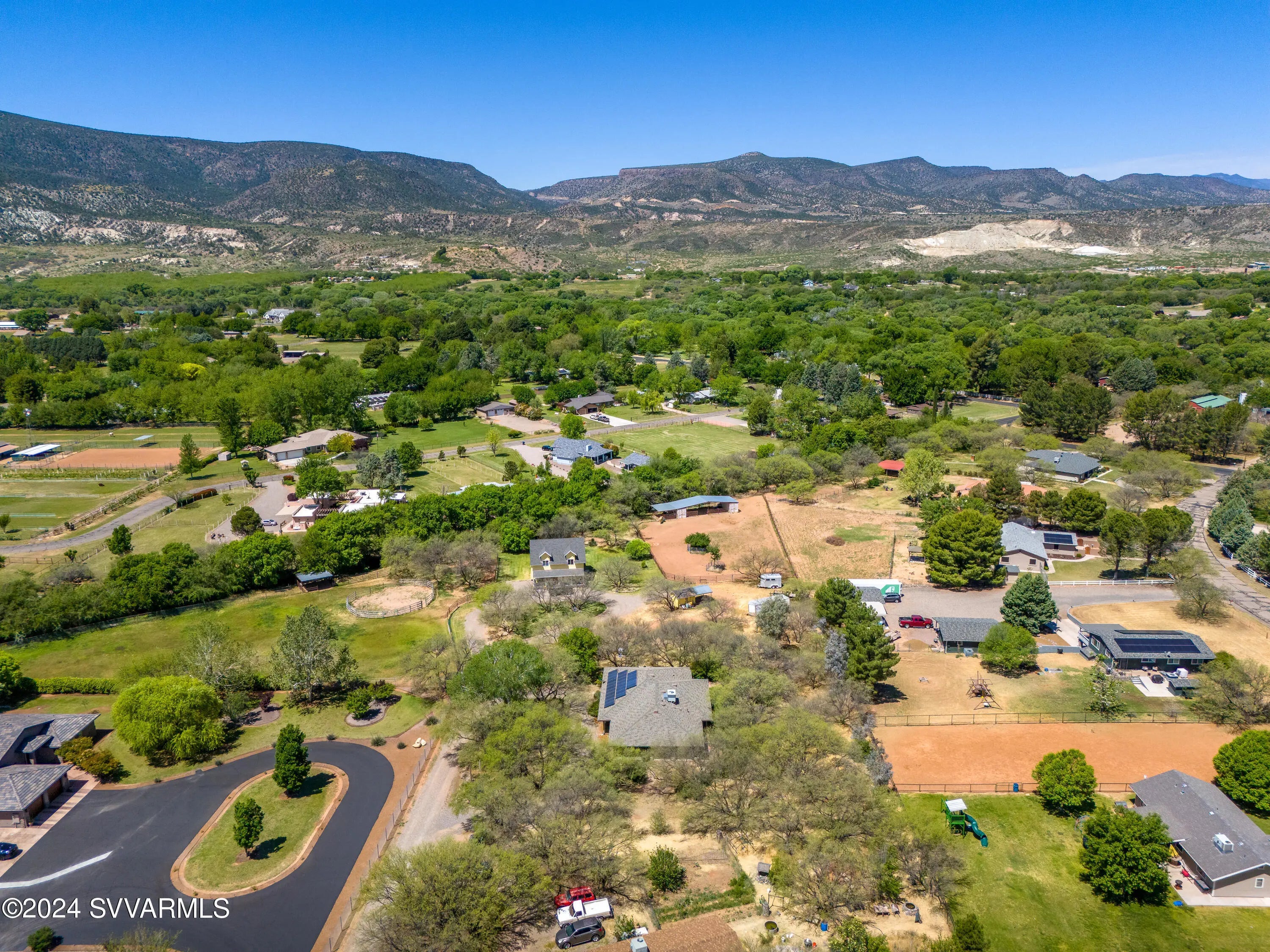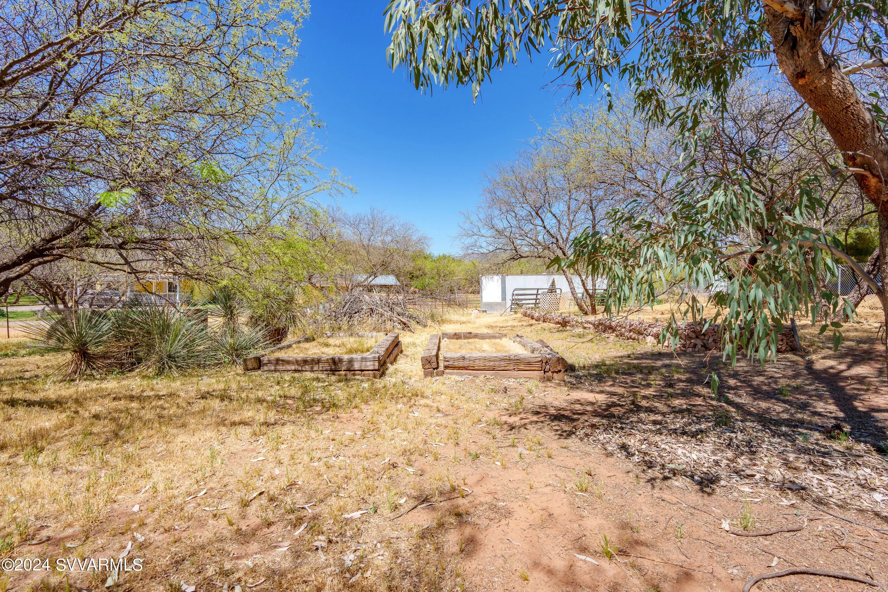 This lovely home is located in a desirable area of Camp Verde. The home is surrounded by mature mesquite trees, and interesting landscape which includes flagstone walkways and patios, and a screened-in porch adjoining an aromatic rose garden. A master gardener would have a field day with this lot! The floorplan is split with a potential for two master suites with a Jack and Jill bathroom arrangement for a secondary bedroom. The large kitchen has not one, but two pantries. The massive utility room has lots of cabinets. French doors from the dining room open to a nice covered patio. The great room has cathedral ceilings. The oversized garage contains a sink, and the home has solar panels to reduce your electric bills. Come put your personal touches on this wonderful home.