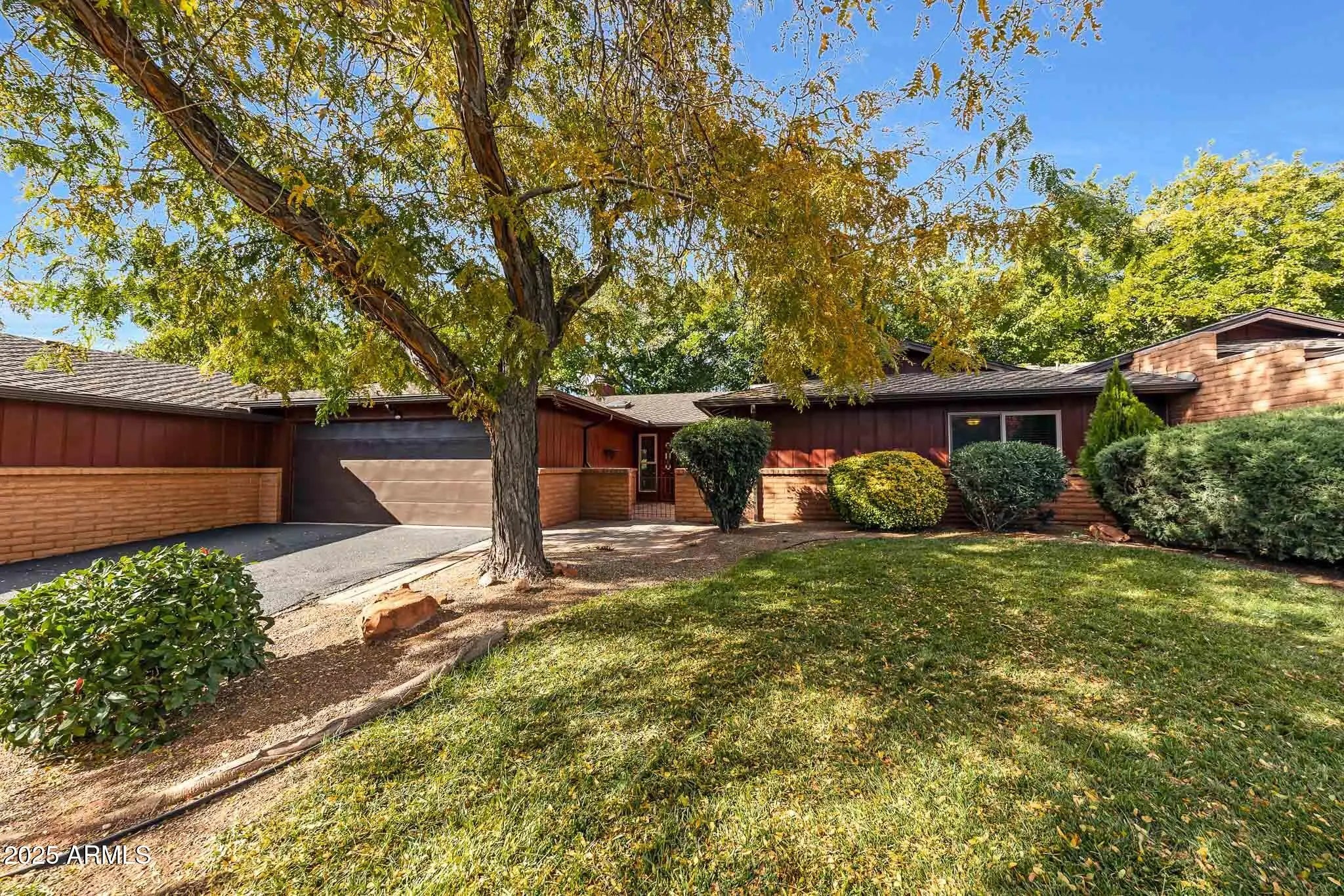 Nestled in the peaceful Village of Oak Creek, 55 Cathedral Rock Drive #19 offers single-level living in a spacious 1,658 square foot townhome built in 1986. This two-bedroom, two-bath residence includes a den, Arizona Room, inside laundry, and two-car garage, all surrounded by grass, mature landscaping and red rock views. New windows and doors installed in 2019 keep the home bright and efficient.The front entry opens behind a wrought-iron gate onto a private patio, then leads through stained-glass accents into an open great room with tongue-and-groove cathedral ceilings and a two-sided brick wood-burning fireplace that warms both living and dining areas. Walls of glass frame the backyard's grassy knoll and tall and tall trees, filling the space with natural light. The upgraded kitchen features granite counters and modern appliances. A skylit den with double doors works well as an office or quiet retreat, while the enclosed Arizona Room provides year-round flexibility for relaxation or hobbies. The primary suite includes dual vanities, a walk-in shower, and a private water closet. The second bedroom and full bath accommodate guests comfortably. Practical touches include an inside laundry room and direct access to the two-car garage. Outside, lush grass covers both front and back yards, creating a park-like setting with no rear neighbors. The backyard rises gently to a landscaped knoll shaded by mature trees. Sundance Townhomes delivers resort-style convenience with a heated community pool, and spa. Located adjacent to the townhomes property are tennis and pickleball courts, Oak Creek Country Club's 18-hole golf course with lakes and walking paths. Hiking and biking trails at Bell Rock and Cathedral Rock are minutes away. Daily needs are close: Clark's Market, restaurants, and coffee shops in three minutes, Sedona Golf Resort and Canyon Mesa in five, and Uptown Sedona in fifteen. The HOA handles roof and exterior maintenance, landscaping, driveway care, septic, trash, roads, pool, and spa. Dues run $1,600 quarterly for Sundance Townhomes and $330 annually for the Village Association. Whether used full-time or as a Sedona getaway, this townhome combines low-maintenance ownership with access to the area's best outdoor recreation and amenities. The listing agent is available by phone to answer your questions. NOTE: This MLS does not send the videos you can see on this listing to outside syndicators. Median prices per square foot for these properties hover at $416-$454, influenced by a mix of updated units and vacation rentals, with forecasts predicting modest 2-3% growth in 2025 due to steady demand from retirees and second-home buyers. Overall, 55 Cathedral Rock Dr #19 stands out for its spacious, turnkey single-level design and comprehensive HOA at a competitive price point, making it a stronger primary residence option than smaller, pricier comps in a market favoring value-driven buyers.