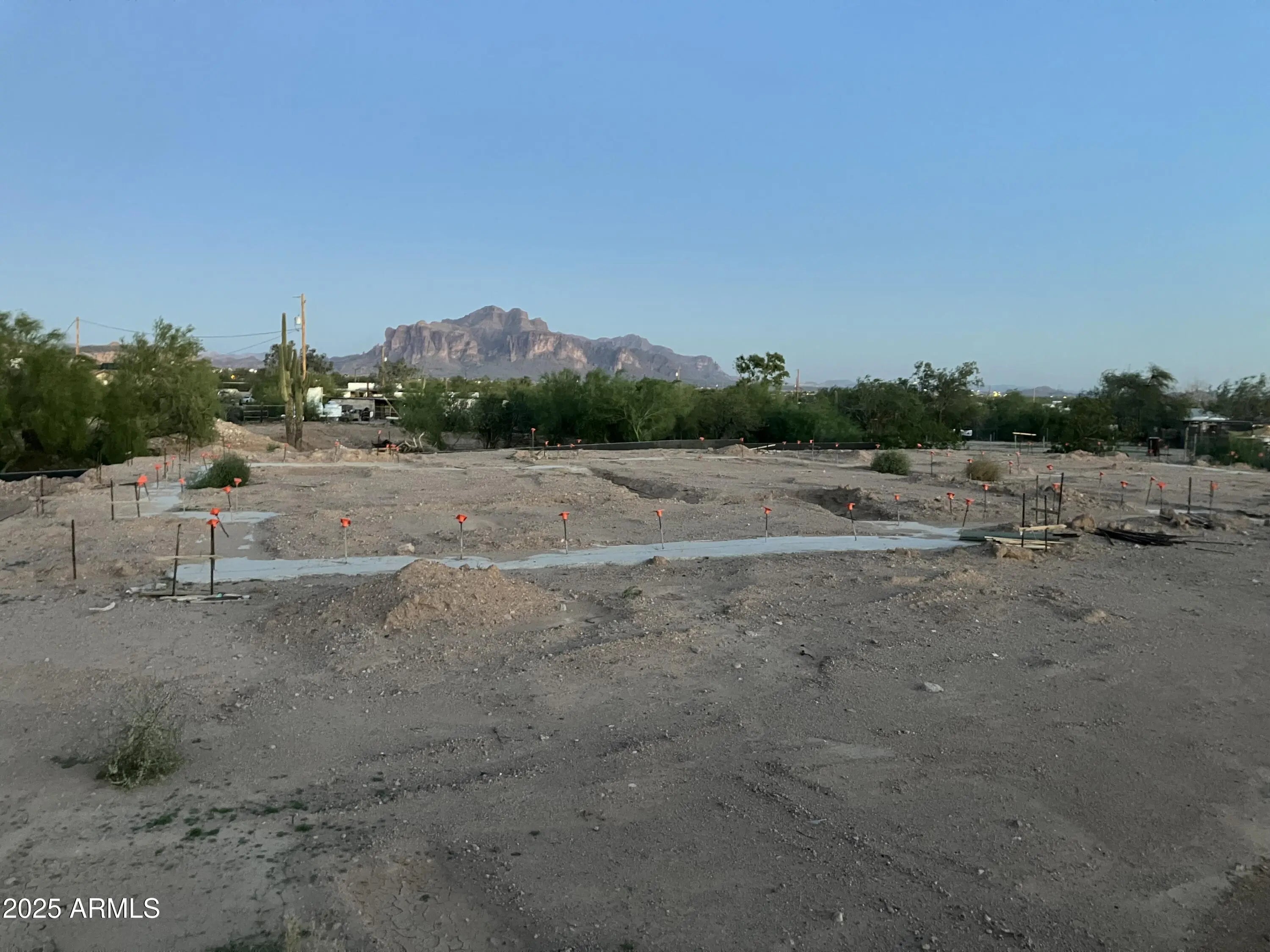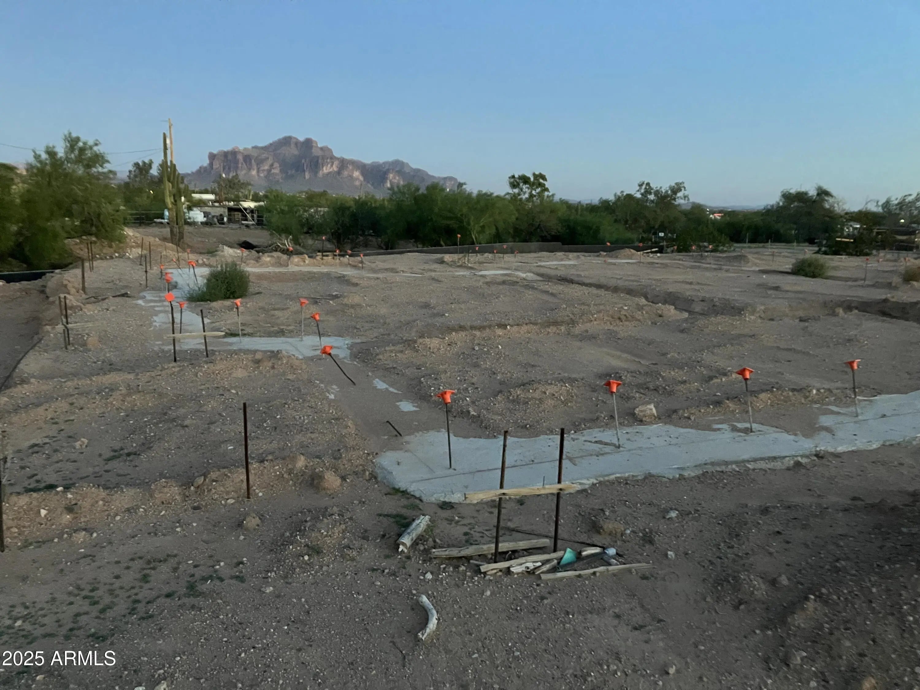 NEW RESIDENTIAL BUILDERS DELIGHT! ALL THE HARD WORK OF PERMITTING DONE. THIS 4 BEDROOM 3 BATH 3 CAR GARAGE HORSE PROPERTY. INCLUDES ENGINEERED PLANS, UTILITIES AT PROPERTY, PRIVATE WELL, APPROVED 400 AMP ELECTRICAL, APPROVED SEPTIC PLANS. THE HOME FOOTINGS AND RETAINING WALLS HAVE BEEN STARTED FOR YOU. READY FOR YOUR QUICK BUILD AND FINAL TOUCHES ON THIS AMAZING PROPERTY WITH A SEASONAL WASH RUNNING THROUGH IT! SENSATIONAL VIEWS OF THE GOLDFIELDS AND THE SUPERSTITIONS FROM THIS PROPERTY. DON'T MISS YOUR CHANCE TO OWN THIS UNIQUE PROPERTY. NOW ITS TIME FOR YOU TO MAKE THIS DREAM HOME YOURS! PRIMARY BEDROOM BOASTS SPA LIKE ONSUITE, SPLIT GUEST ROOM OR HOME OFFICE, GRAND KITCHEN WITH PICTURESQUE MOUNTAIN VIEWS! ROOM FOR SECONDARY WORKSHOP OR SEPERATE BUILDING IN THE BACK. READY TO BUILD!