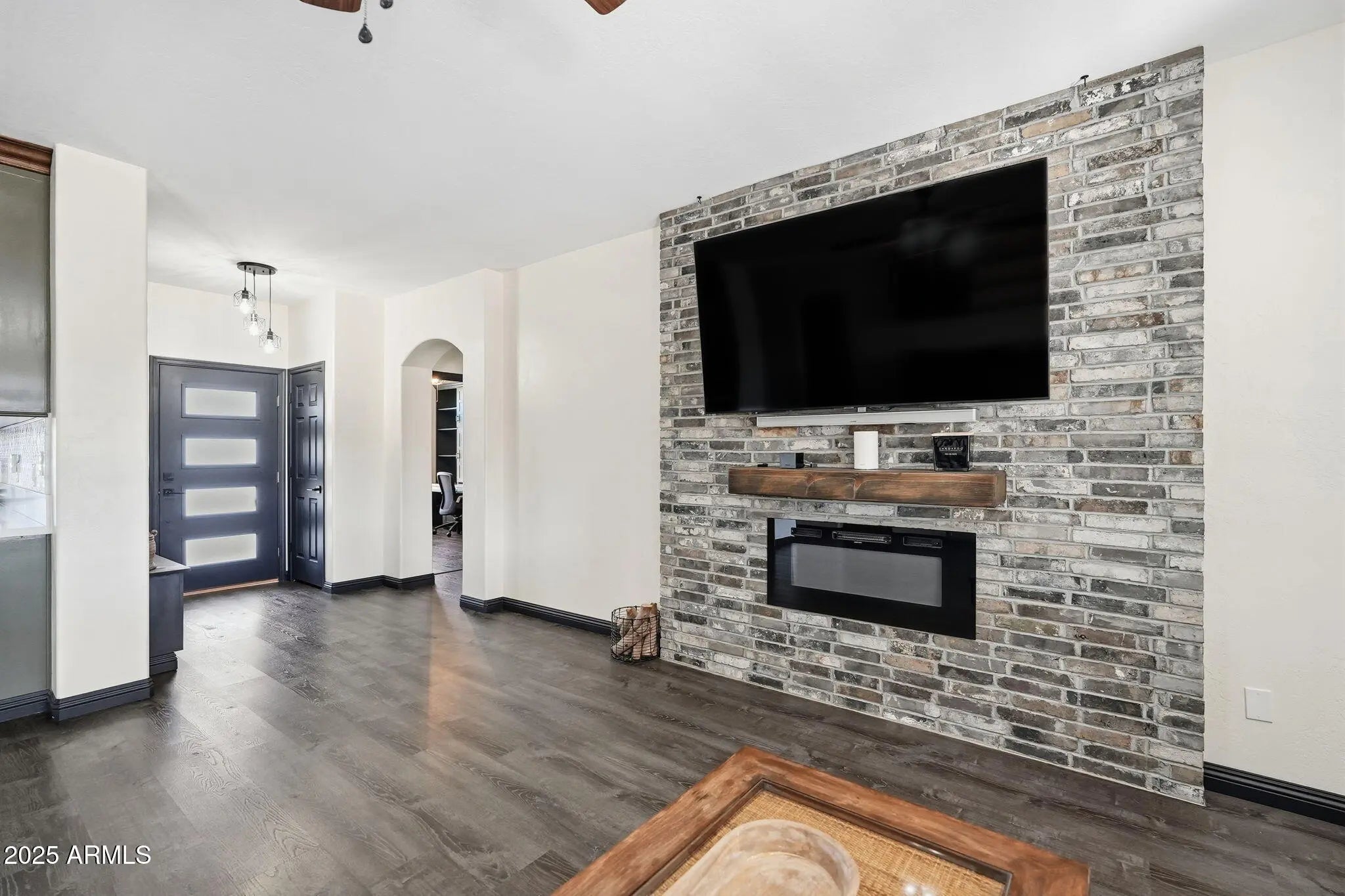 Experience modern desert living in this beautifully upgraded designer retreat, perfectly set on a fenced 1-acre horse property with stunning mountain views and no HOA restrictions. Step inside to discover a light-filled open floor plan featuring a fully remodeled kitchen and baths, a custom brick fireplace wall in the great room, and a decorative wood entry wall with built-in seating and storage. The home also boasts new LVP flooring and baseboards, a new roof, fresh interior and exterior paint, a new HVAC system, and R-49 attic insulation with sealed ducts for exceptional year-round comfort.The master suite offers a tranquil retreat with a bay window, upgraded closet storage, and a spa-like bath complete with a soaking tub and a glass-enclosed shower. The second bedroom includesbuilt-in Murphy bed and desk, ideal for guests or a home office. A 256 sq. ft. casita with a private entrance and mini-split system provides the perfect space for guests, a home office, or a 4th bedroom. Outdoors, enjoy professionally designed desert landscaping, synthetic grass, a pergola, and a circular driveway. Additional highlights include an RV gate, ample parking, storage sheds, and garage storage racks. This move-in ready gem blends modern style, functionality, and desert serenity all just minutes from I-10 and Loop 303.