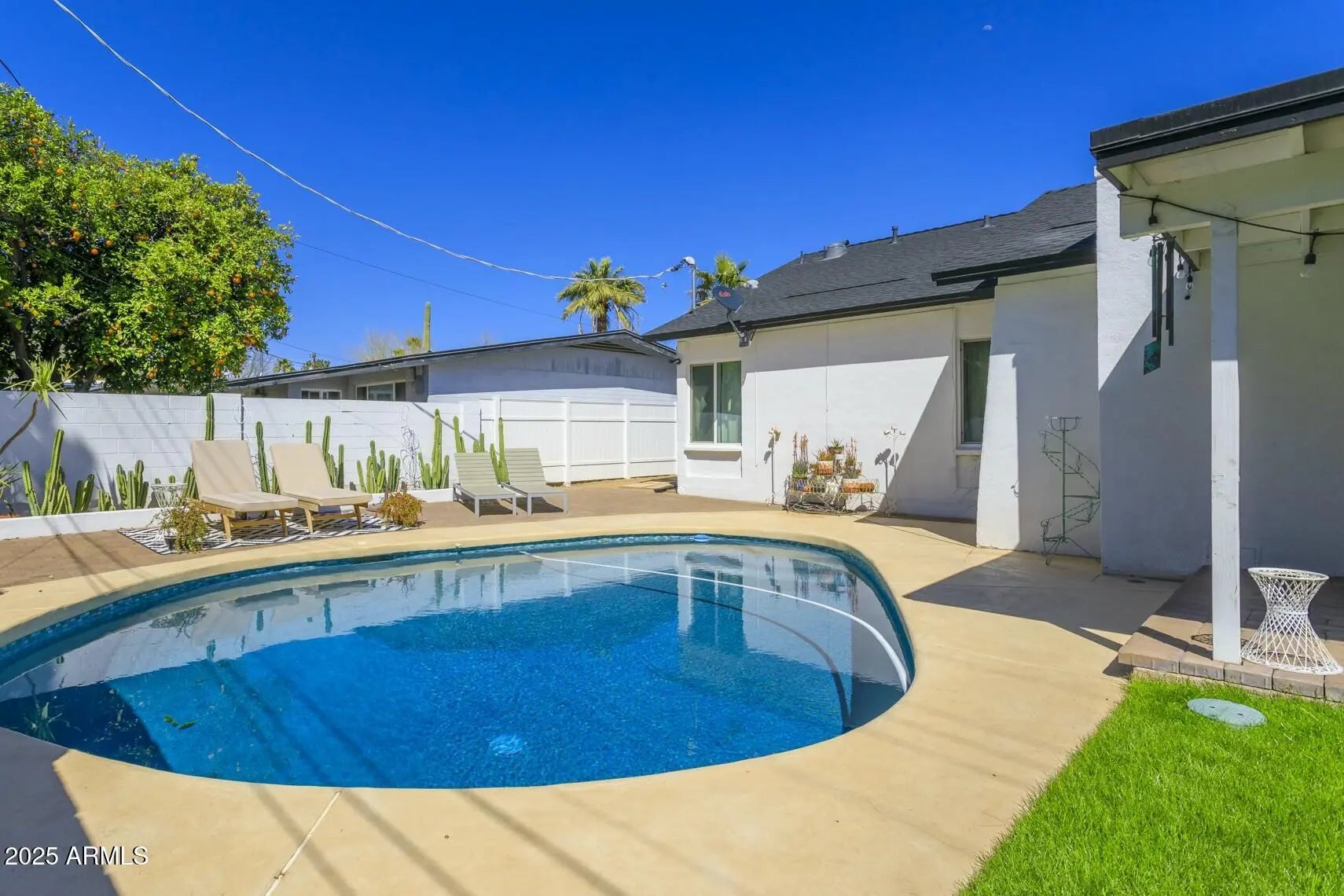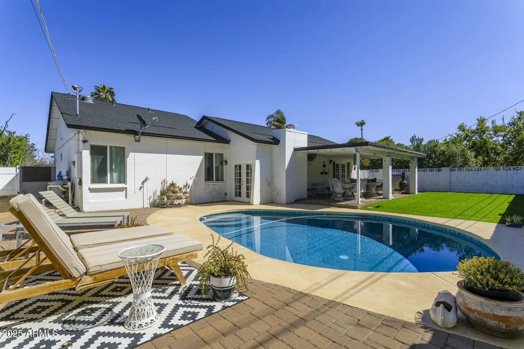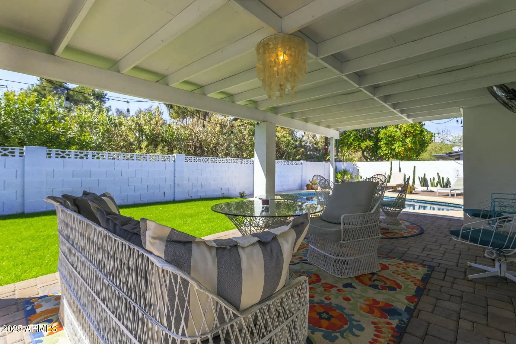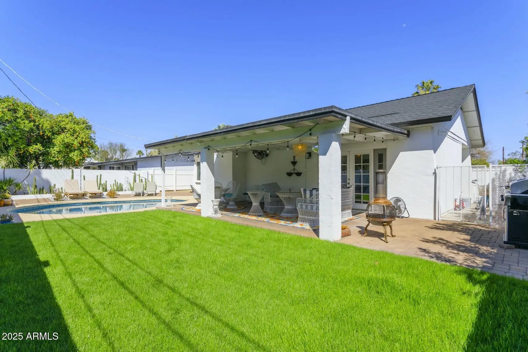 AVAILABLE NOW! This beautifully FURNISHED RENTAL home is move-in ready and offers the perfect mix of comfort and luxury. The kitchen features stainless steel appliances and an eat-up bar. The home also offers an open-concept design, creating a seamless flow between living spaces, while high-end finishes throughout add a touch of luxury. Step outside to enjoy an expansive covered patio and a private pool, surrounded by lush green grass, creating an inviting atmosphere ideal for both relaxation and entertaining. Additional highlights include a two-car carport and landscaping and pool maintenance that are included in the rent. Situated next to the Arizona Country Club, you'll have easy access to premier shopping, dining, entertainment and more!