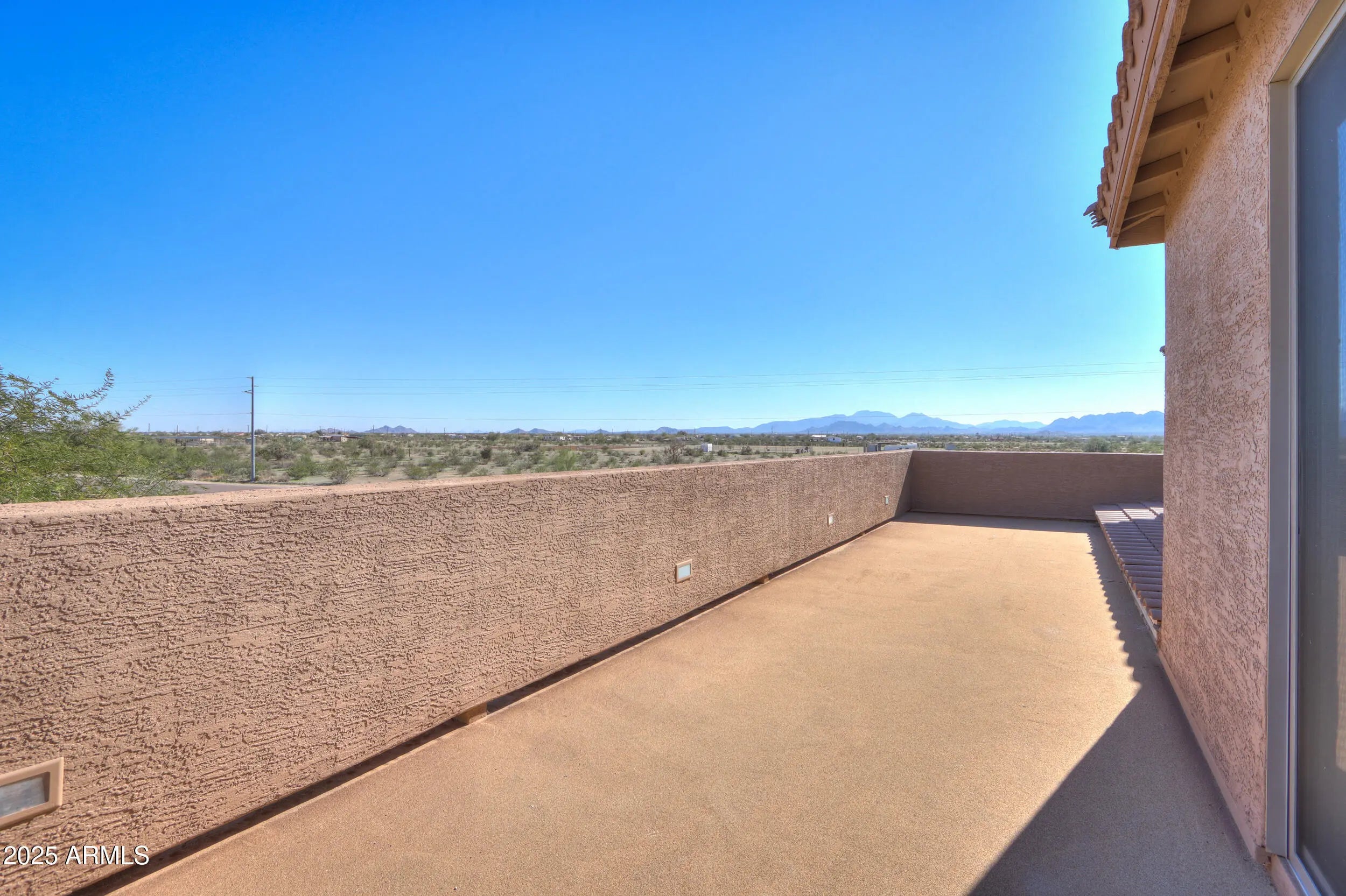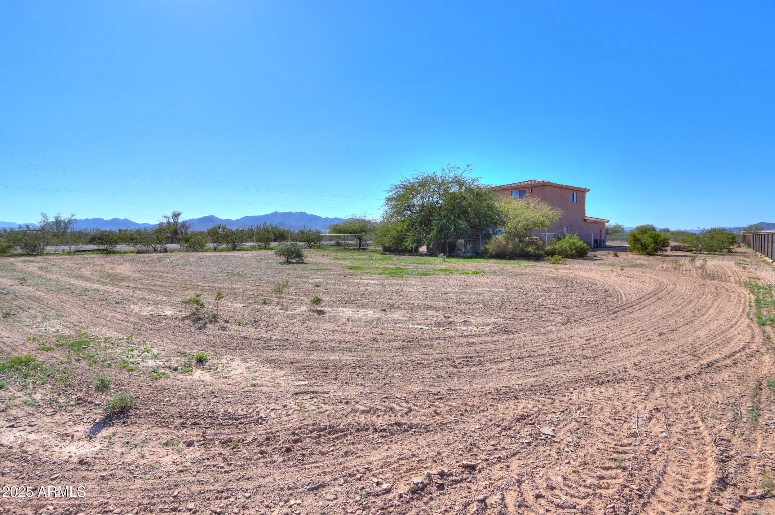 AMAZING COUNTRY LIVING WITH BREATHTAKING VIEWS! NO HOA! Escape the city & enjoy peaceful living just 20 minutes from Maricopa. This stunning 4-bedroom, 3-bath home sits on 1.25 acres and fully fenced with gorgeous mountain views. Shows like new with fresh interior & exterior paint, travertine tile floors, upgraded LED lighting, and newer kitchen appliances. Spacious layout featuring a downstairs bedroom, upstairs den/bonus room, interior atrium patio, & covered back patio for entertaining. Private balcony w/ panoramic views. How about a 3-car tandem garage, 4-car parking pad, storage shed, chicken coop, dog run, fenced areas for horses or other animals? Shared well, new water heater, and three A/C units keep you comfortable year-round. The list goes on! Check this one out!