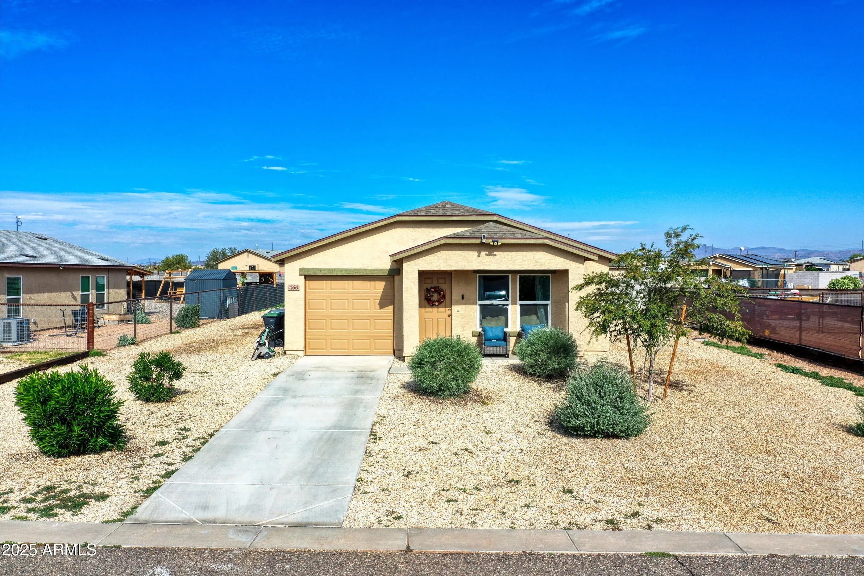 Welcome to this charming 3bedroom, 2baths home sitting on a spacious 7,475 sq ft lot with NO HOA. Built for comfort and easy living, this home offers an inviting open-concept floor plan featuring a bright great room perfect for relaxing or entertaining. The modern kitchen includes granite countertops, quality cabinetry, and stainless-steel appliances, giving the home a clean and contemporary feel. Washer and dryer are also included, making the home fully move-in ready. Step outside and enjoy the beautiful desert sunsets right from your property. The entire lot has been upgraded with full gravel landscaping, making it extremely low-maintenance and ideal for those wanting a clean, finished outdoor space without the upkeep. For added convenience, the property also includes a 50amp RV hookup.
