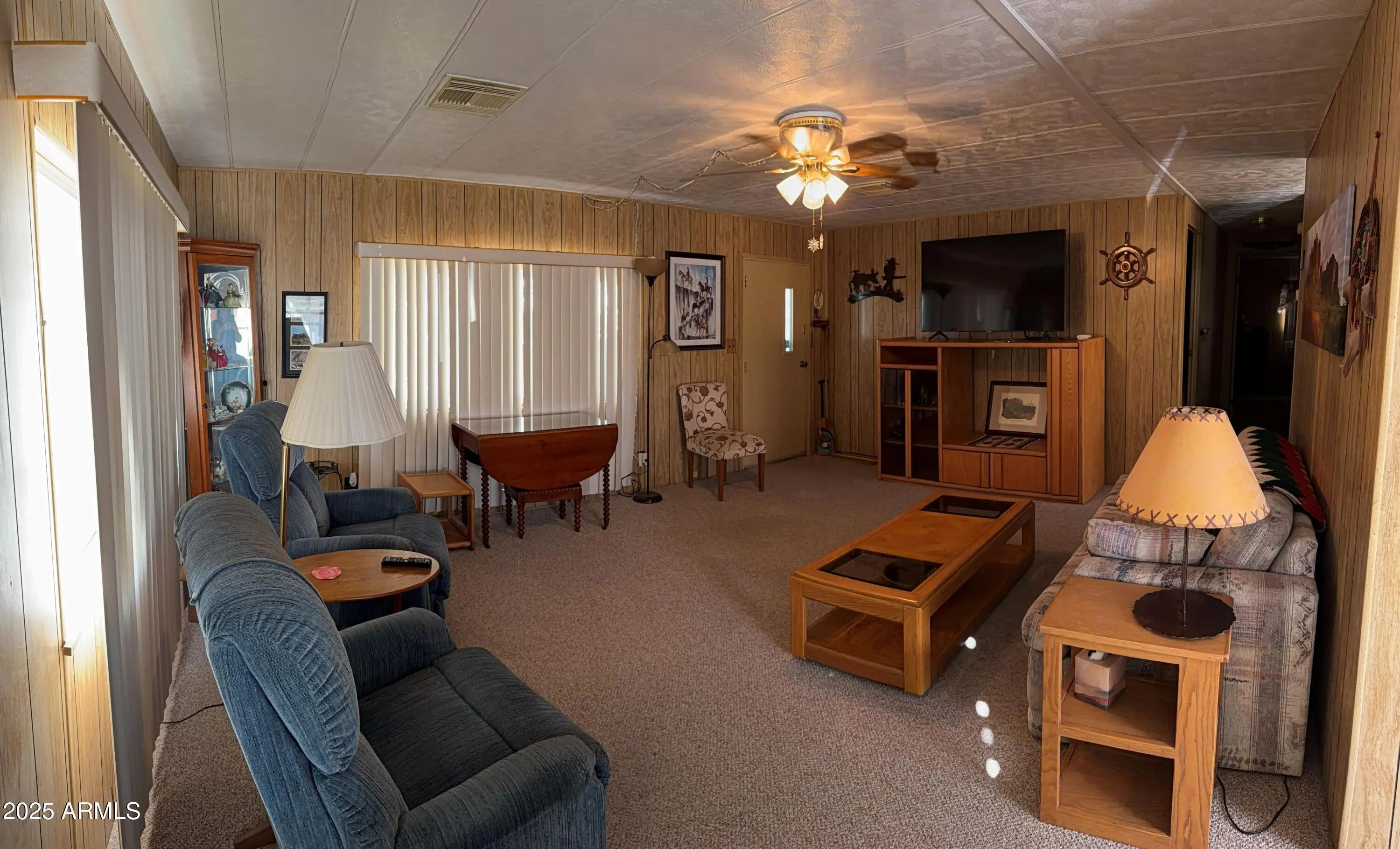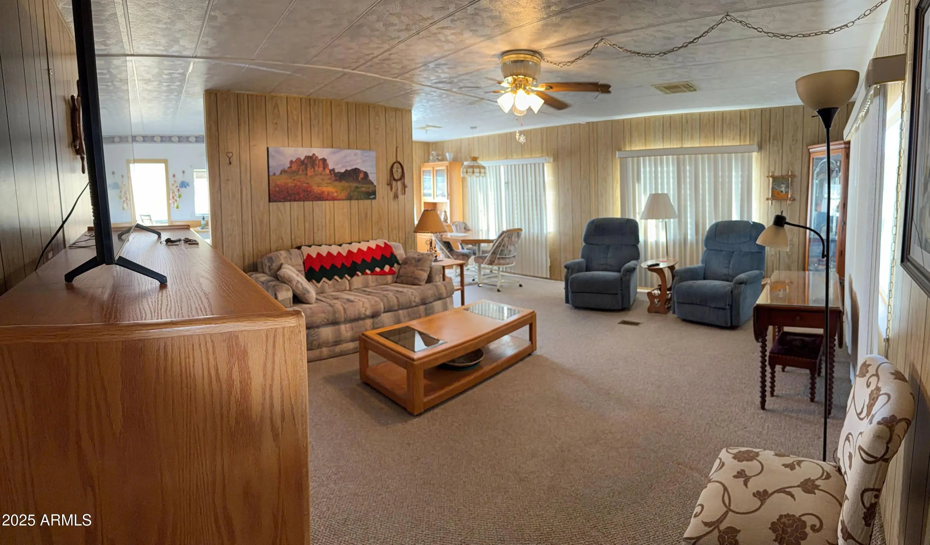 Enjoy peaceful desert living with stunning views of the Superstition Mountains right from your large screened-in porch. This beautifully maintained doublewide manufactured home offers the perfect blend of comfort, convenience and affordability. Some highlights of this property are: 2 spacious bedrooms and 2 full bathrooms. Fully furnished and move in ready. Big screened in porch that face Superstition Mountains with full size washer and dryer right there. 2 car carport that provides shade and protection for your vehicles. 3 storage sheds for all your tools or decorations. Situated on a quiet lot with low lot rent for affordable and stress-free living. Whether you are looking for a full-time residence or cozy winter retreat, this home checks all the boxes.