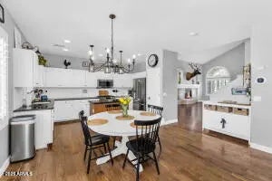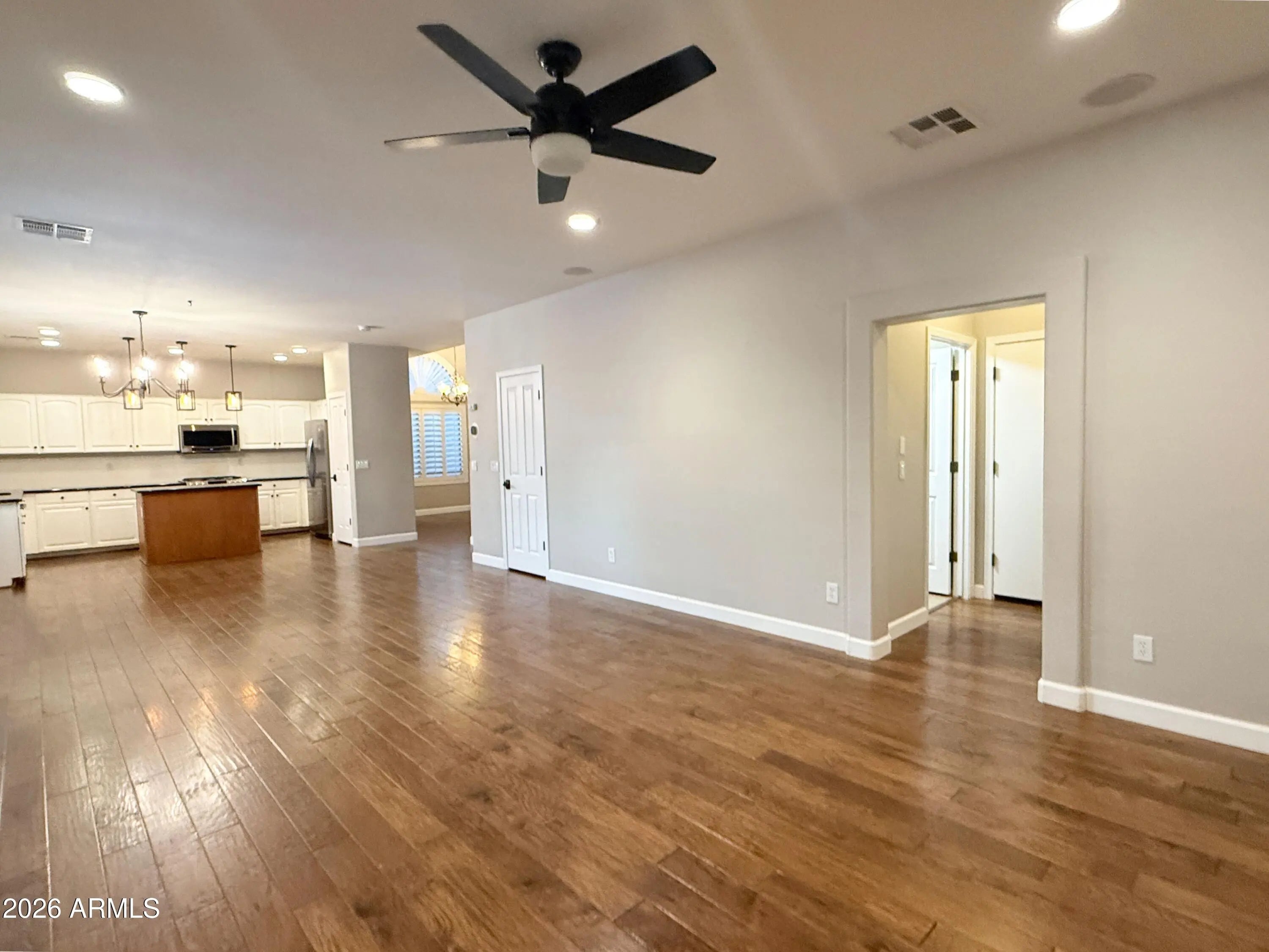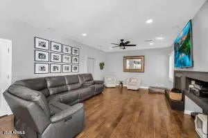 No Application Fees. Spacious 4 bedroom plus den, 2.5 bathroom East Mesa home located in Gila River Ranches. This exceptional home features scraped wood flooring throughout all living areas with carpeting only in the bedrooms, plantation shutters, vaulted ceilings, two tone neutral paint, upgraded fixtures and ceiling fans in each room. Multiple living spaces include a large front living room with fireplace, separate family room, formal dining area, downstairs den and an oversized loft upstairs. The beautifully updated kitchen includes granite countertops, tile backsplash, upgraded cabinets, island with breakfast bar, separate pantry, gas range and all appliances. All bedrooms are located on the second floor including the oversized primary suite with a large walk-in closet, double sink vanity, garden tub and separate step-in shower. The laundry room includes cabinet storage and washing machine and dryer. Enjoy the entertainer's backyard with a sparkling pool and water feature, large covered patio, extended cool decking and easy to maintain landscaping. Two car garage provides excellent parking and storage. Gila River Ranches is conveniently located near shopping, dining and retail along Signal Butte Road and near the Mesa-Gilbert border for additional amenities. Easy access to the Loop 202, US-60, Bell Bank Park, Mesa Gateway Airport and local parks and recreation areas. All Denali Real Estate residents are automatically enrolled in the Resident Benefits Package (RBP) for $55.00/month which includes Renter's Liability Insurance, Credit Building to help boost the resident's credit scores with timely rent payments, up to $1M Identity Theft Protection, HVAC air filter delivery (for applicable properties), our best-in-class resident rewards program, and much more!