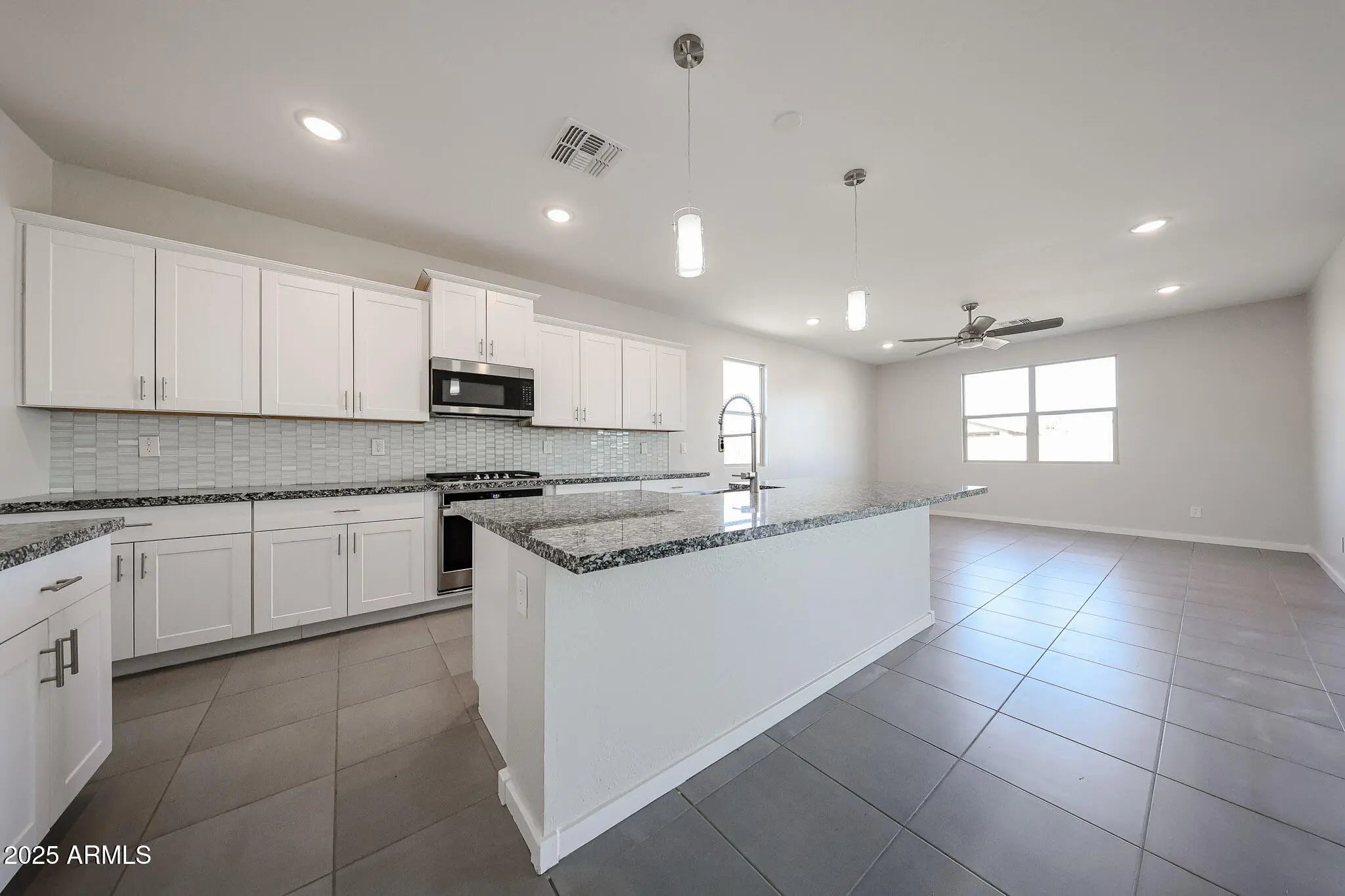 Don't miss this immaculate 5 bedroom home in Homestead North! Recently constructed in 2021, this 5 bed/3 bath home features both a split and open floor plan, ample natural light, high ceilings, neutral colors, and tasteful touches throughout. The chef's kitchen boasts striking solid-surface countertops, exquisite cabinetry, stainless steel appliances, both recessed and pendant lighting, a huge walk-in pantry, and a large island with breakfast seating. The master suite includes a vast walk-in closet and a bathroom with double vanities and separate tub/shower. The backyard features a spacious covered patio and plenty of room to roam. All this in a quiet Maricopa neighborhood near great schools and parks. Welcome home!