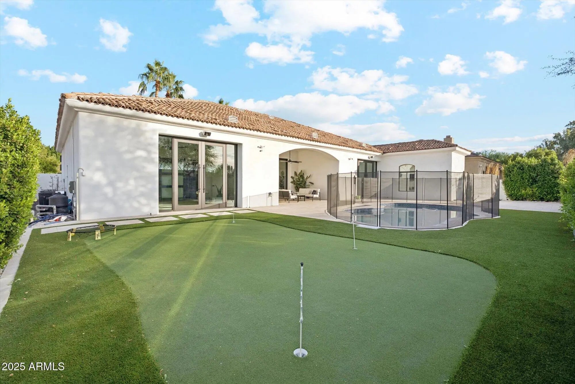 Welcome to 10386 N 110th Place, Scottsdale 85259, a beautifully appointed single-level home in the coveted Shea Corridor. Step inside to discover 4 bedrooms and 3 bathrooms across approximately 3,335 sq ft of light-filled living space, built in 1999 and sitting on a generous quarter-acre (approx. 10,750 sq ft) lot. Key highlights include: An open-concept living and dining area with soaring ceilings and refined finishes. A chef's kitchen featuring a large island and stainless-steel appliances, overlooking the main living zone for effortless entertaining. A sumptuous master retreat with spa-inspired ensuite and spacious walk-in closet. Outdoor living at its best: landscaping complete with turf and a putting green, sparkling pool, and a secluded patio perfect for Arizona sunsets. A prime gated-community location in the Rancho Verde subdivision, complete with a three-car garage and only minutes to upscale shopping, dining and mountain-trail access.