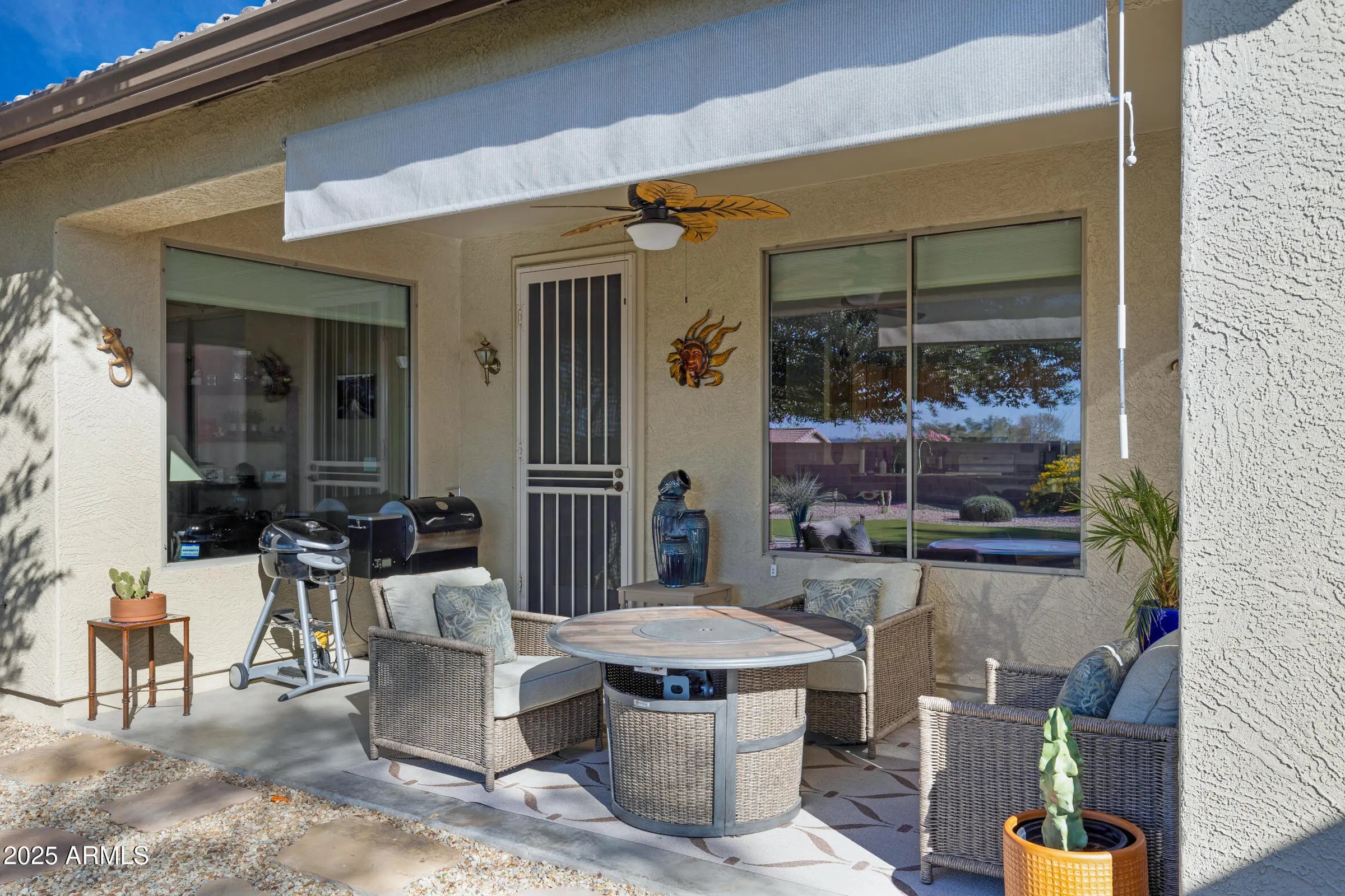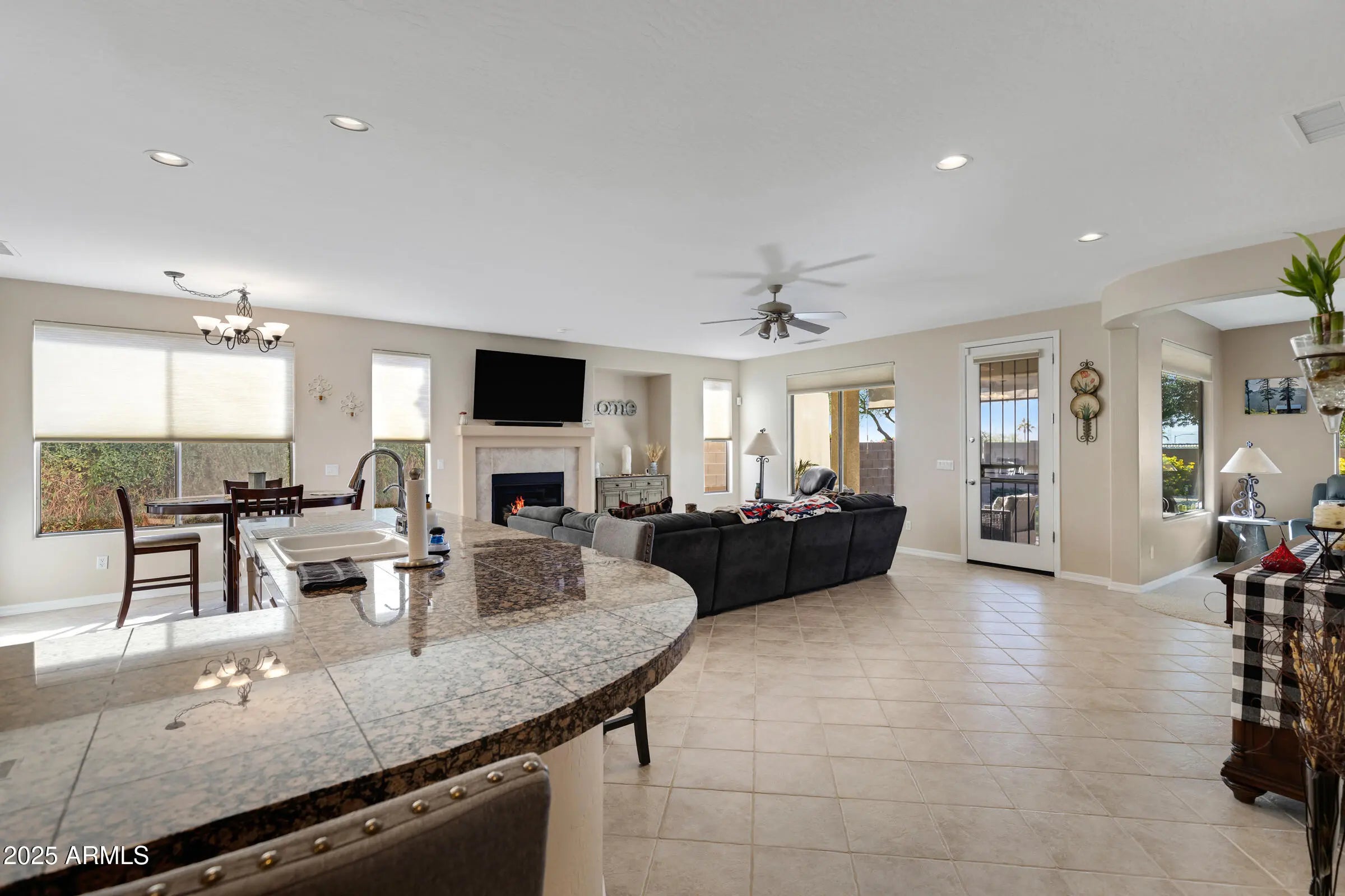 It's all about outdoor living! Perched on an elevated lot with unobstructed mountain and sunset views, this property delivers the kind of backyard you'll actually brag about - blissfully low maintenance with artificial turf & mature trees. Inside, the immaculate 2BR+den/2BA retreat feels fresh and modern with granite finishes, modern shades, updated roof and HVAC. Clean & crisp throughout - this nearly 1,800'sqft home is move in ready. Located in Ventana Lakes, a premier 55+ community offering shimmering lakes, scenic walking trails, pools, tennis and pickleball courts, and endless ways to stay active. This property is a gem, fully modern & again......it's all about the elevated outdoor space. Move in, pour a drink, and start living the good life - no maintenance required.